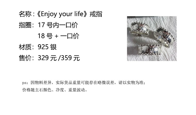 Myjourney|925 Silver Ring with the Inscription "Enjoy Your Life", May You Enjoy This Journey of Life to the Fullest