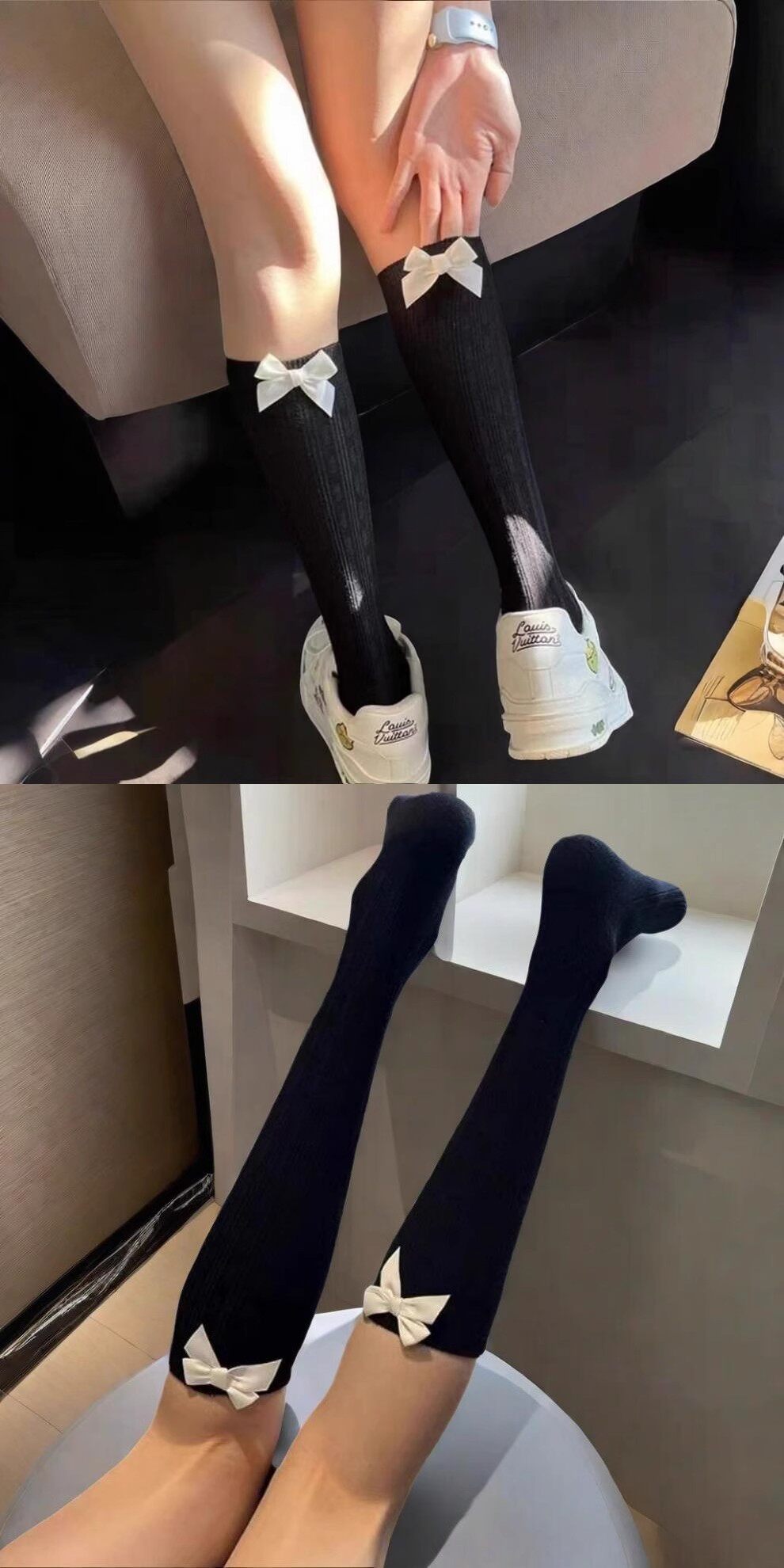 Black and White Bow Knee-High Socks for Women, Spring and Summer Jk Internet Celebrity 2026 New Style Sweet Miu Style Long Socks for Girls