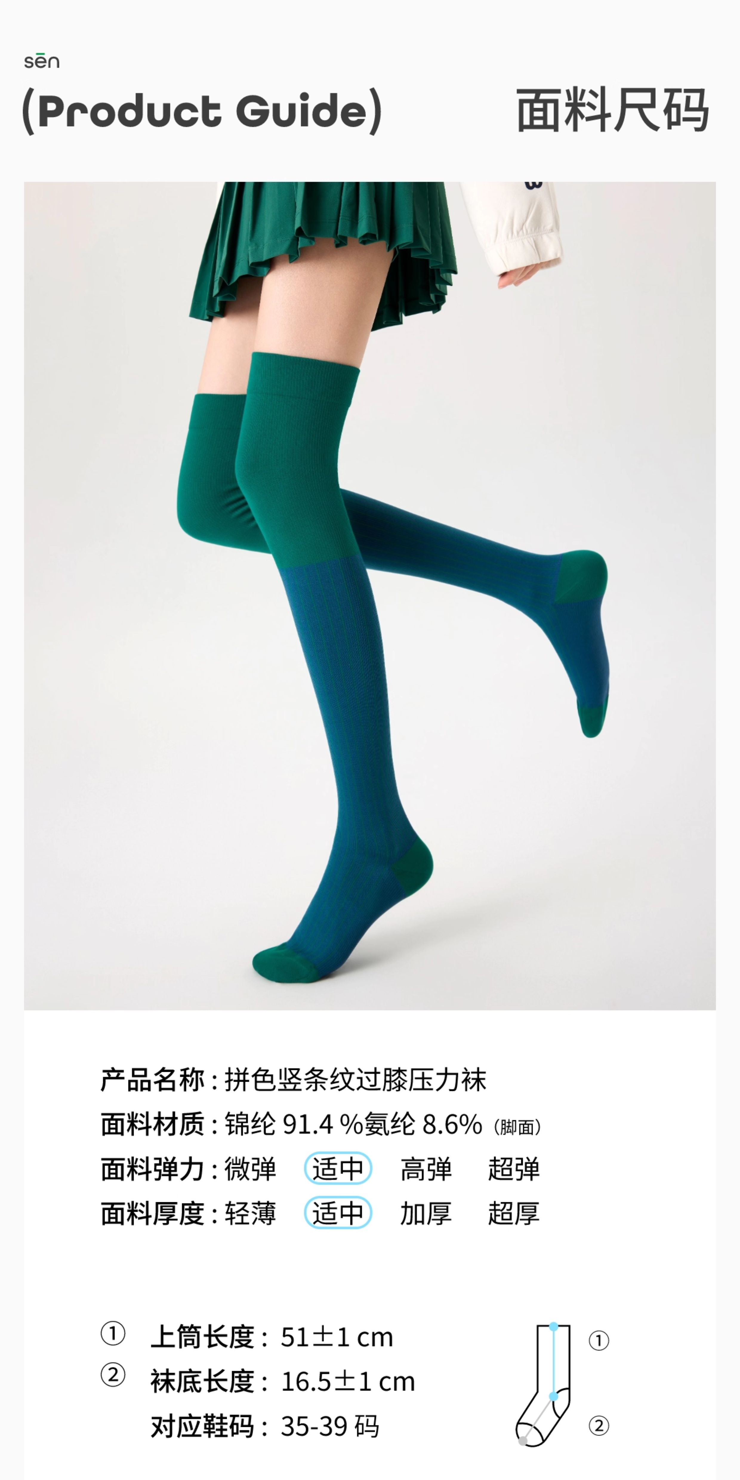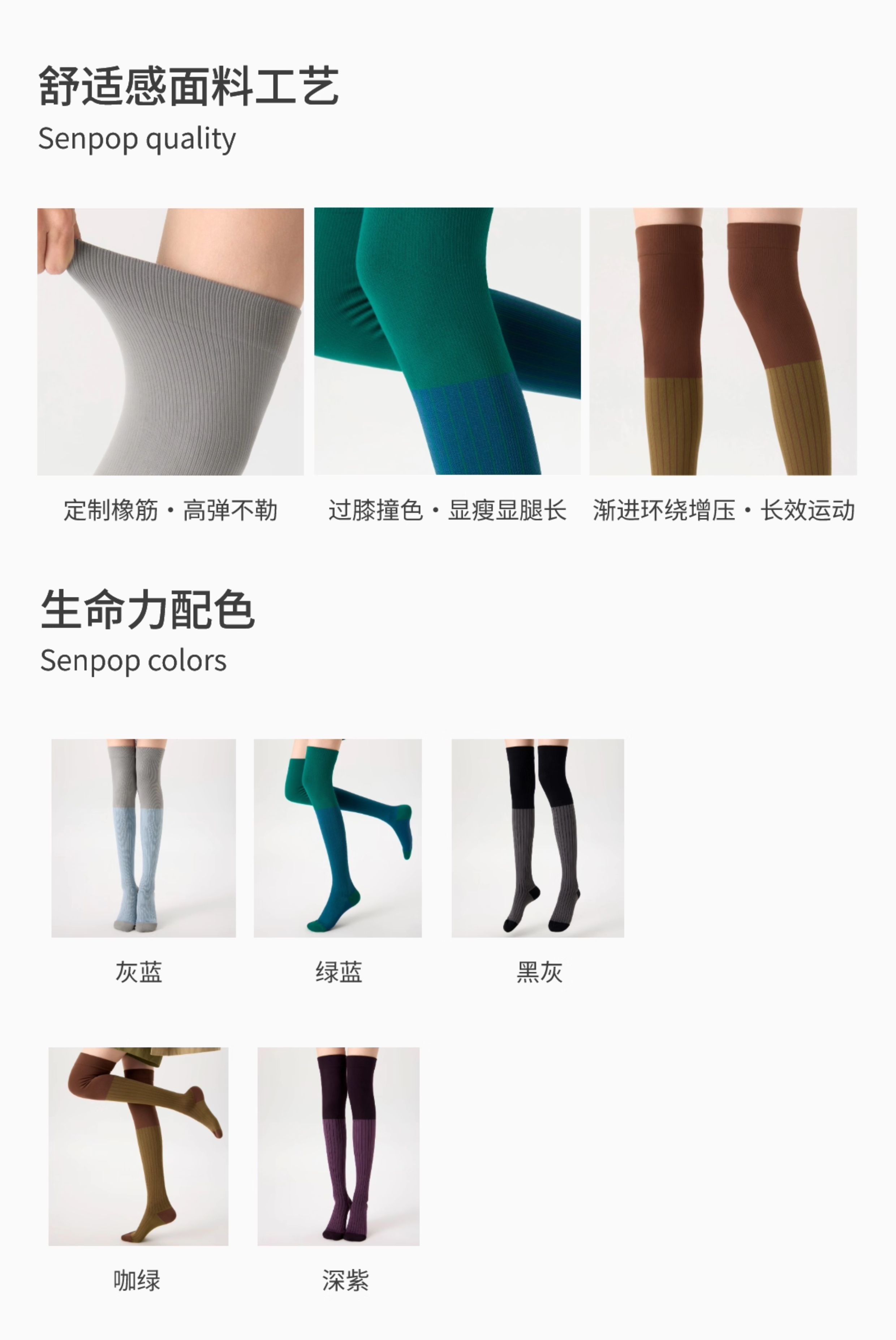 Shangsen Sports Compression Calf Socks Over-The-Knee Pressure Socks Spring and Autumn Long Socks for Women Blue Jump Rope Yoga Non-Slip Knee Pads