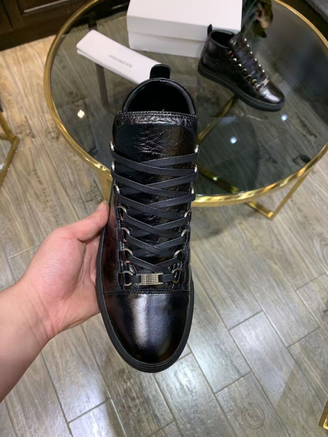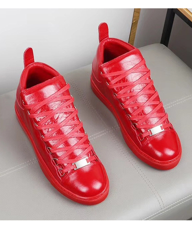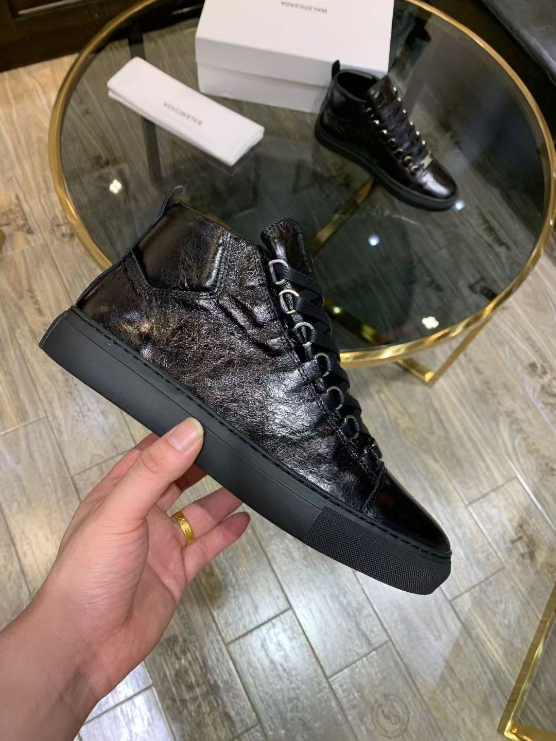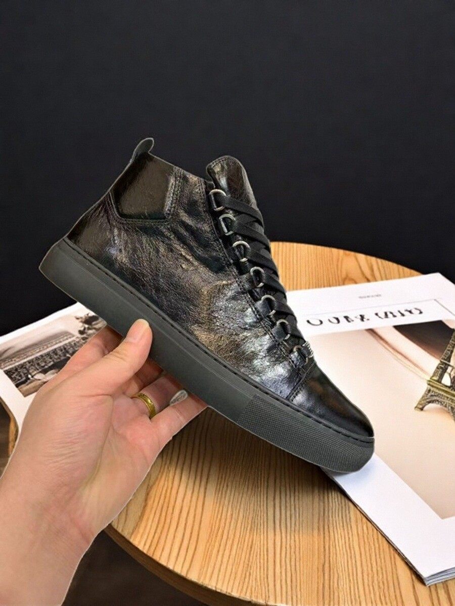Shoes Paris High-Top Black Pleated Leather Sneakers White Leather Surface Height-Increasing Shoes Leather Shoes Sports Classic Men's Shoes
