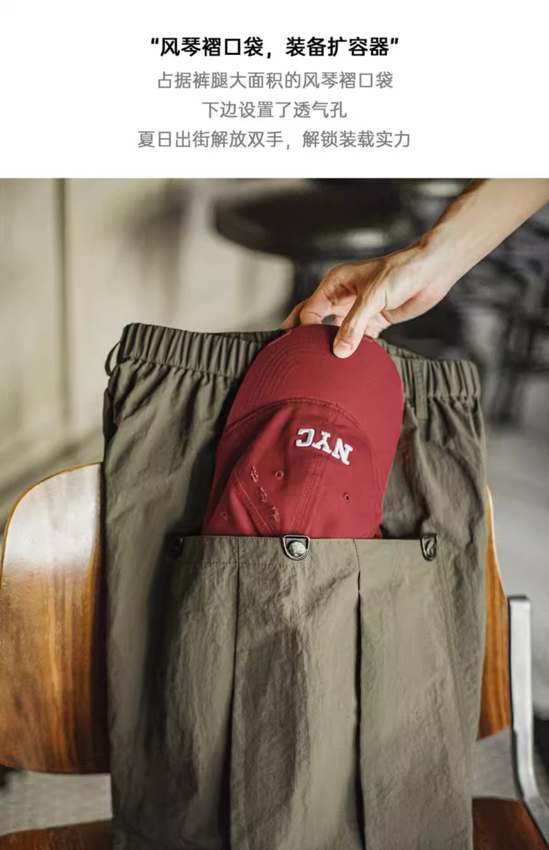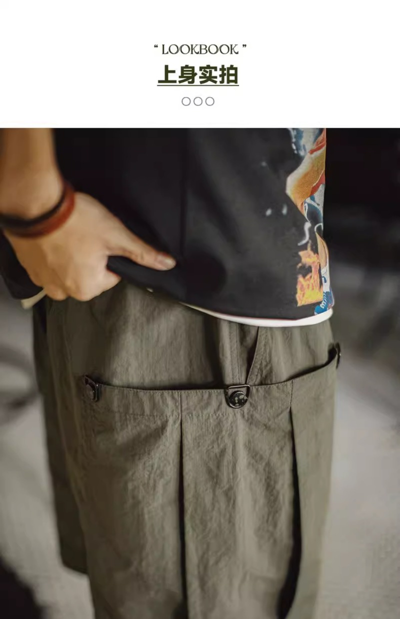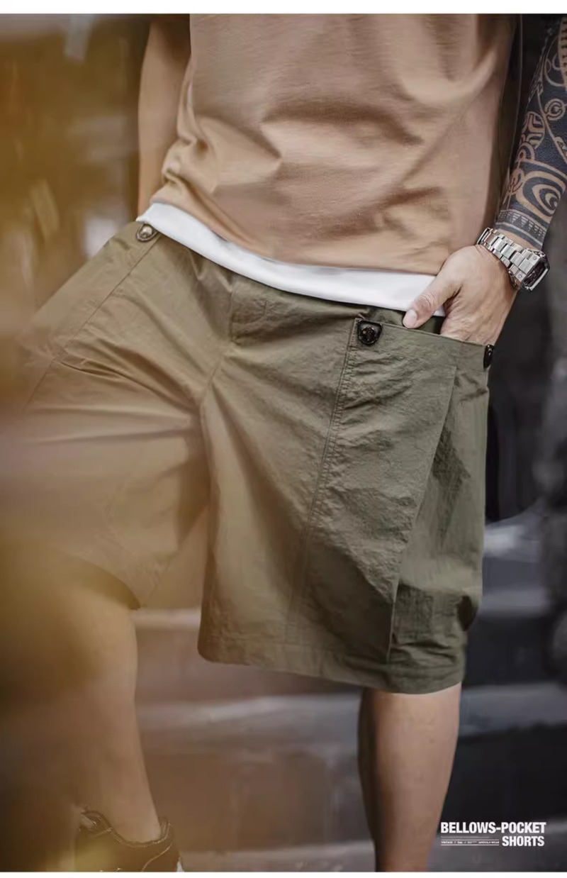 Madden Workwear American Retro Style Accordion Large Pocket Military Green Shorts Straight Woven Thin Five-Point Shorts for Men Summer