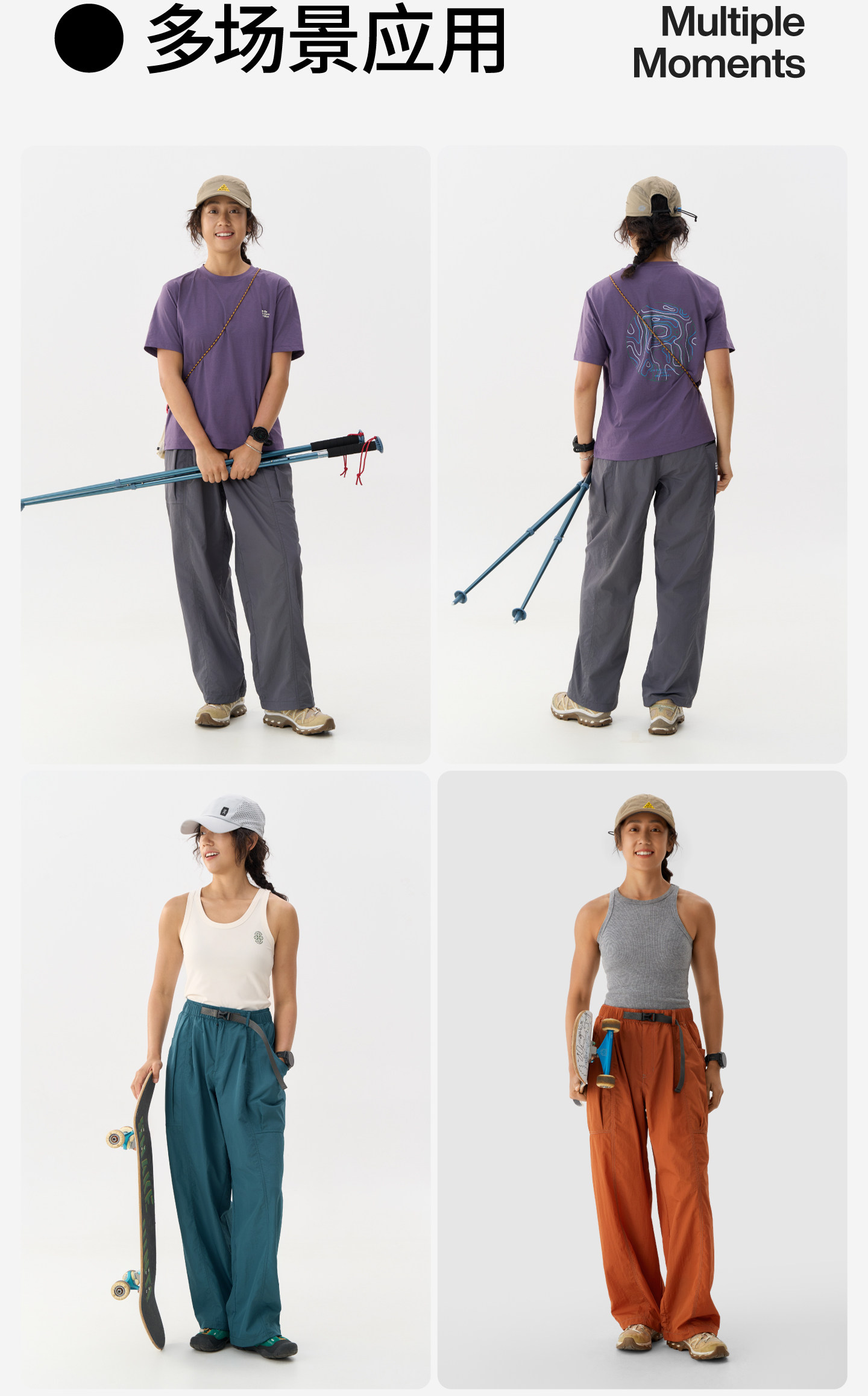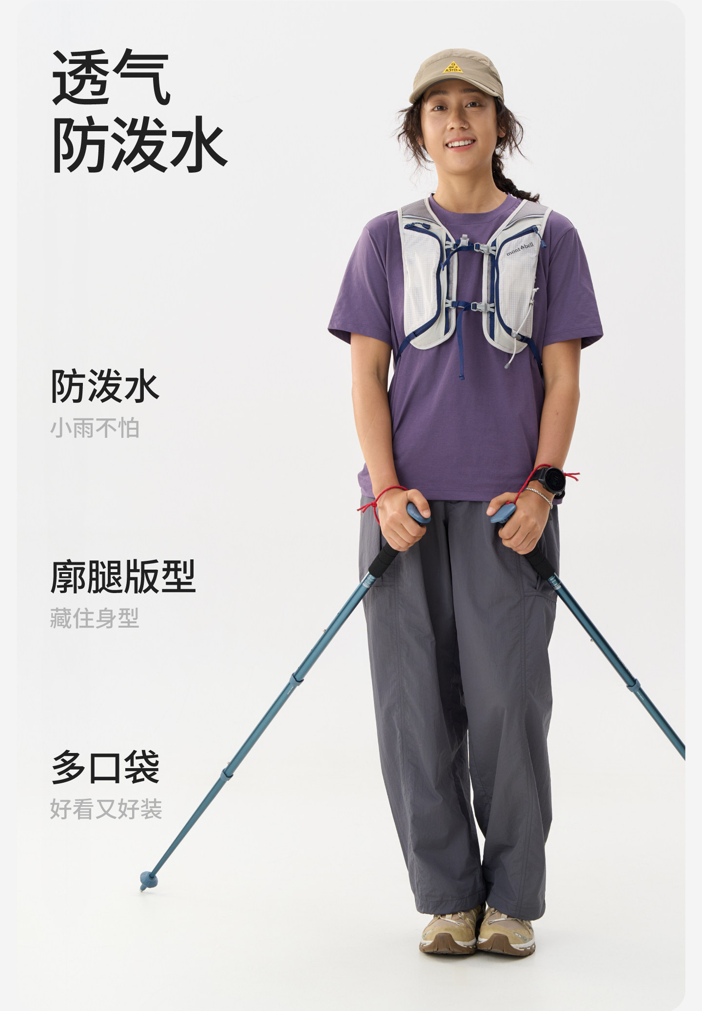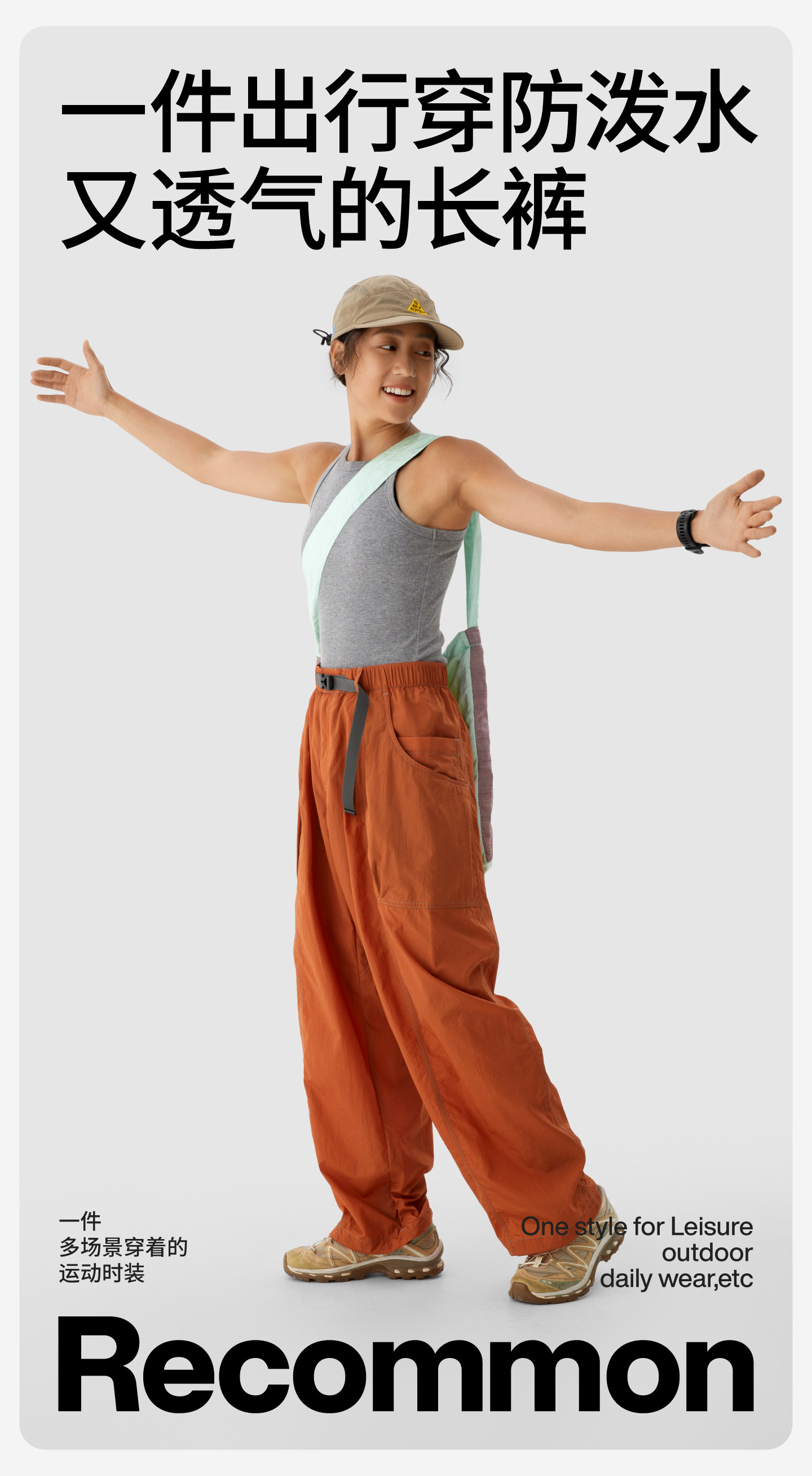Recommon Outdoor Casual Pants for Women, Breathable, Water-Repellent, Lightweight Wide-Leg Pants, Paratrooper Pants, Long Pants, Spring and Summer Pants