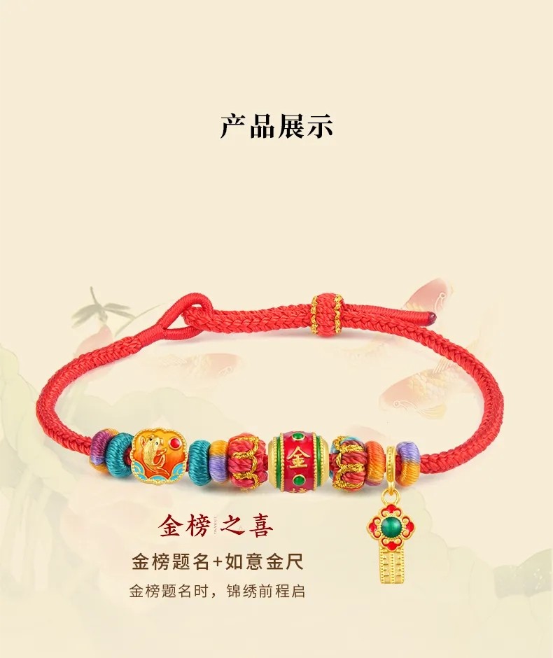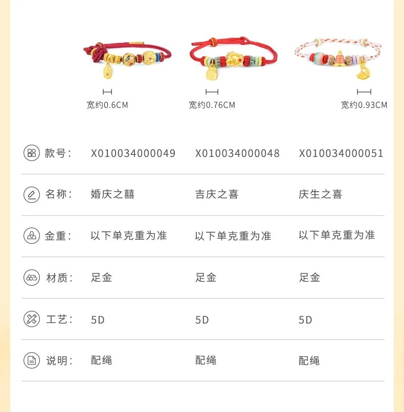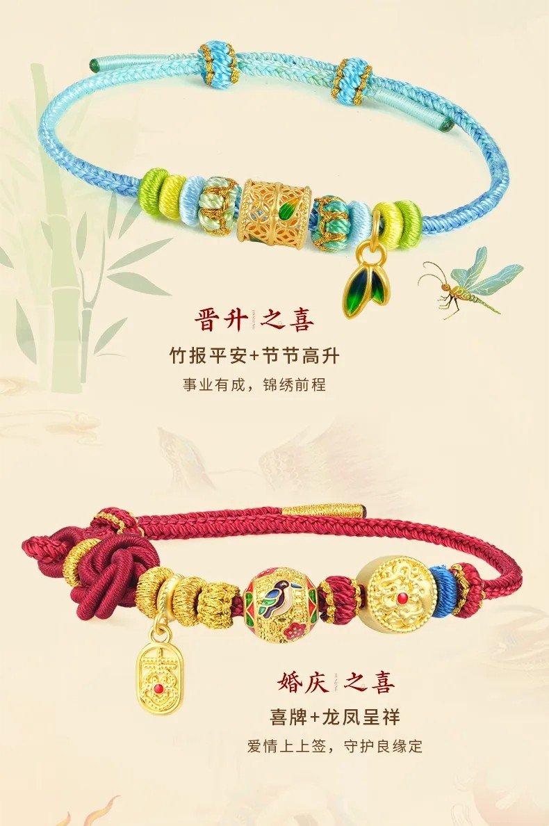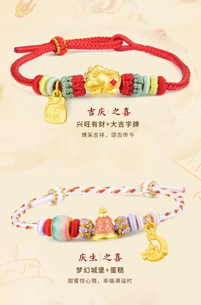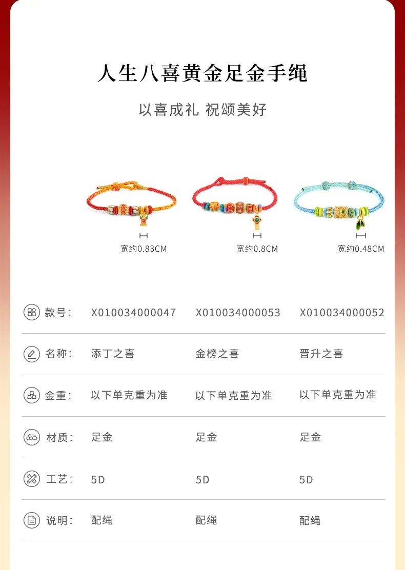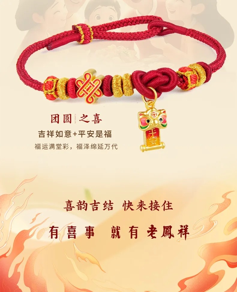 Lao Fengxiang's Eight Happy Events Series Gold Bracelet, Pure Gold, Unisex, Various Styles, Christmas Gift