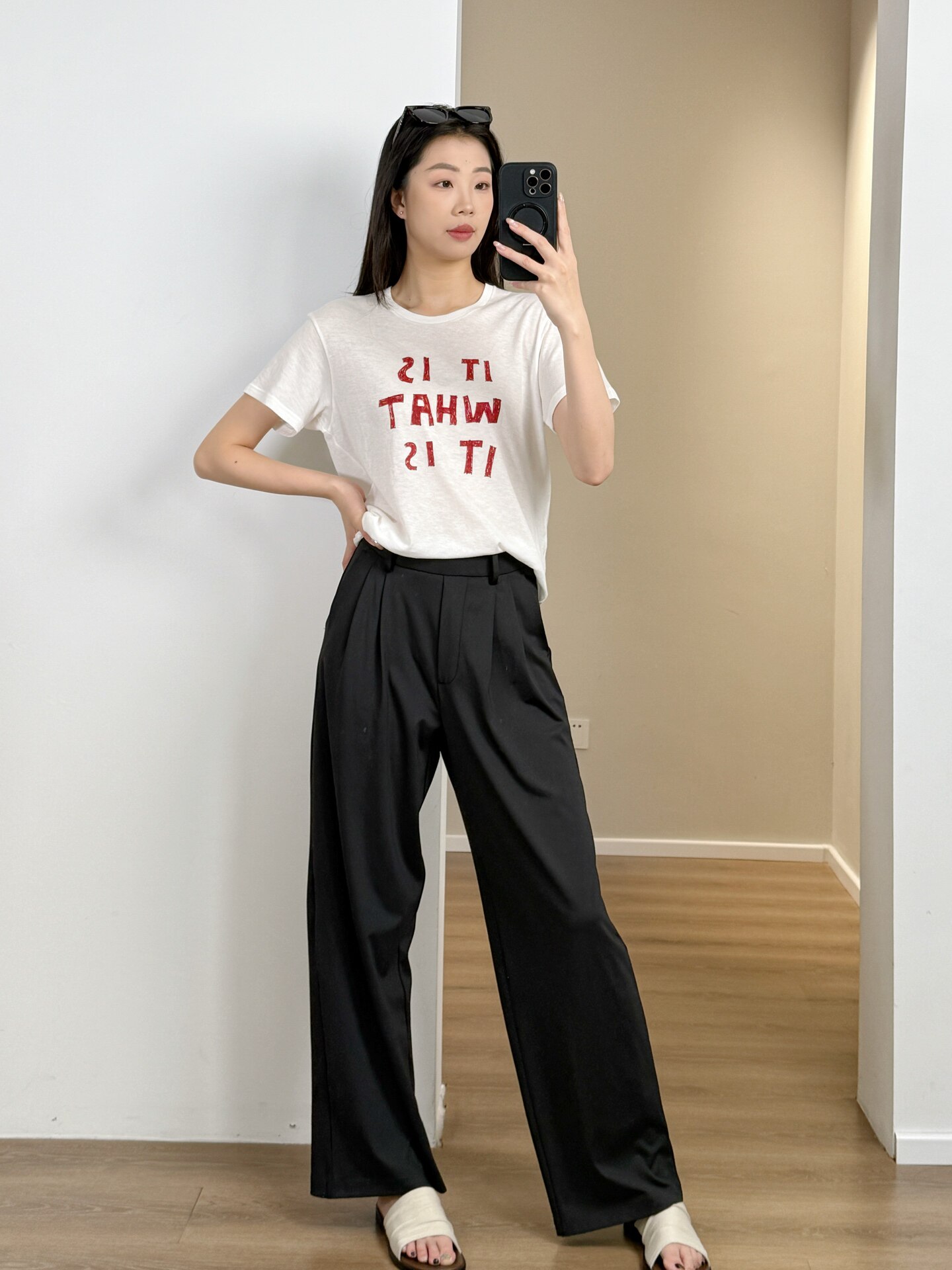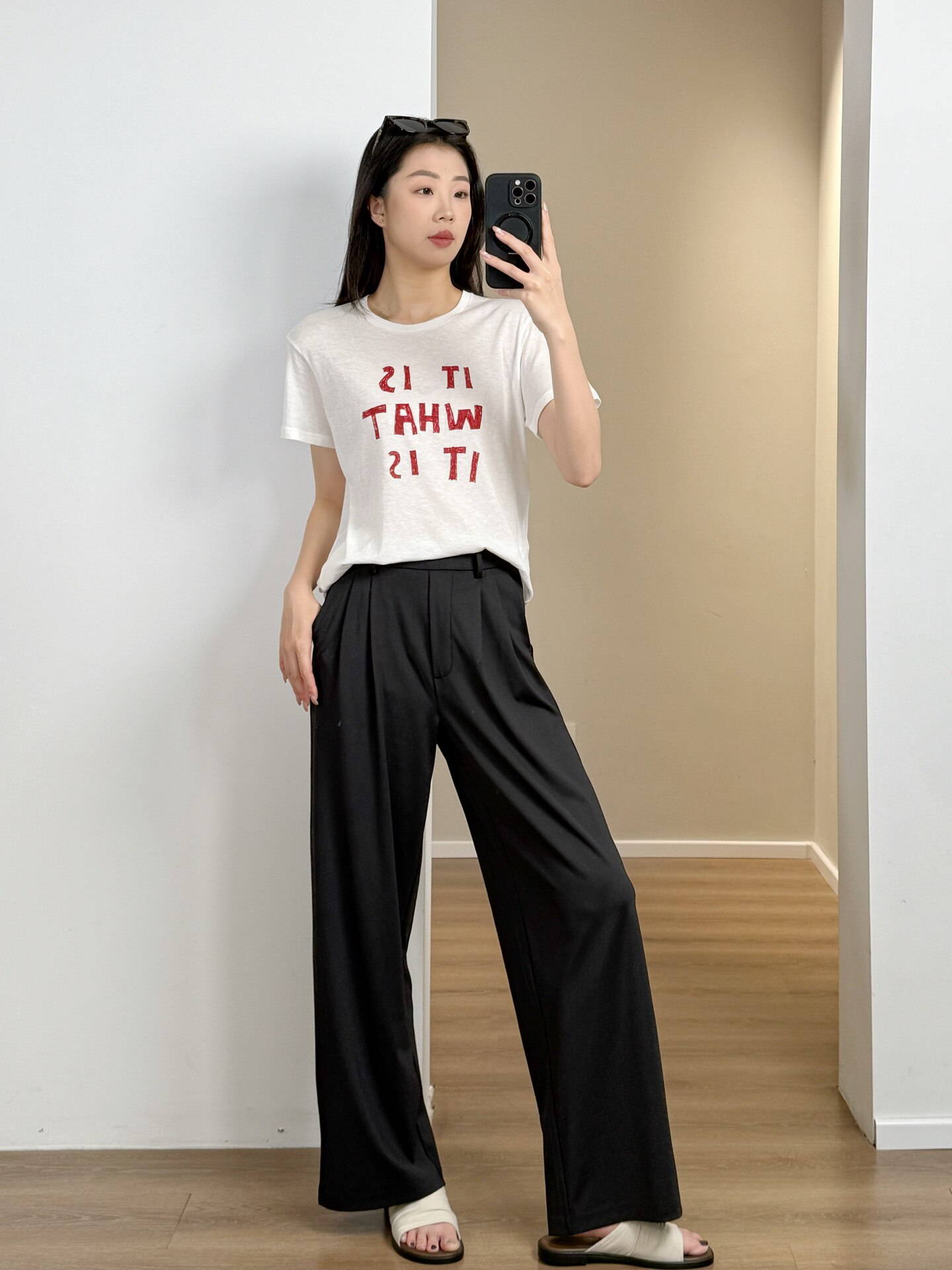 舒服是肯定的!弹力炒级大!!无限显瘦!!显腿长啊啊!叫l*u阔腿裤!yyds!显瘦!