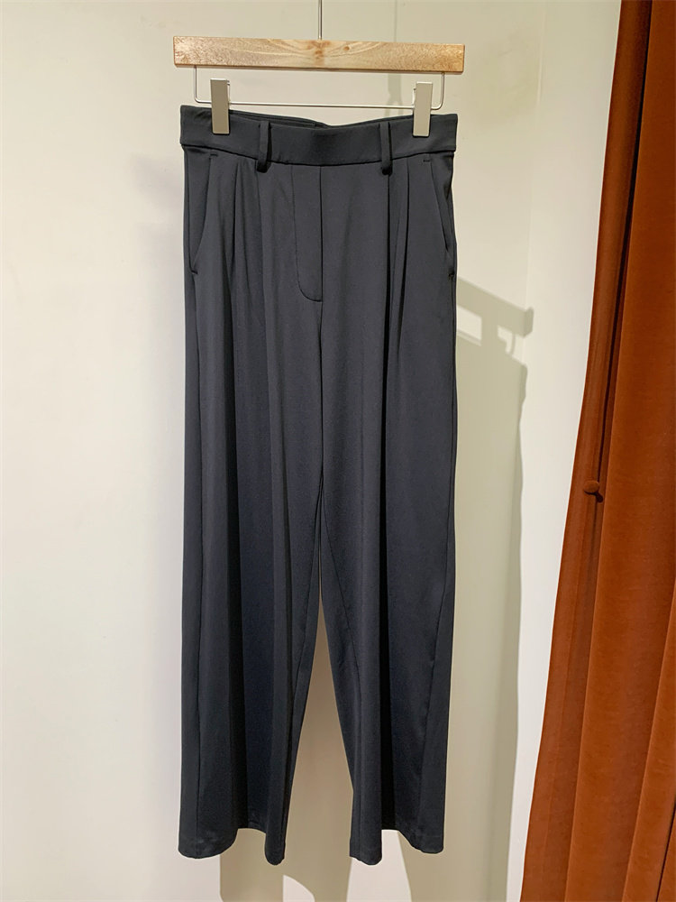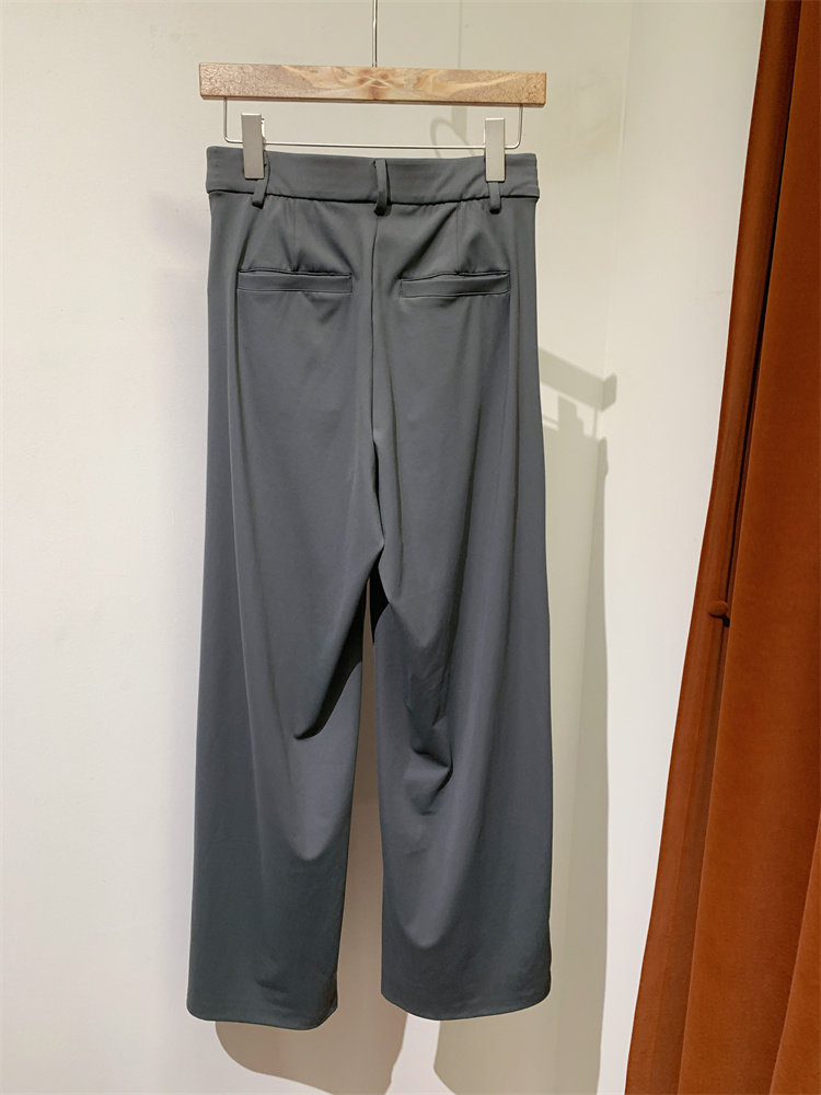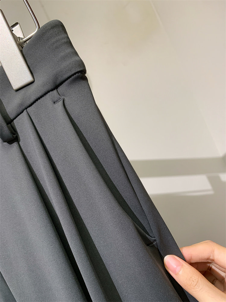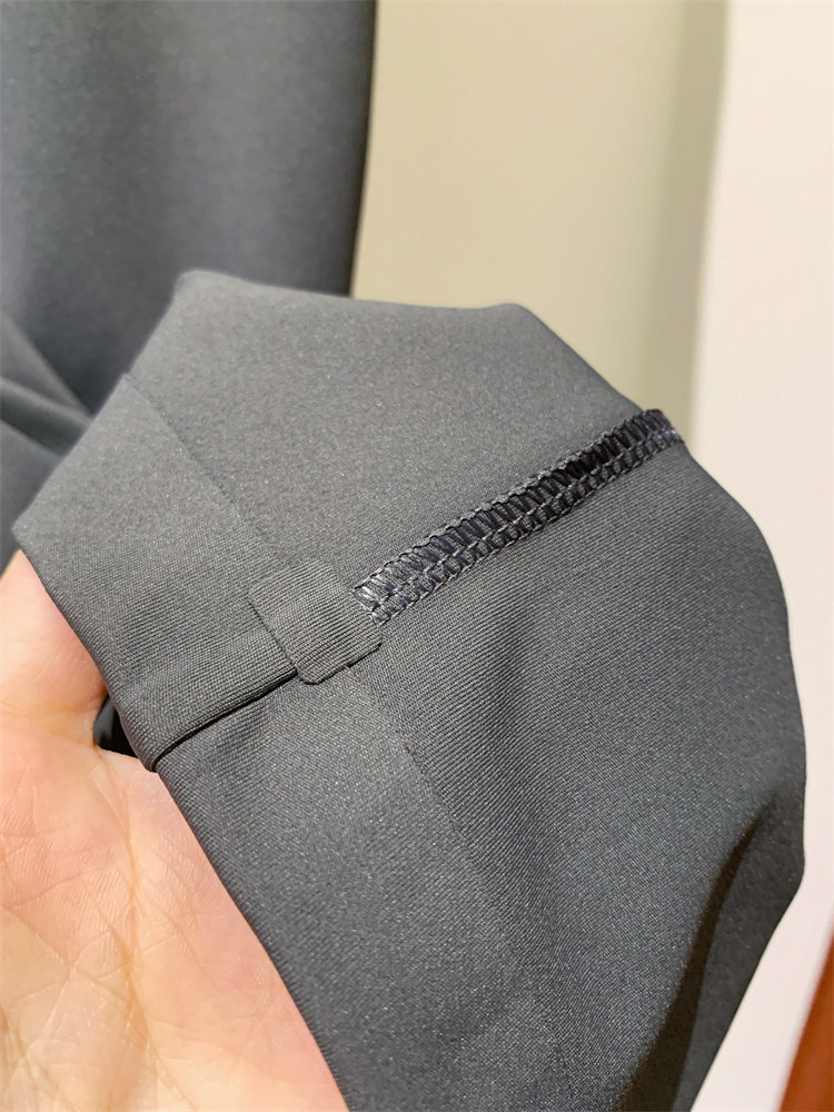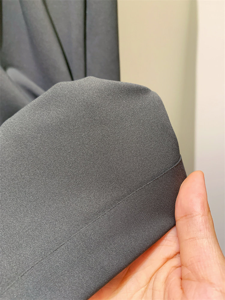 工艺解说:这个版型真的太好穿了,西装裤的版型,但它却是是柔软的四面弹的面料。比普通的西装裤好穿太多了,因为它是松紧腰,一般松紧腰的裤子腰封那里都不会整齐。但这一条它竟做到非常平整。它一定比我们的休闲裤还百搭。梨形身材也是非常好看的。