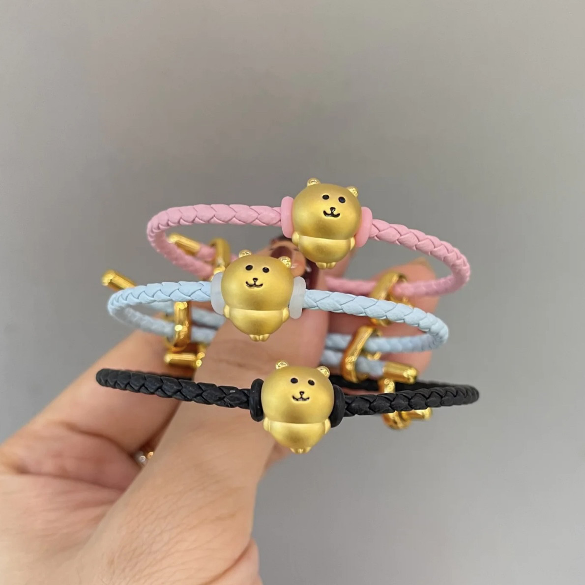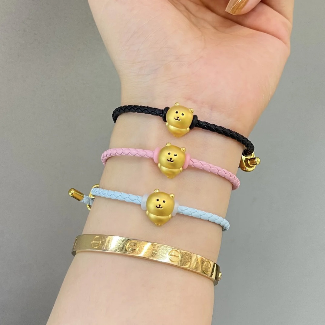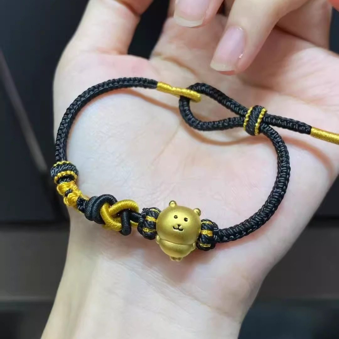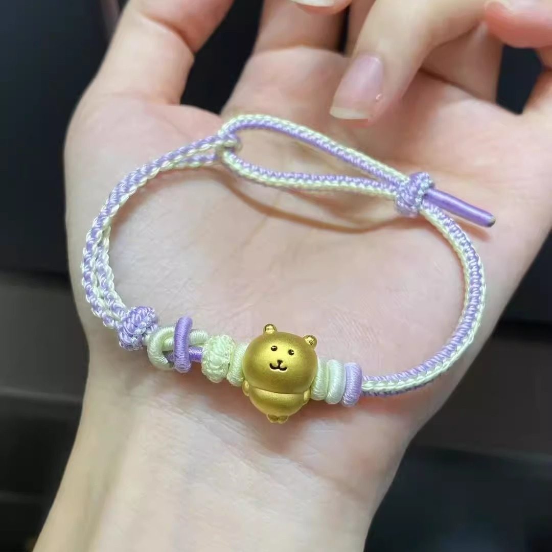Pure Gold 999 Self-Deprecating Bear Big White Bear Lucky Bead Gold Cute Bear Bracelet Pure Gold Gift for Girlfriend
