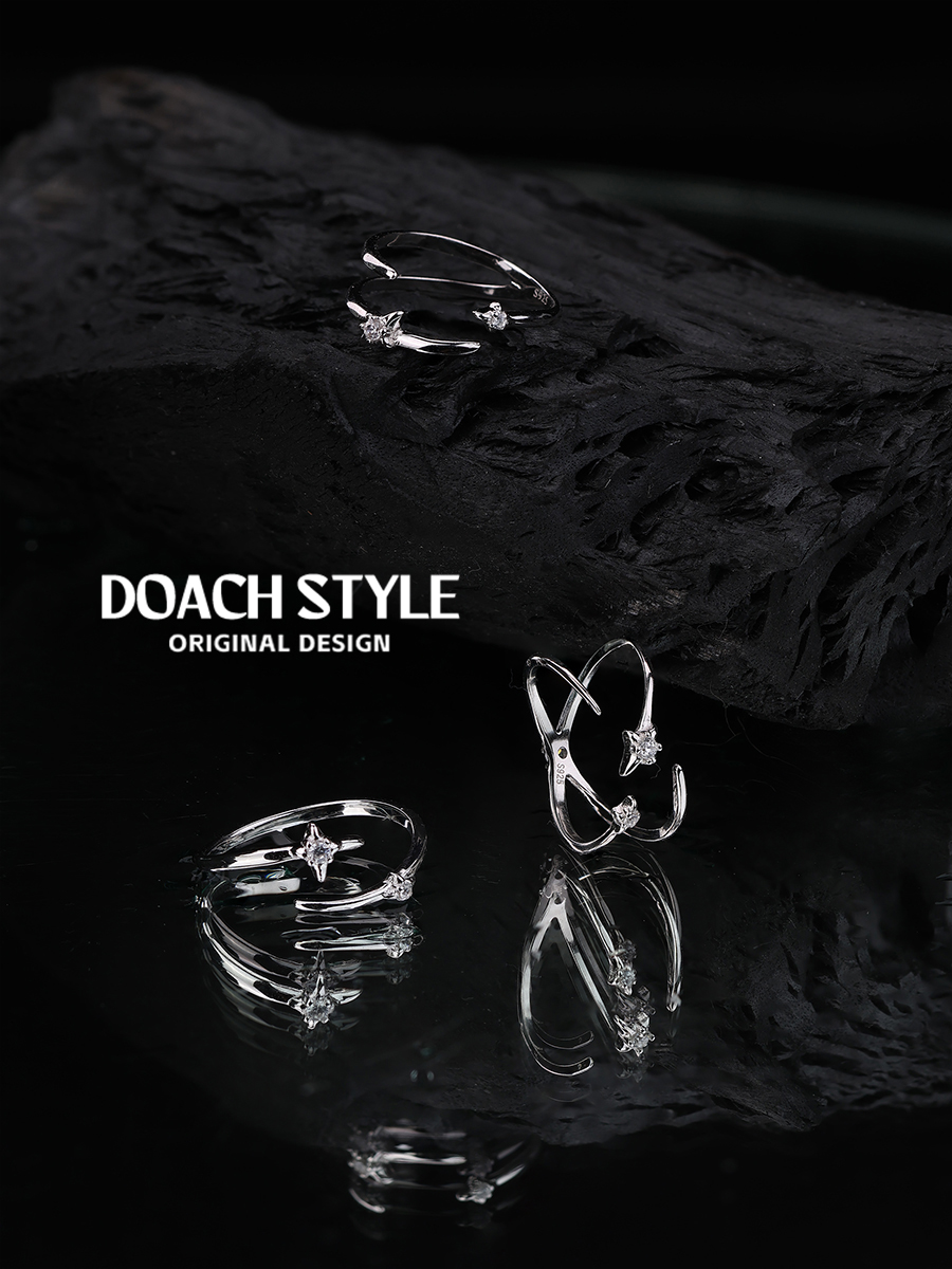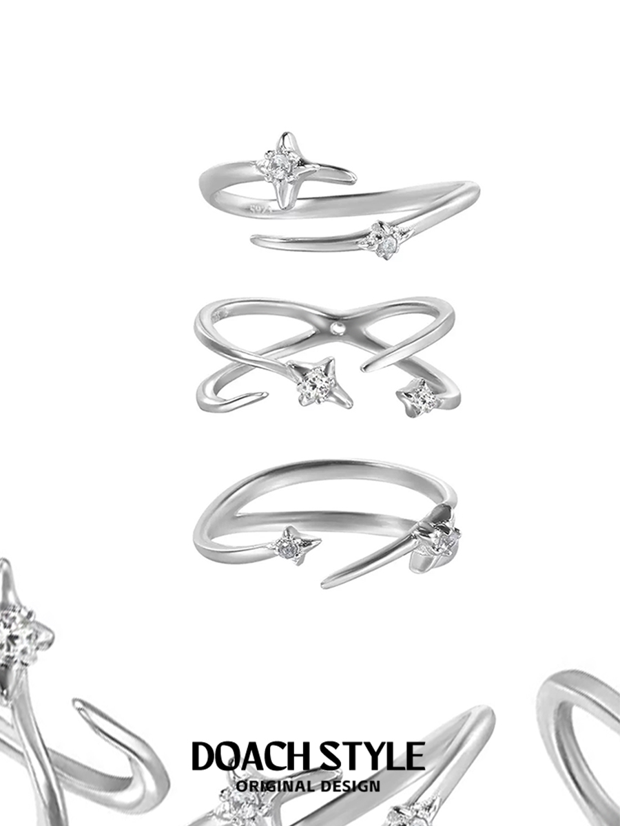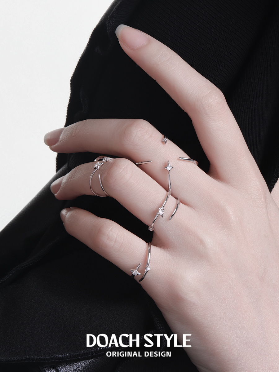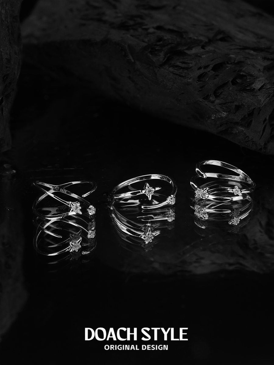 Doach Star Trail Tail Ring Zircon Sterling Silver Ring Niche Design High-End Minimalist Open Finger Ring Non-Fading