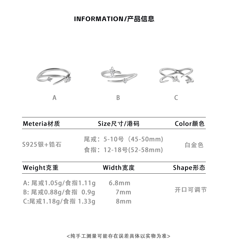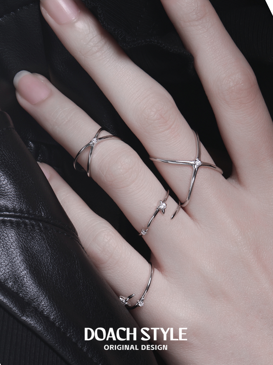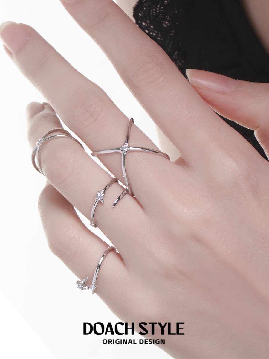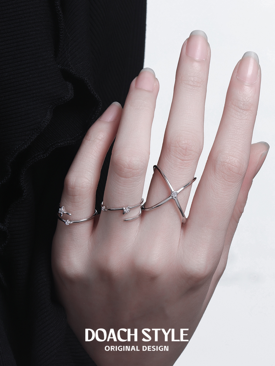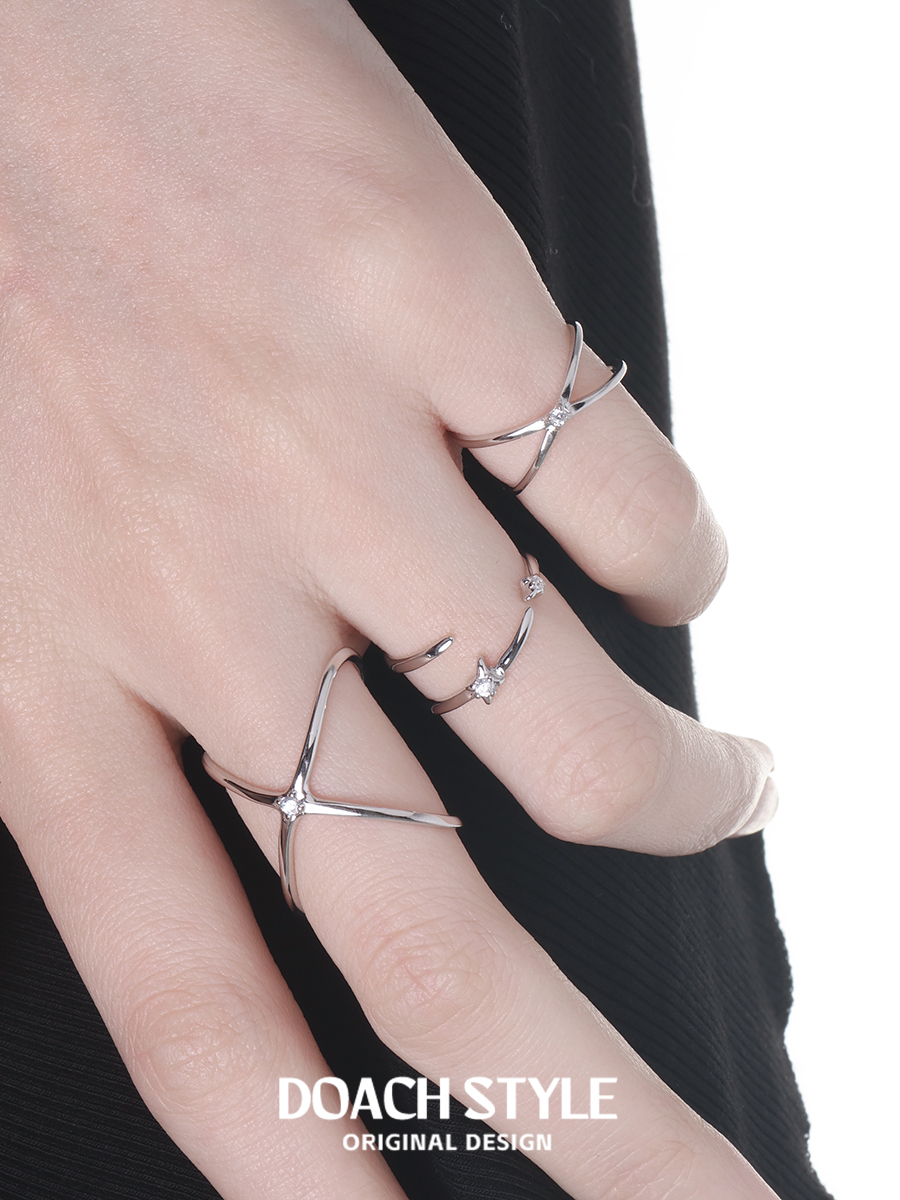 Doach Star Trail Tail Ring Zircon Sterling Silver Ring Niche Design High-End Minimalist Open Finger Ring Non-Fading