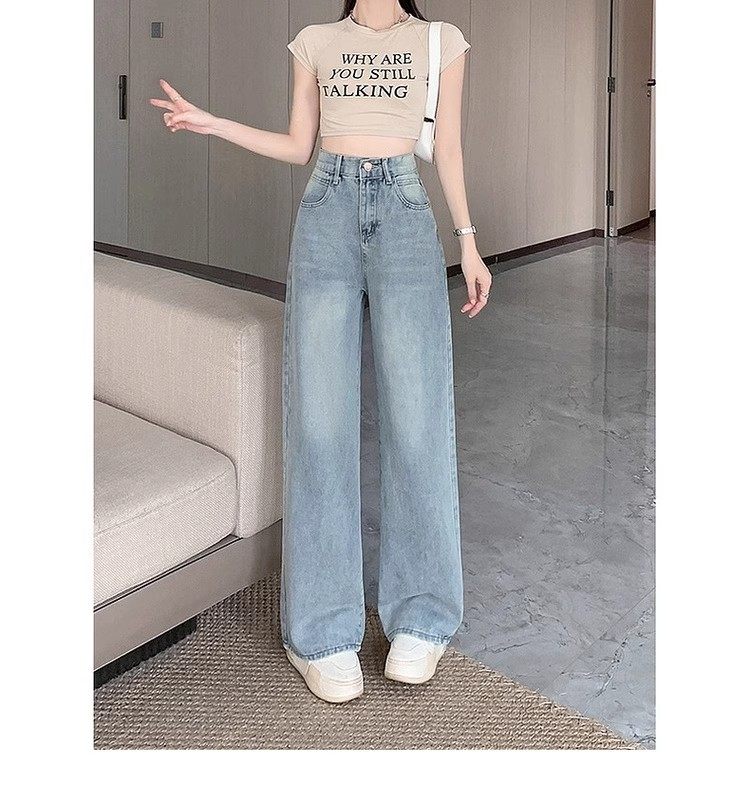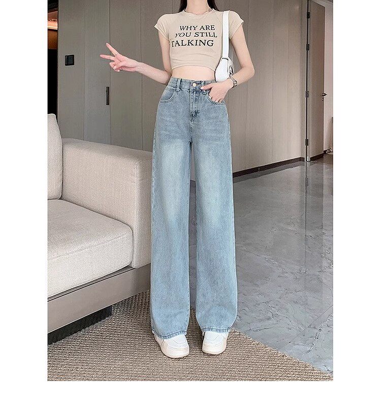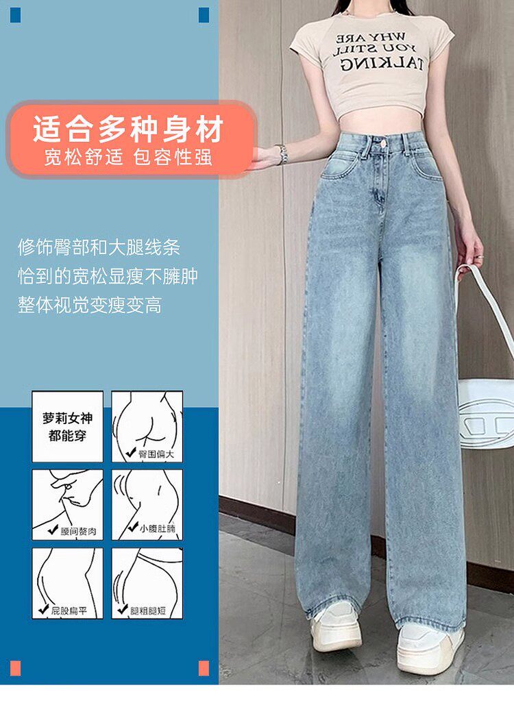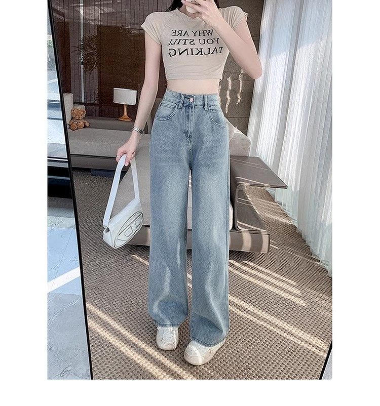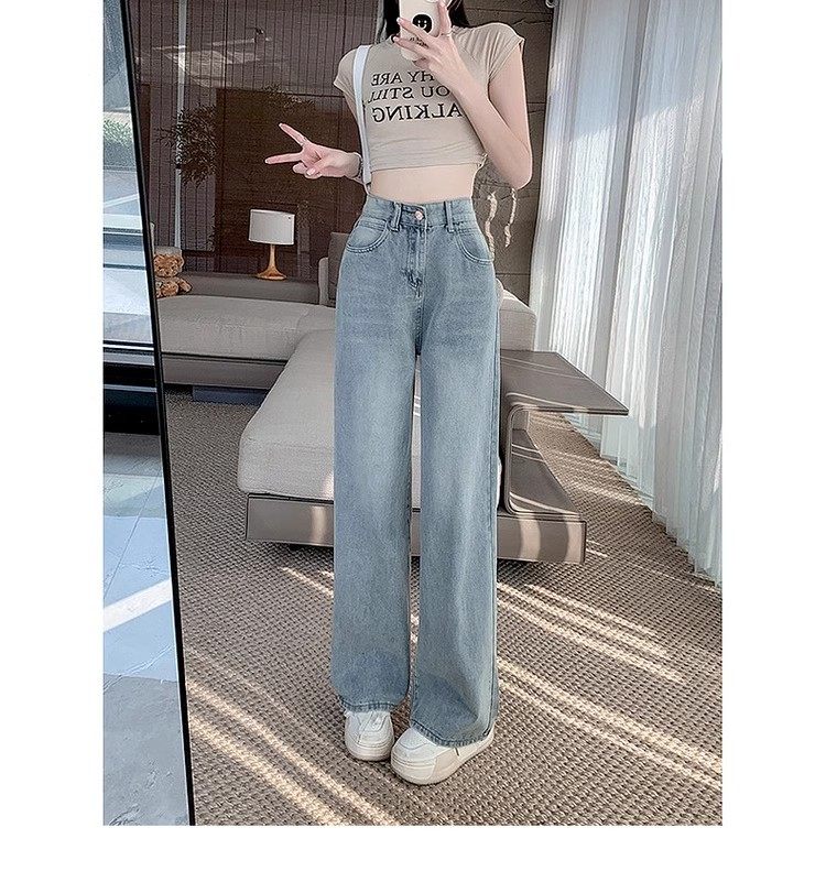 150cm Petite Vintage Blue Slim Straight-Leg Jeans for Women, Spring and Autumn High-Waisted Slimming Loose Wide-Leg Pants, Size XXS