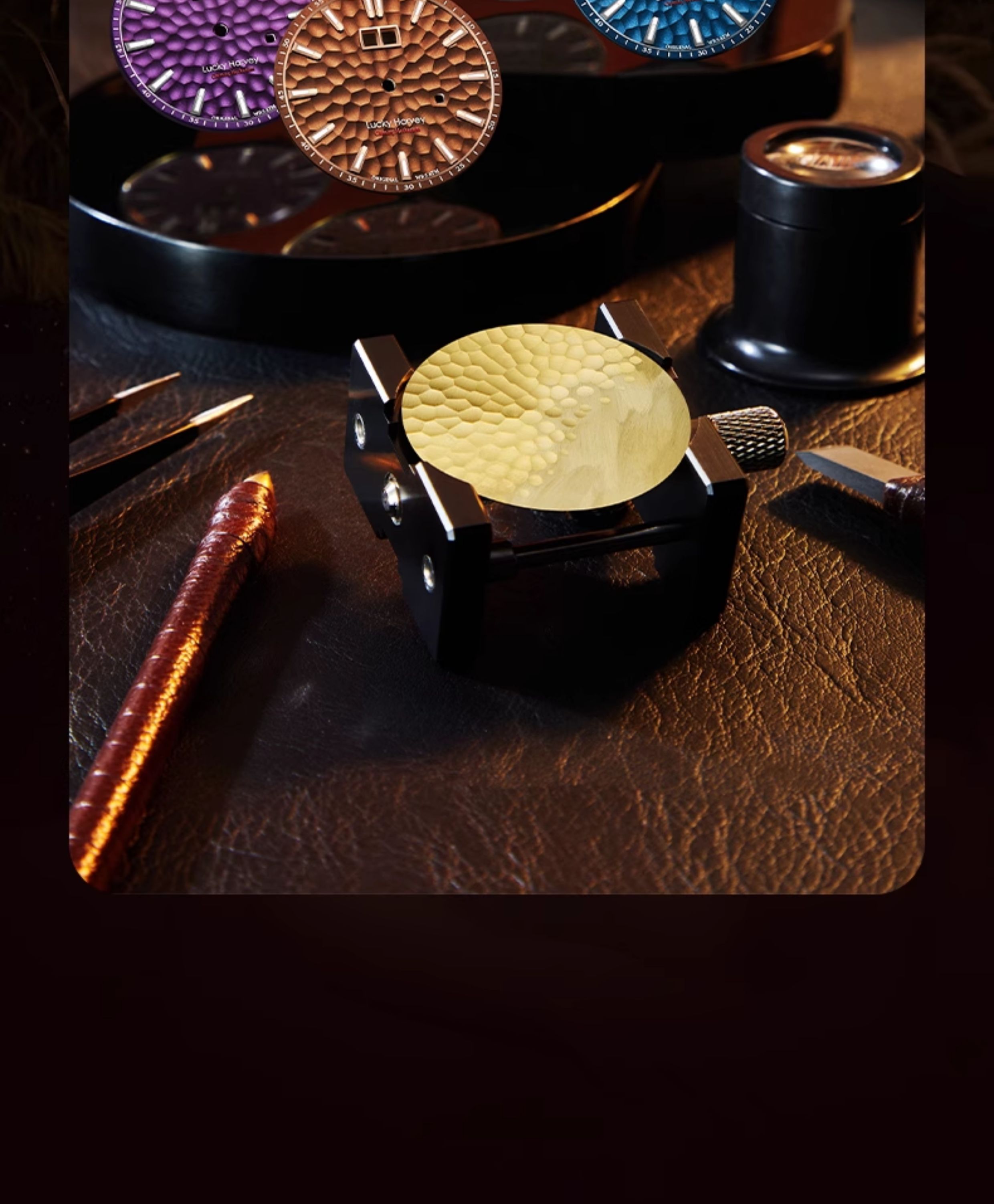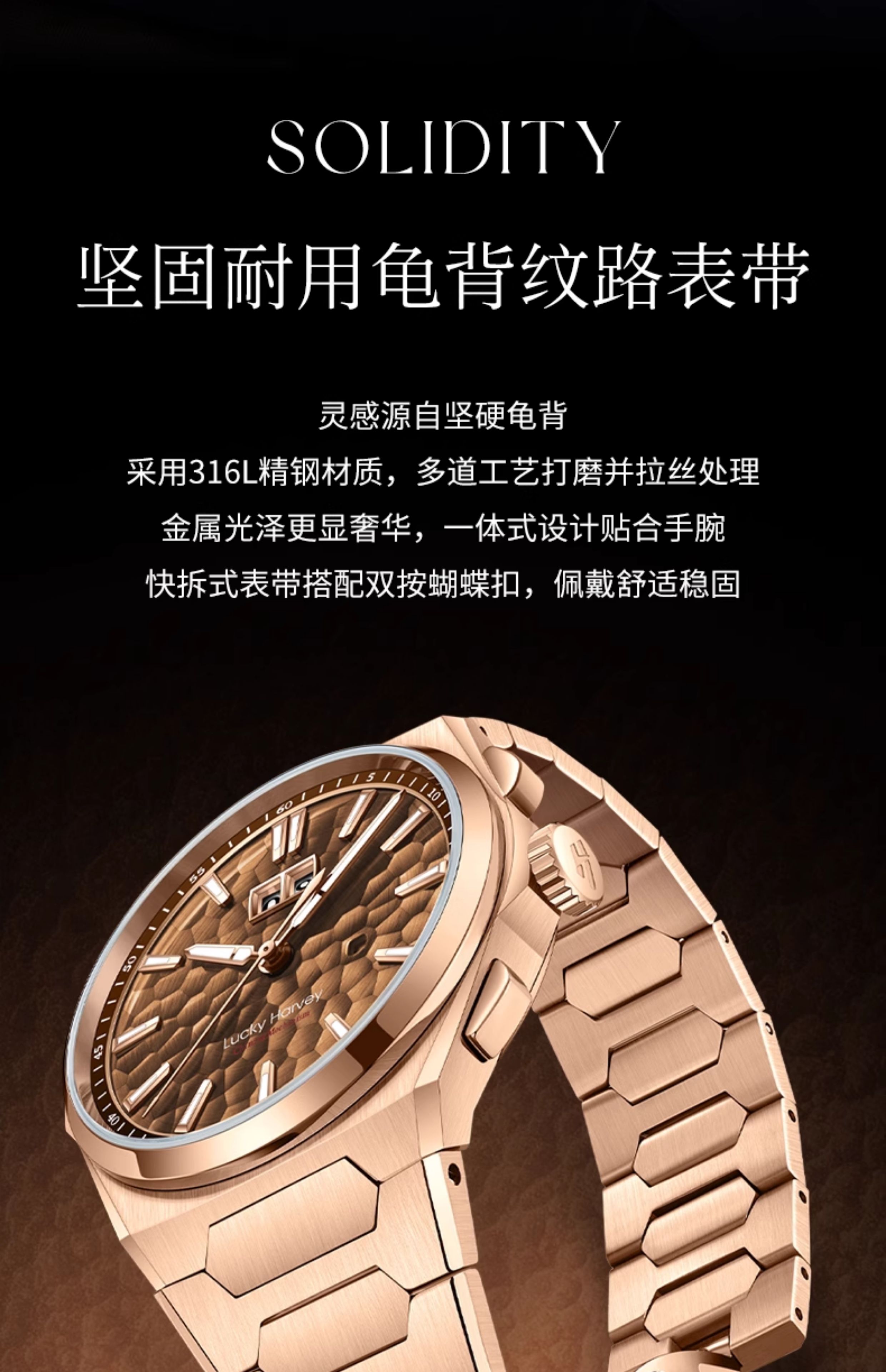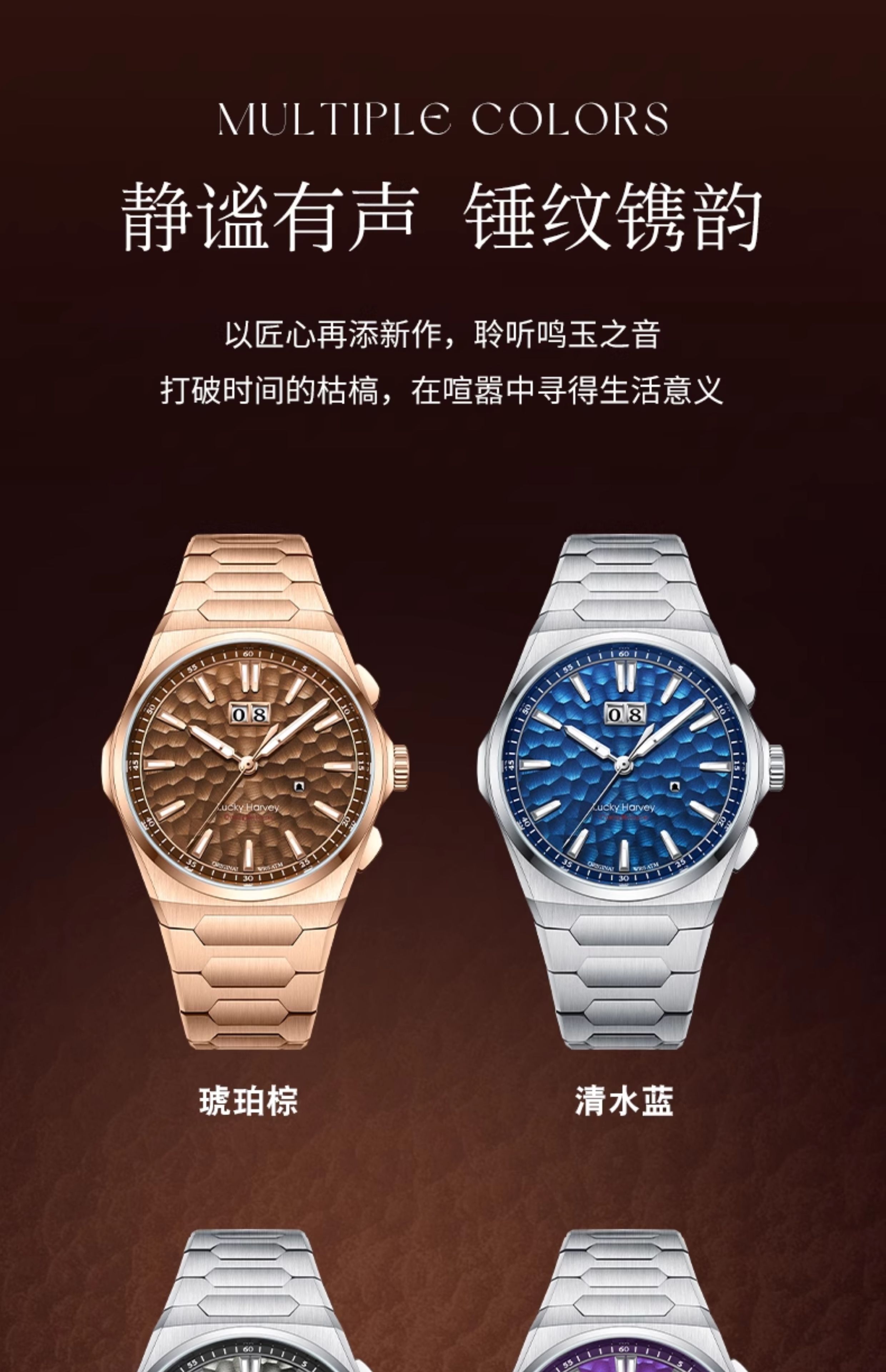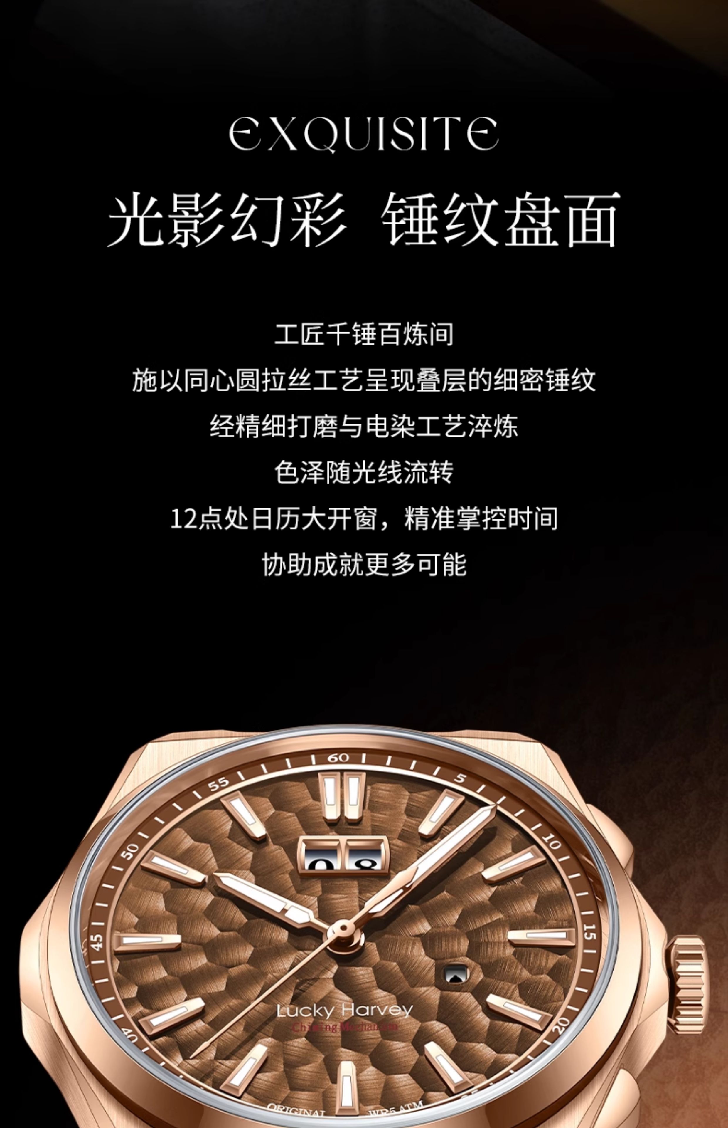 [Limited Edition] Lucky Harvey Self-Winding Series Hammered Texture Men's Watch Mechanical Watch Amber Brown