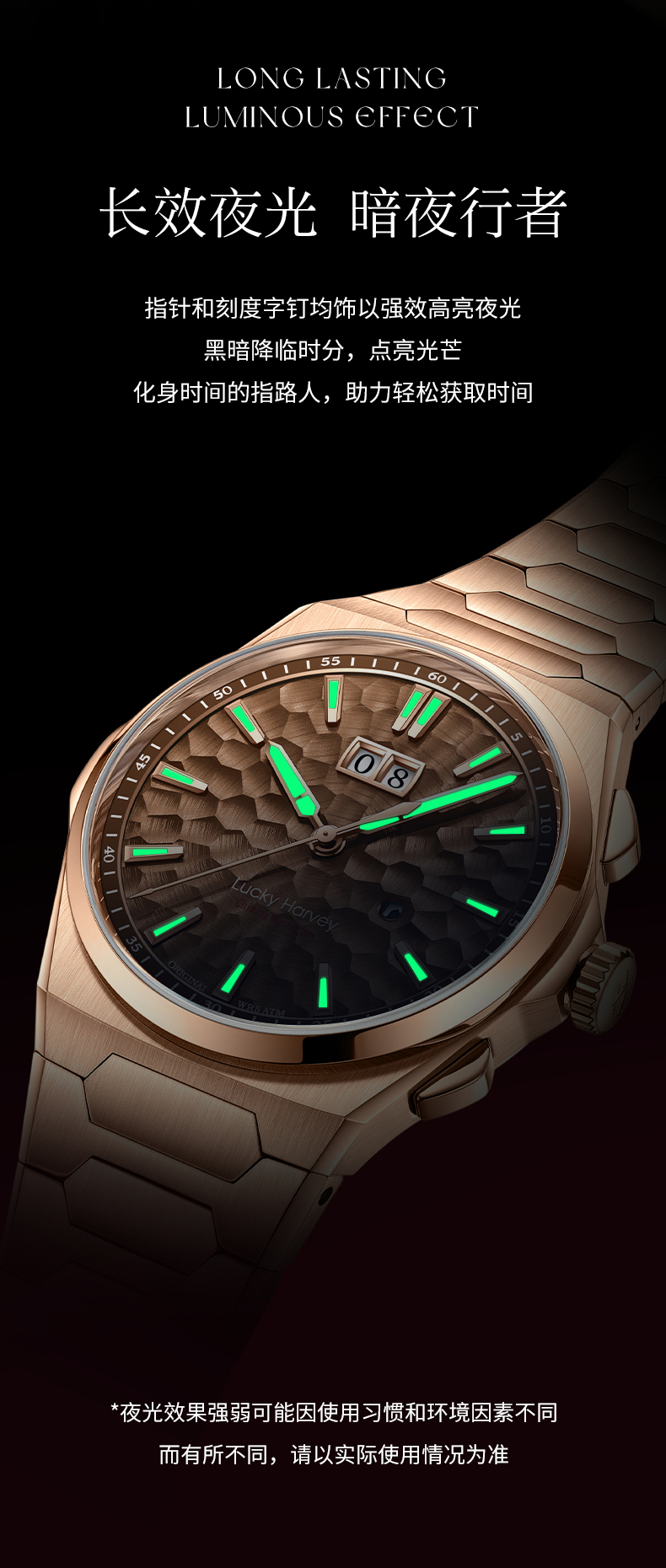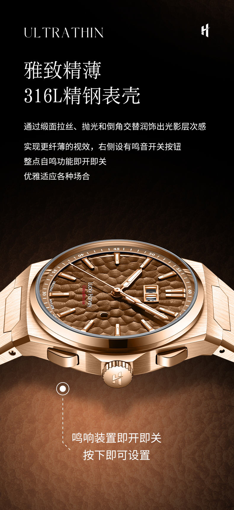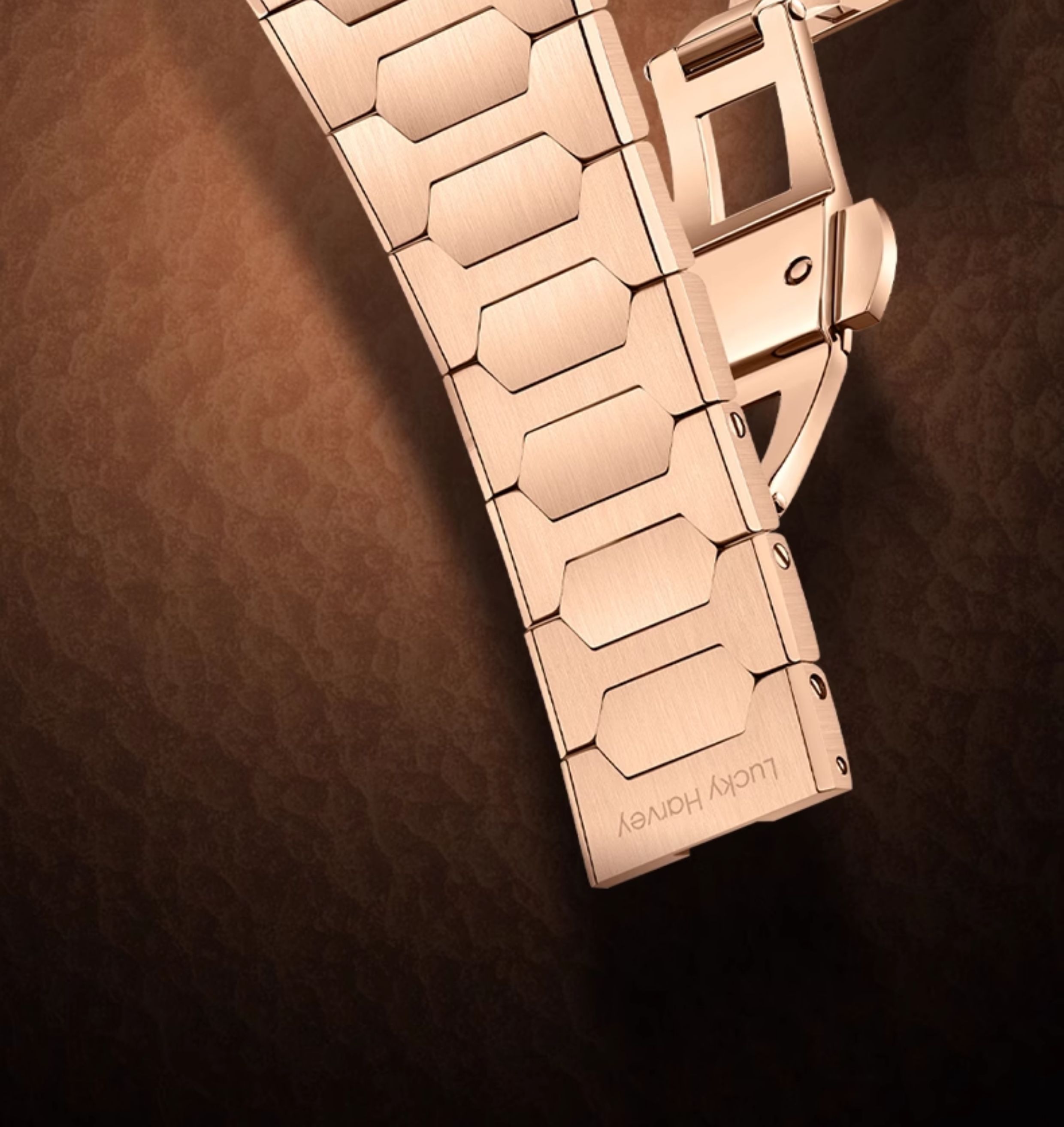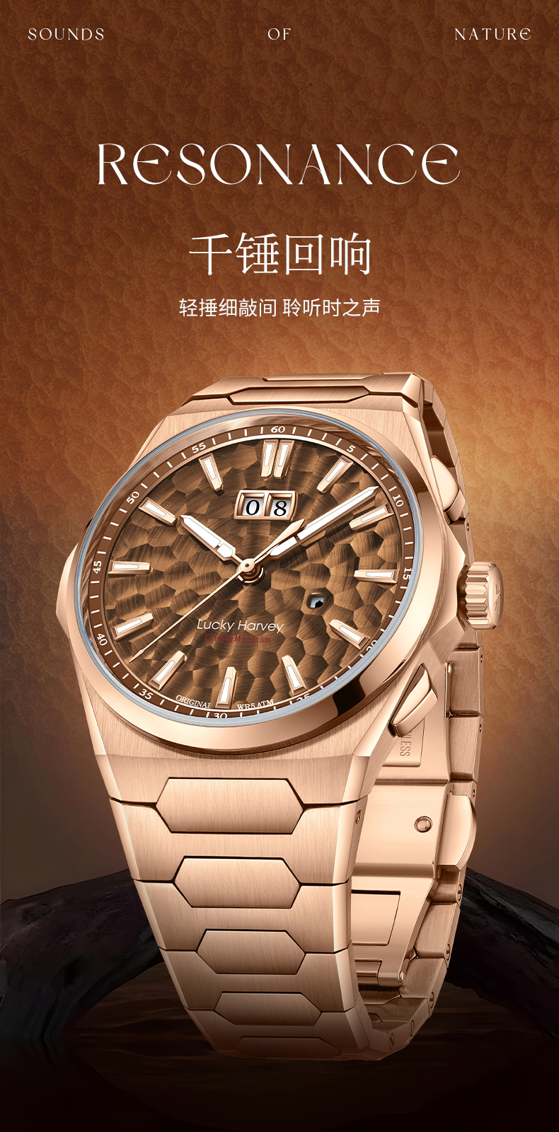 [Limited Edition] Lucky Harvey Self-Winding Series Hammered Texture Men's Watch Mechanical Watch Amber Brown