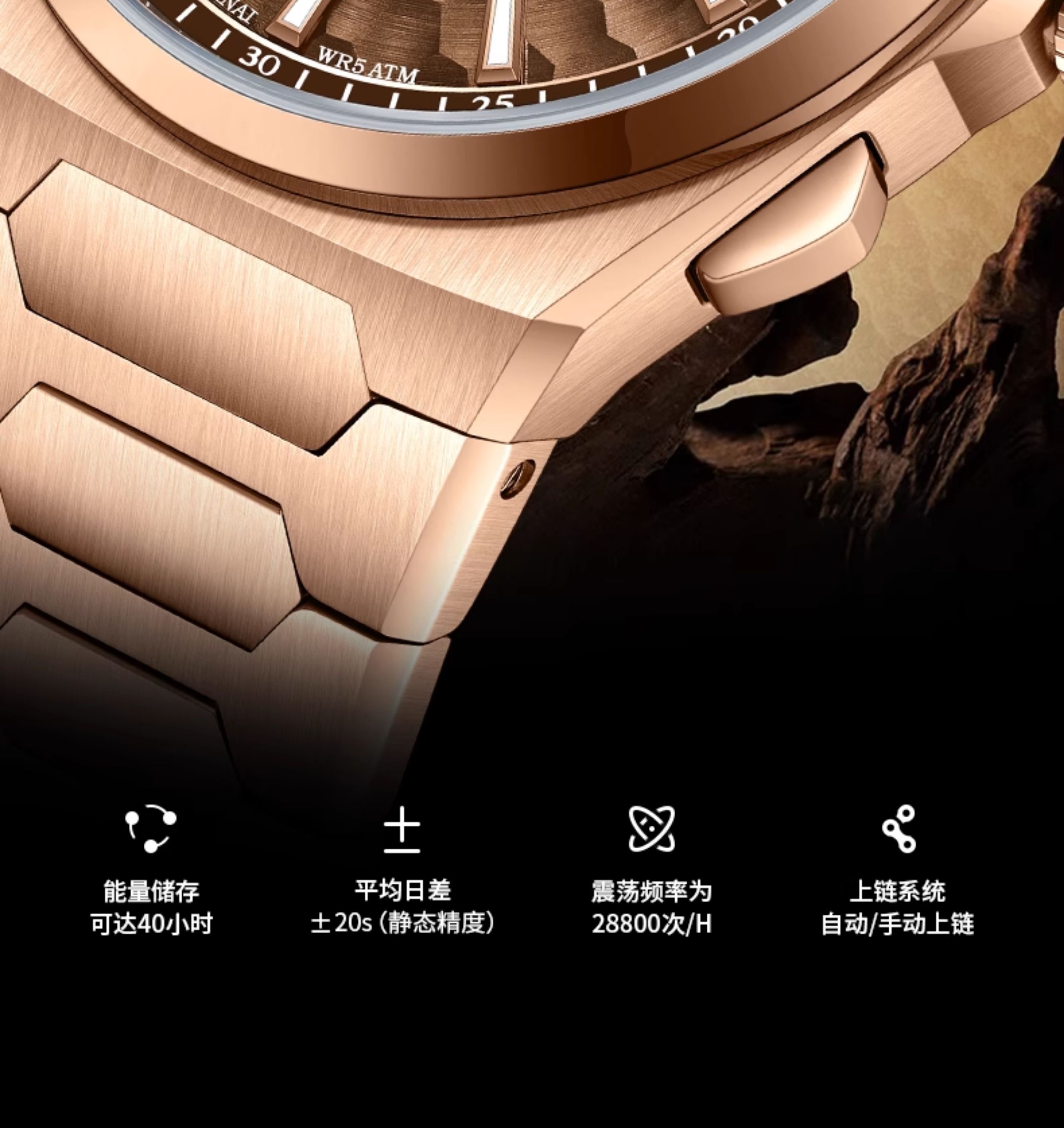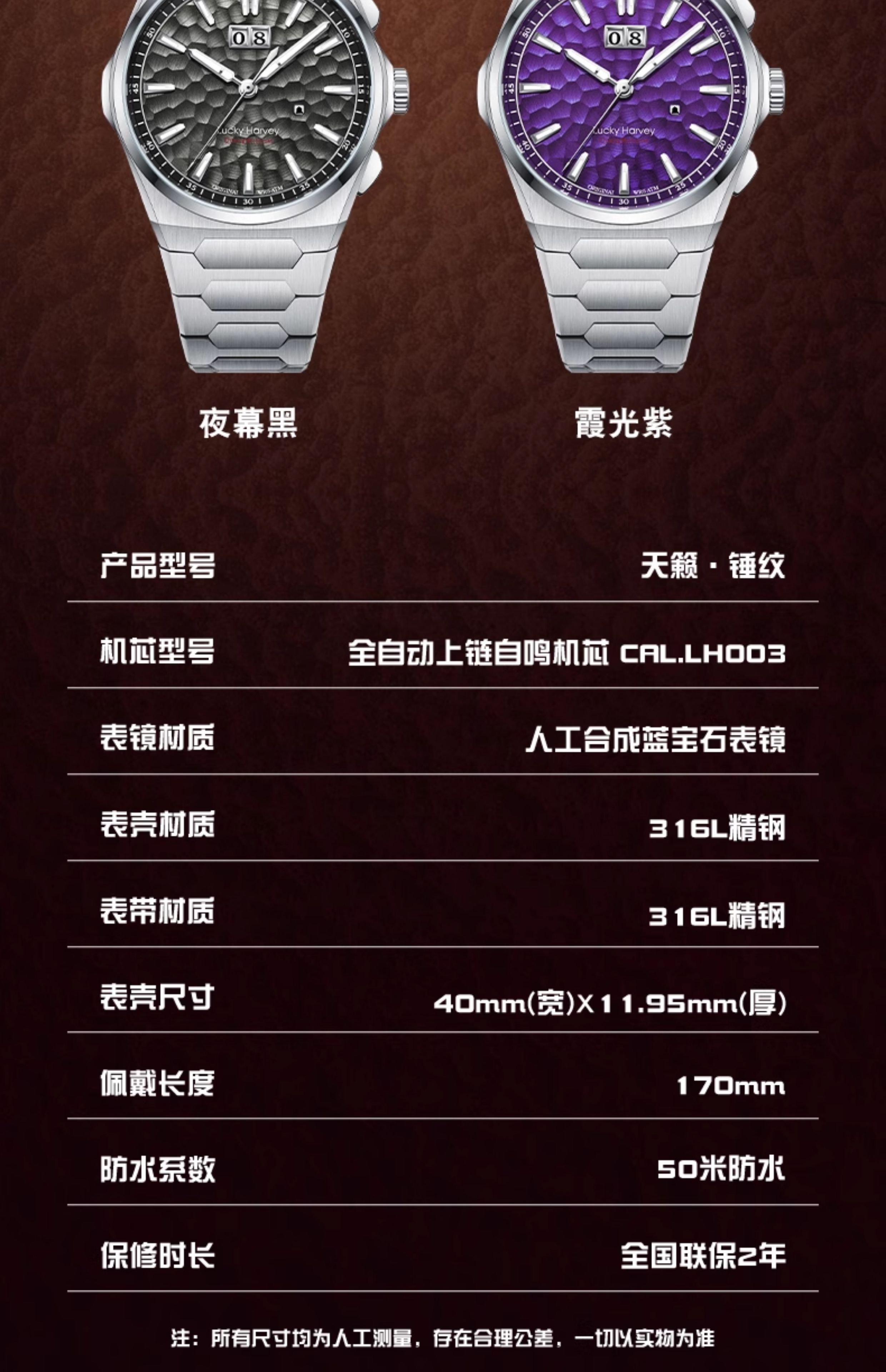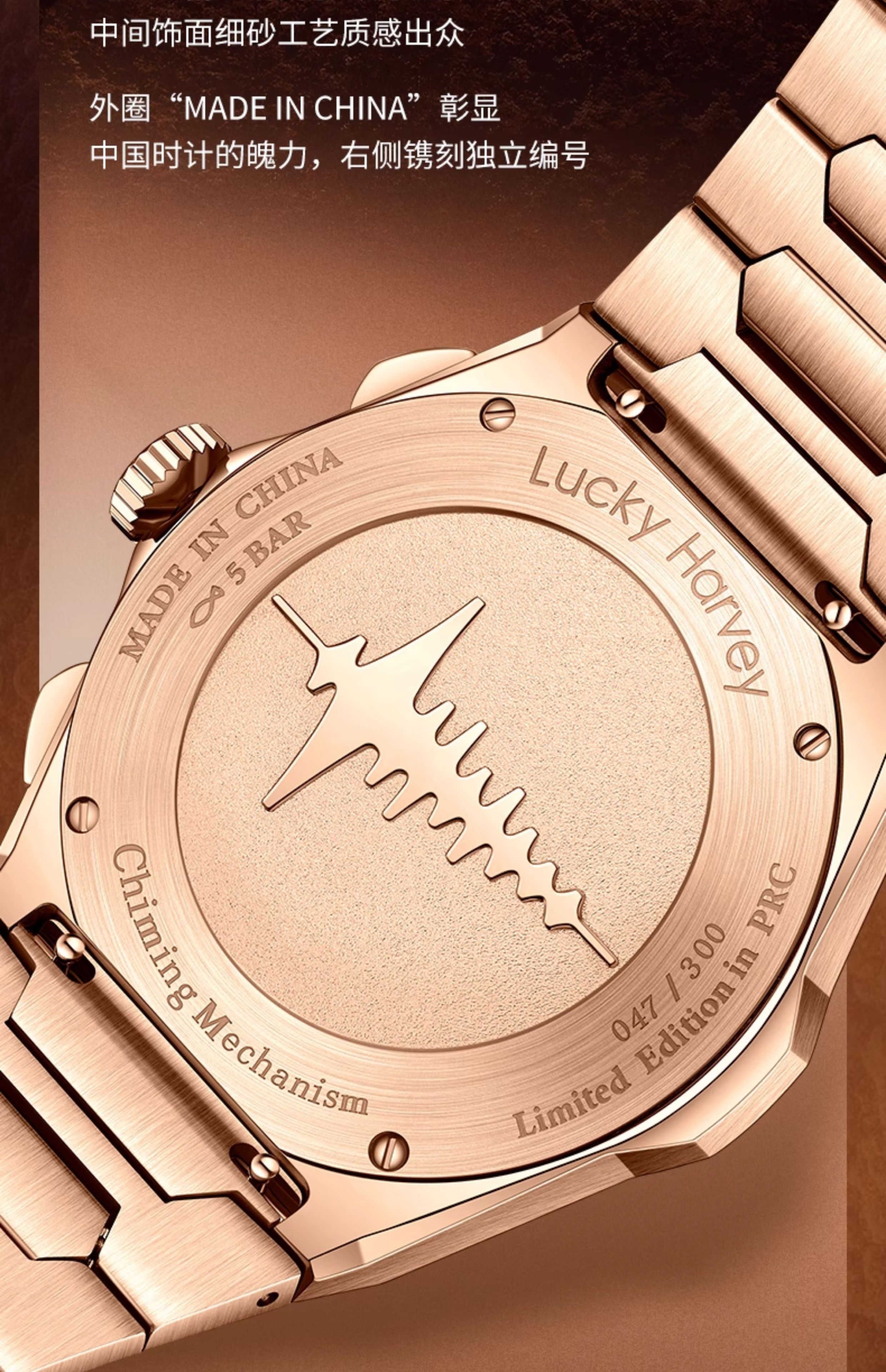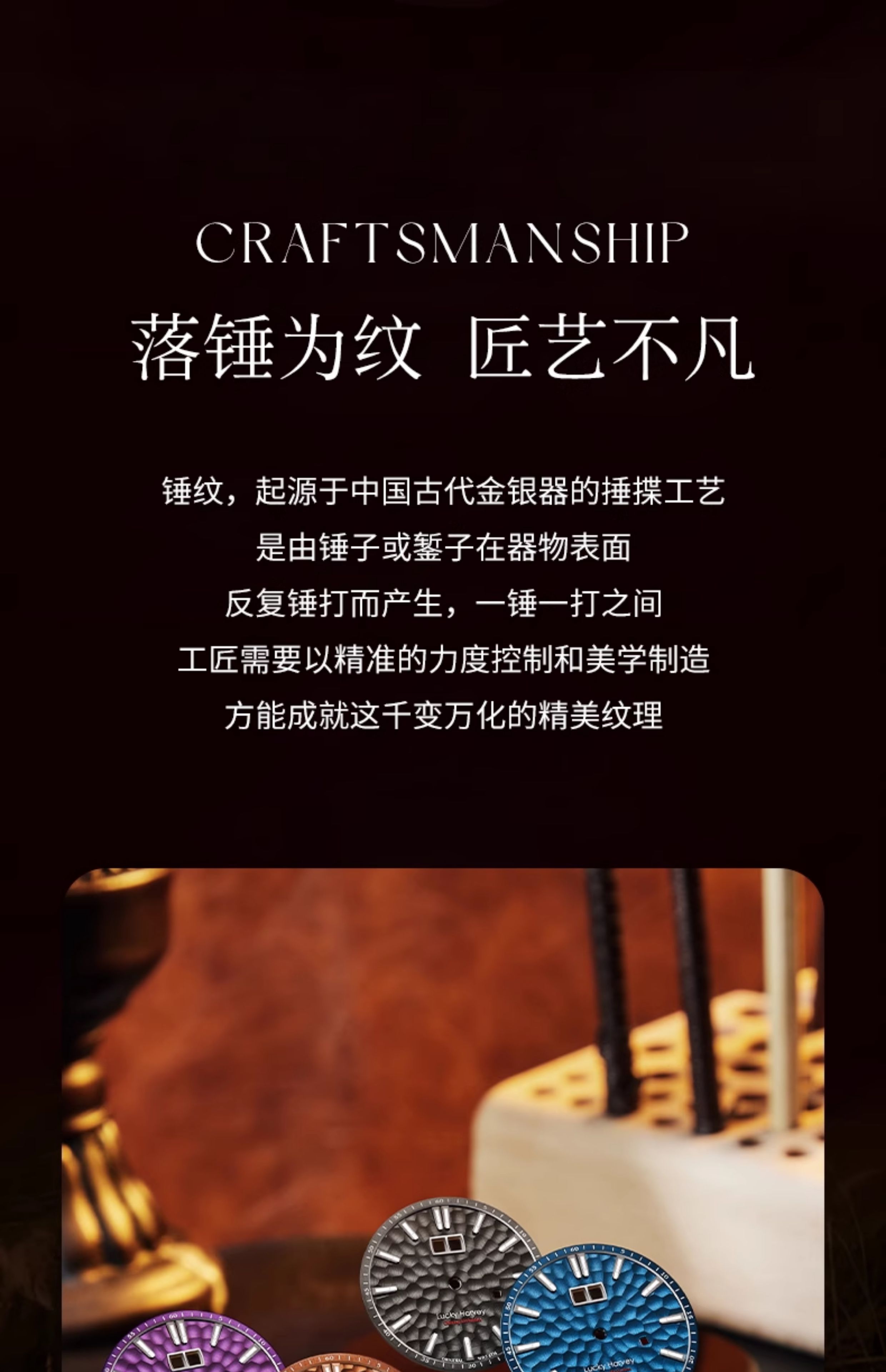 [Limited Edition] Lucky Harvey Self-Winding Series Hammered Texture Men's Watch Mechanical Watch Amber Brown