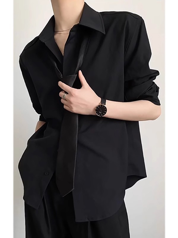 Black Naples Dk Shirt for Men, a Complete Set of High-End Spring and Autumn British Style Long-Sleeved Shirts
