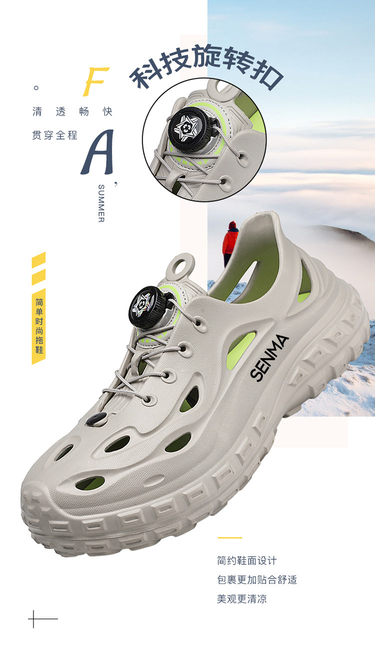 Semir Men's Summer Outdoor Non-Slip Wear-Resistant Thick-Soled Sandals, Large Size 45, Beach Sports Shoes