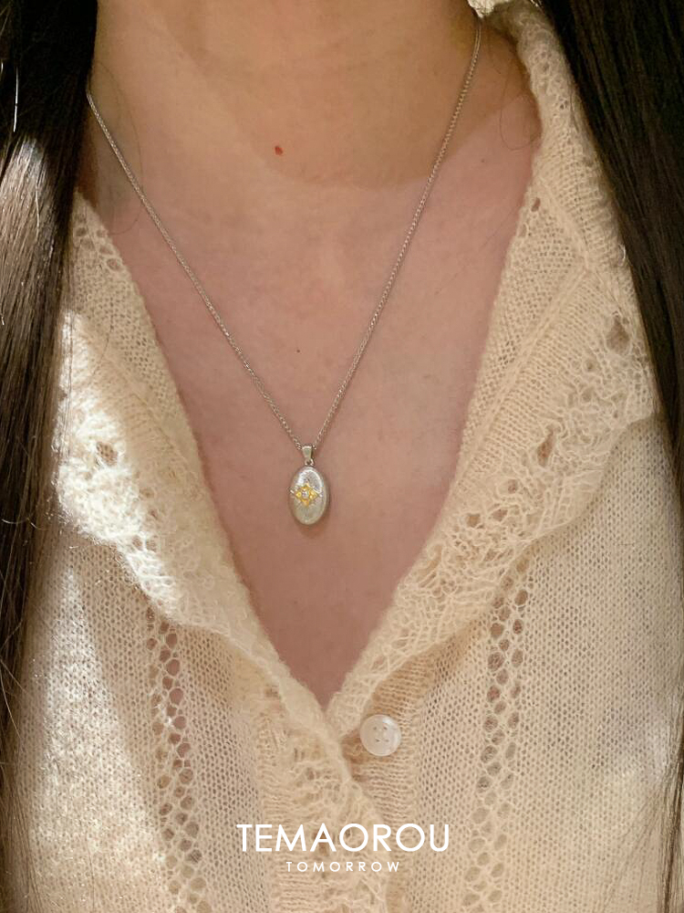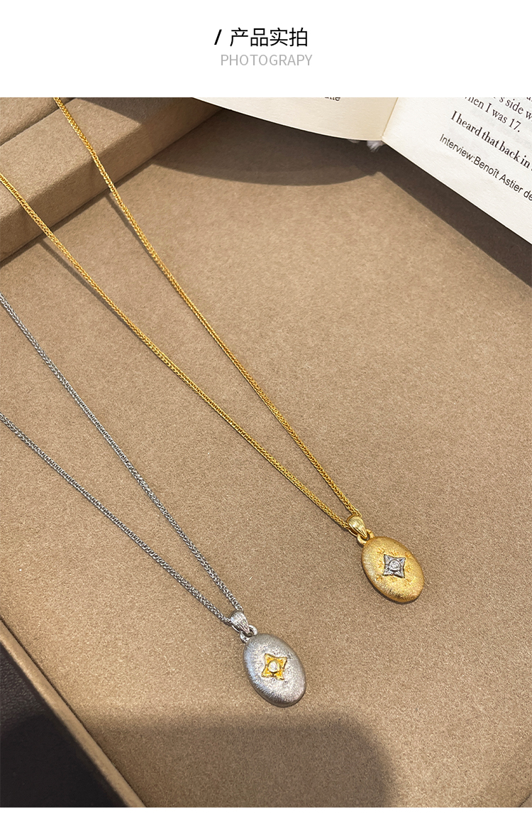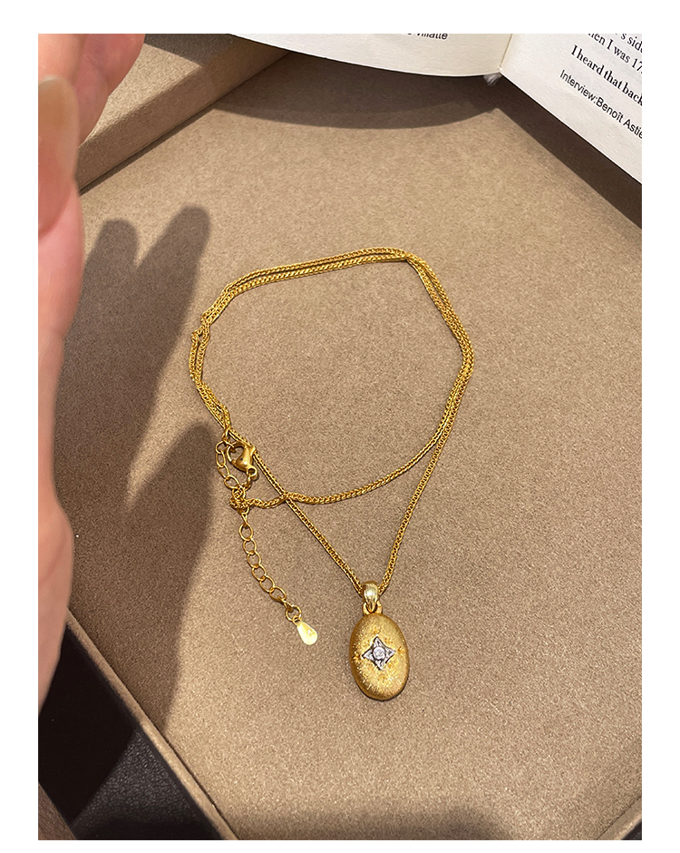 Bath-Resistant, Non-Fading "Eight-Pointed Star Coffee Bean" Double-Sided Pendant Necklace for Women, Clavicle Chain, Sweater Chain
