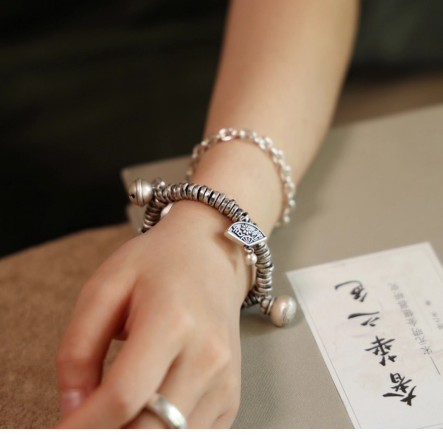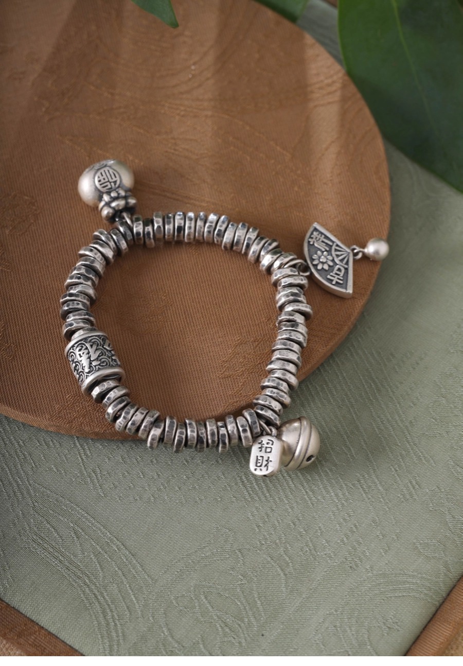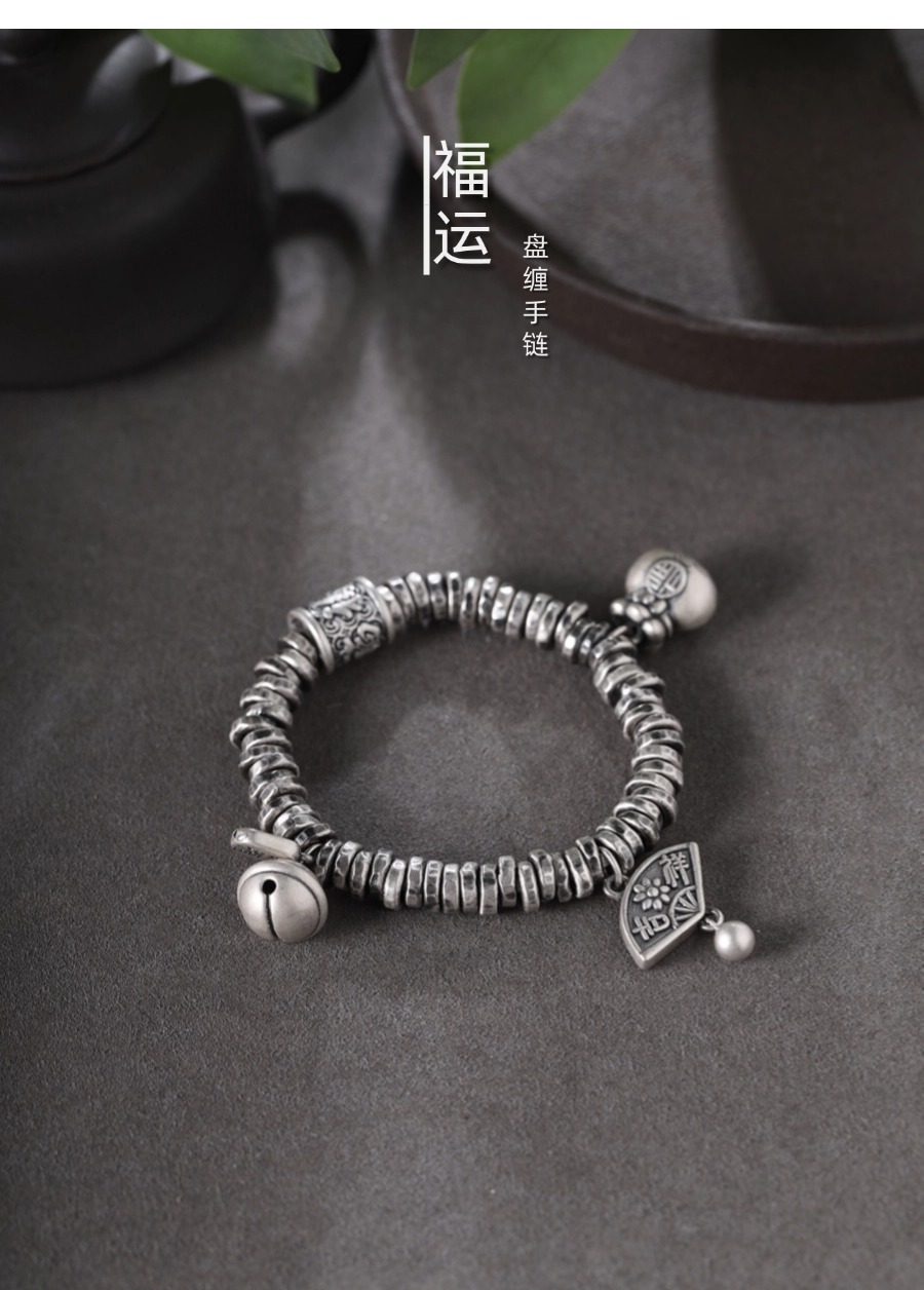 Fortune-Bringing Xisu Vintage Distressed 999 Pure Silver Bracelet, Wealth-Attracting and Fortune-Bringing, Coiled Design, Unisex Silver Bracelet