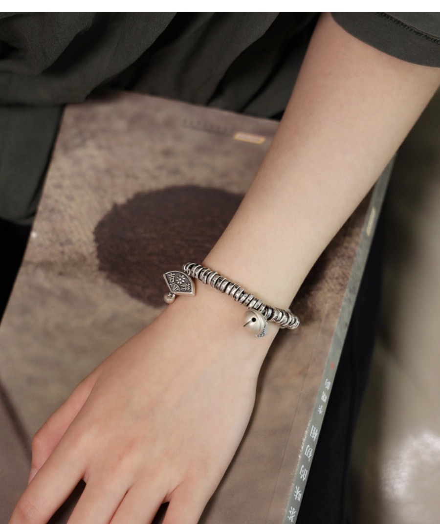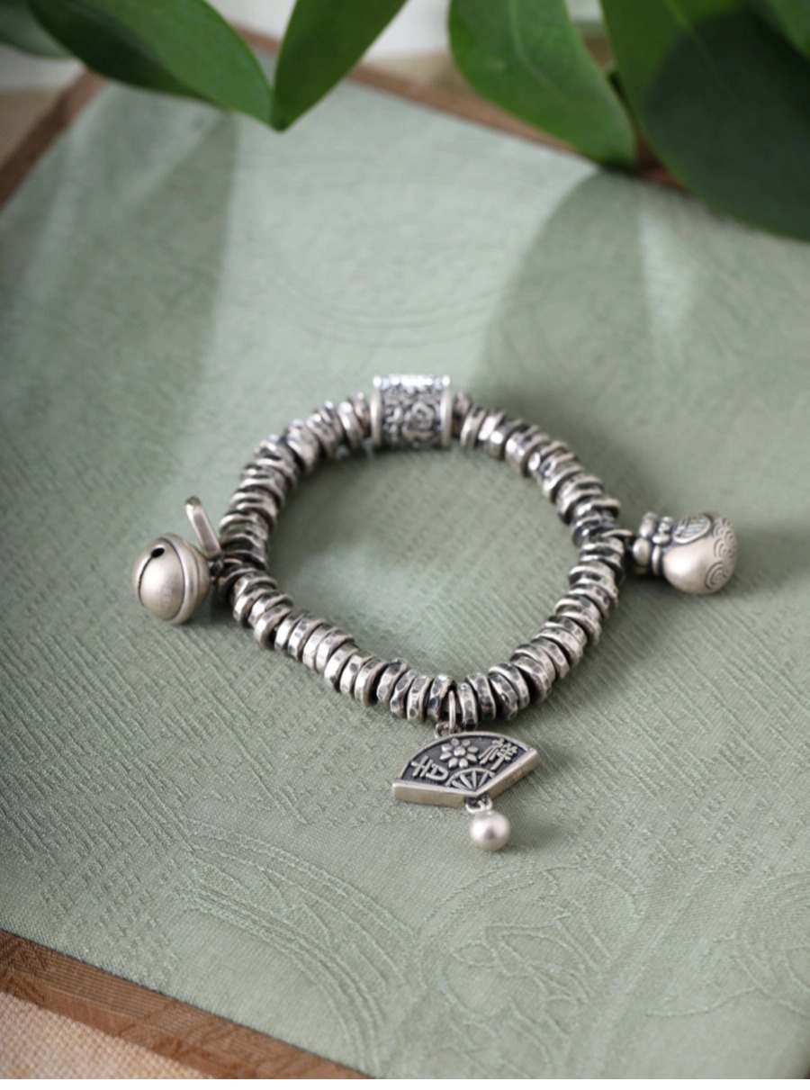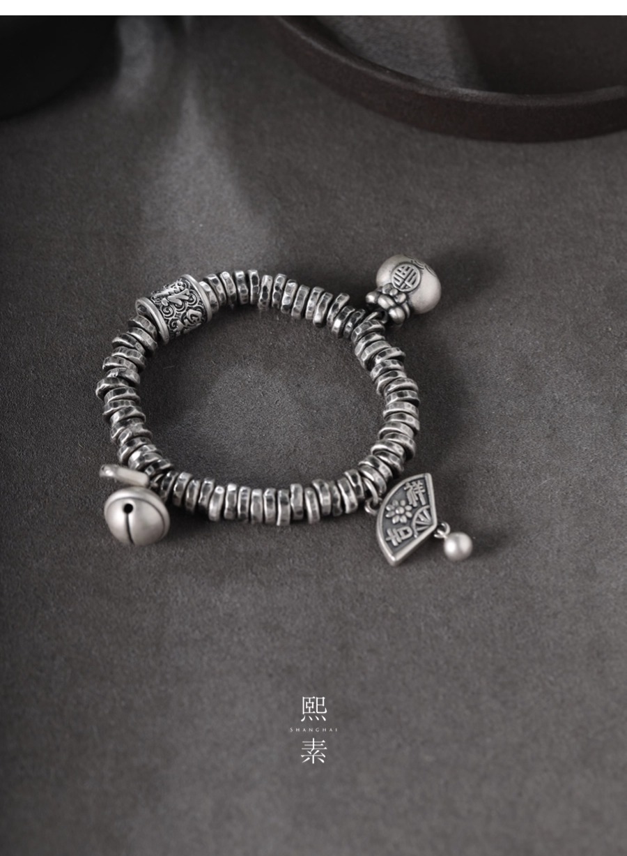 Fortune-Bringing Xisu Vintage Distressed 999 Pure Silver Bracelet, Wealth-Attracting and Fortune-Bringing, Coiled Design, Unisex Silver Bracelet