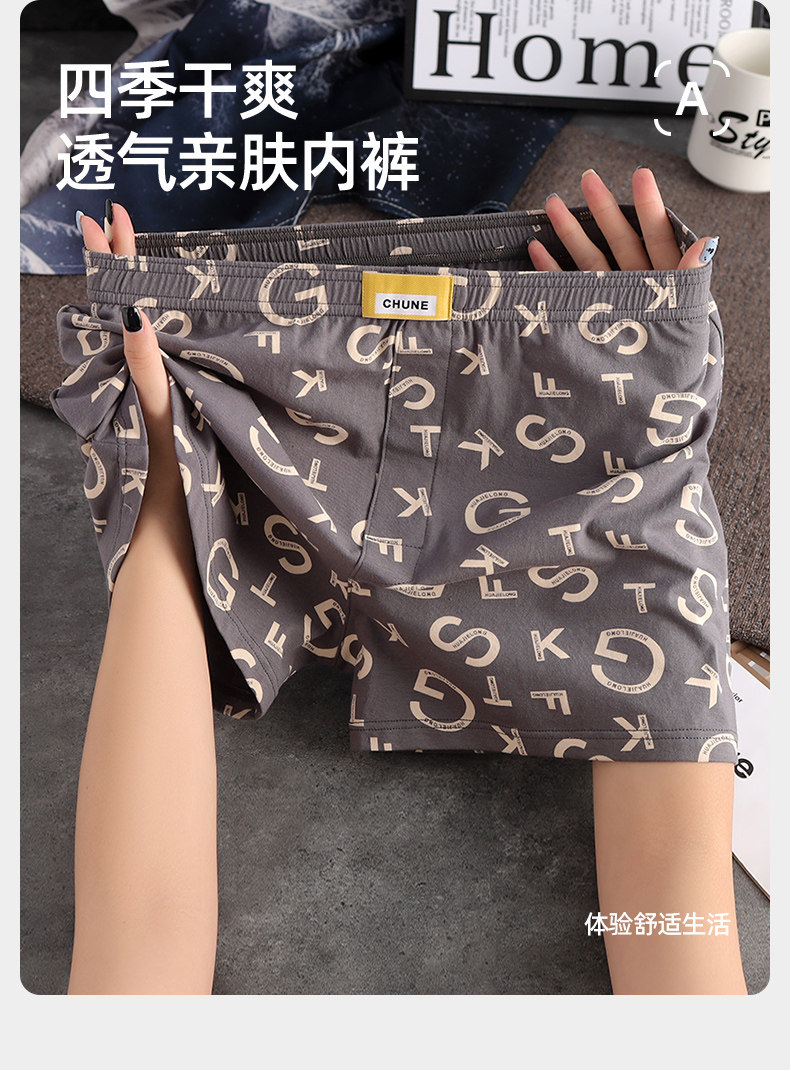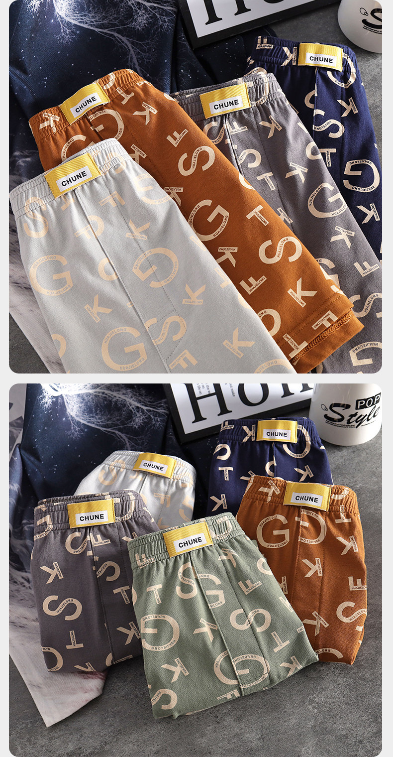 New Men's Pure Cotton Boxer Shorts, Summer Sports Breathable and Comfortable Boxer Shorts, Boys' Fashionable Mid-Waist Shorts