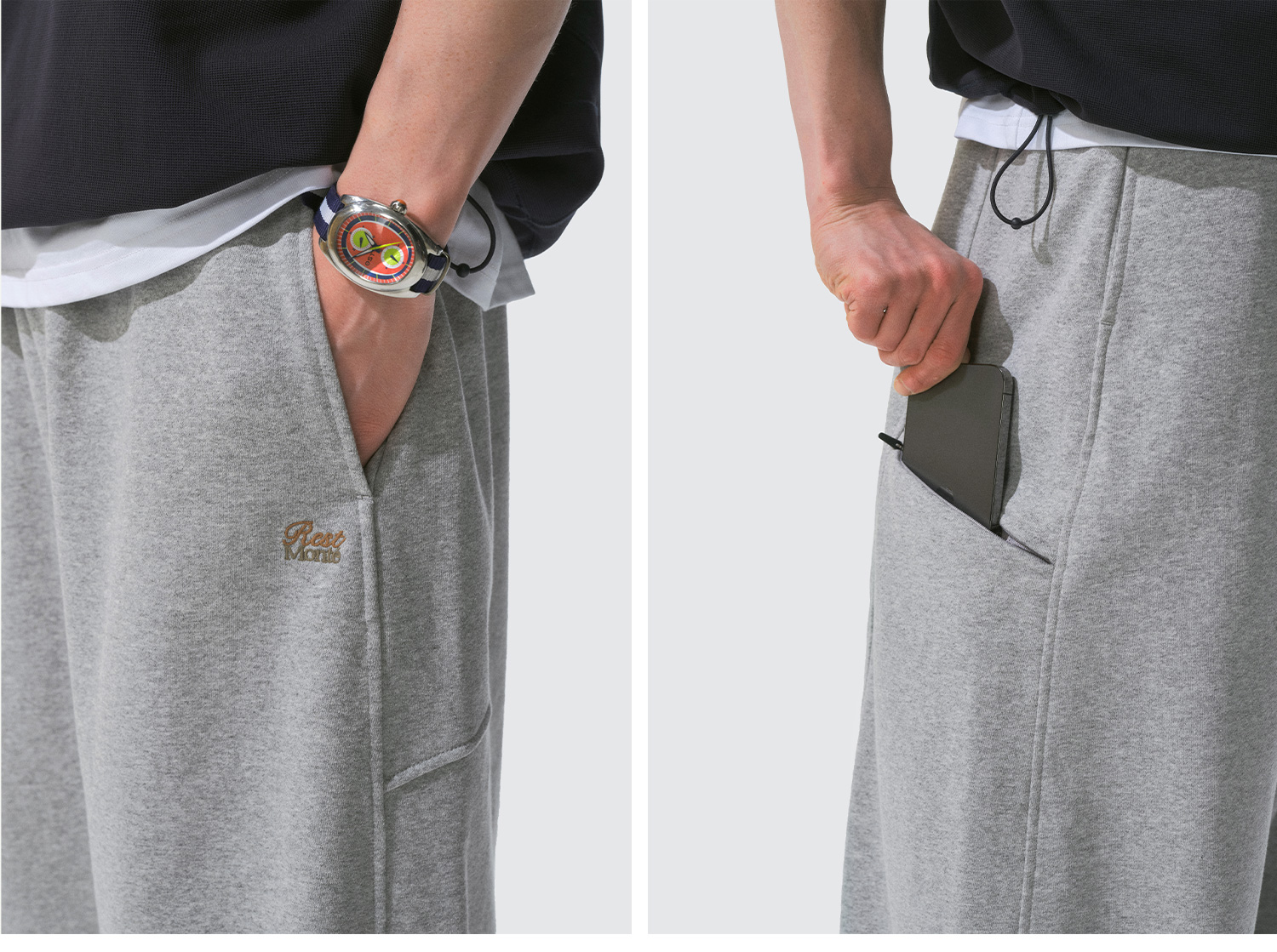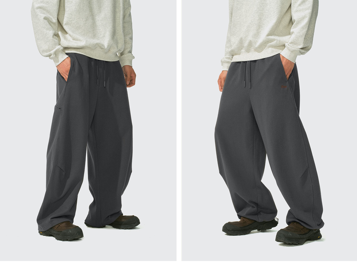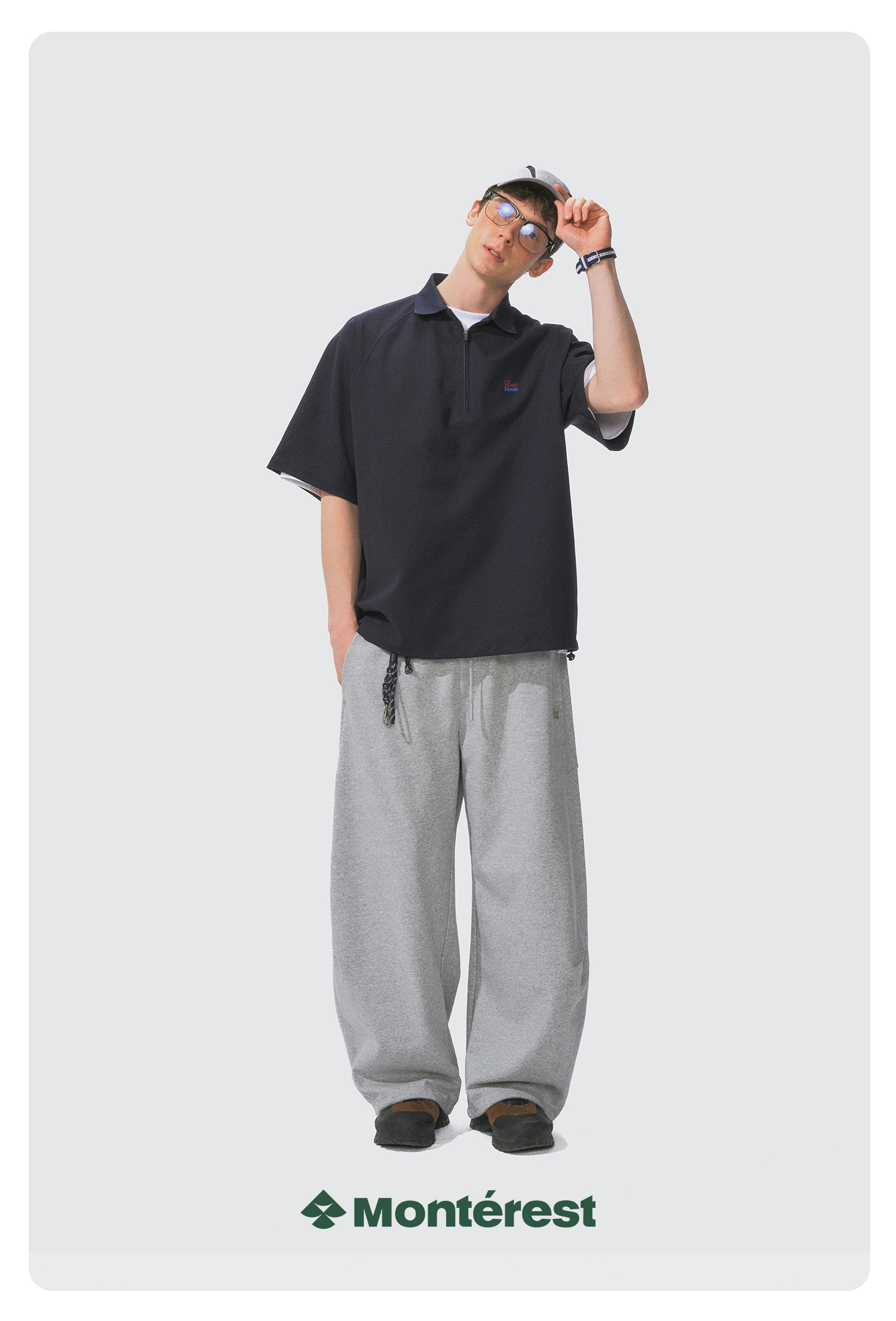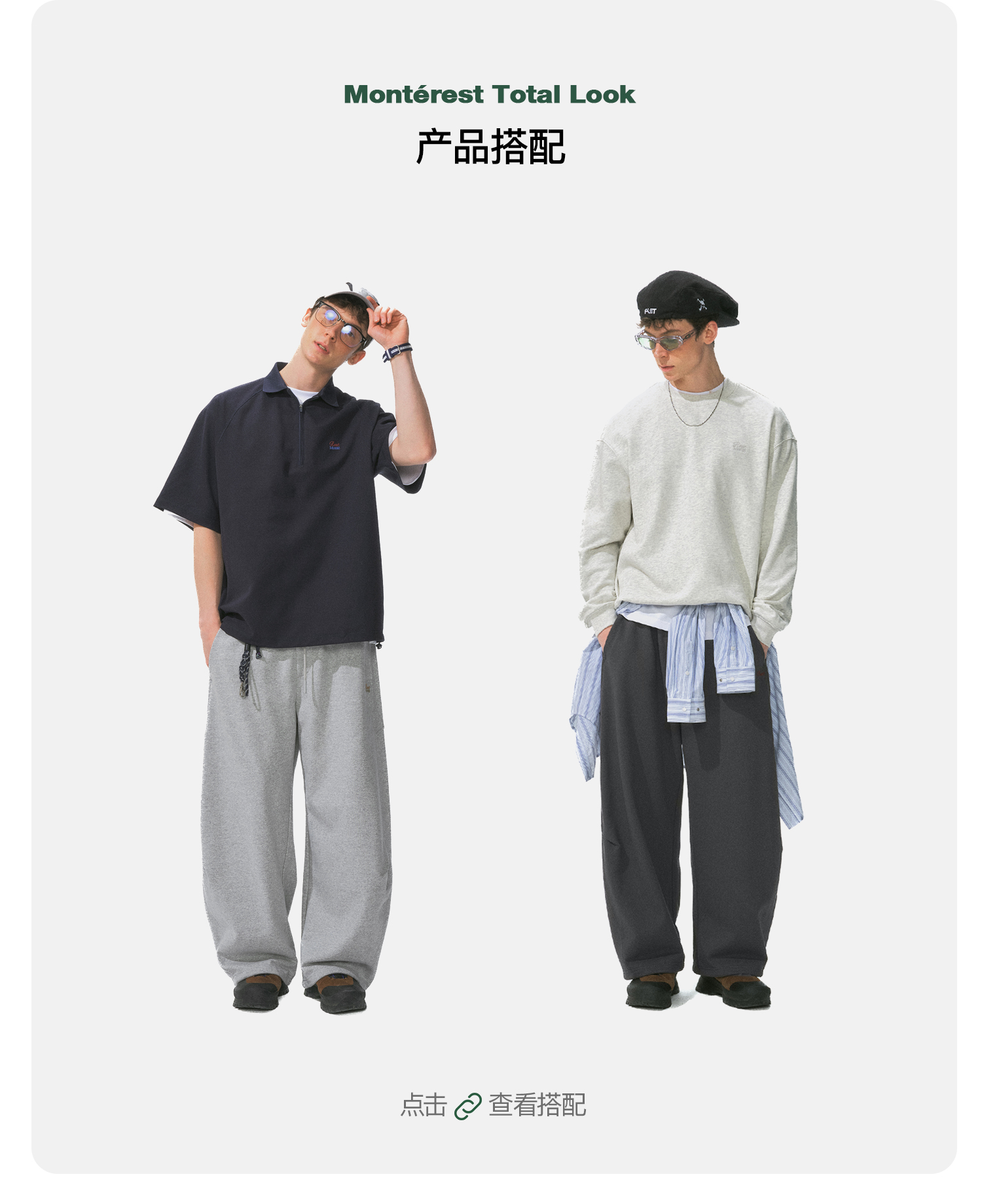 Monterest Outdoor Color-Block Floral Logo Embroidery Loose Fit Structured Split Knife-Edge Sweatpants for Men