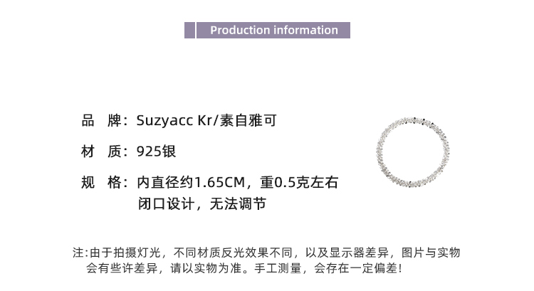 Suzyacc Kr Sparkling Plain Ring Sterling Silver Ring Accessible Luxury Niche Design Index Finger Ring Super Fairy Elegant Ring