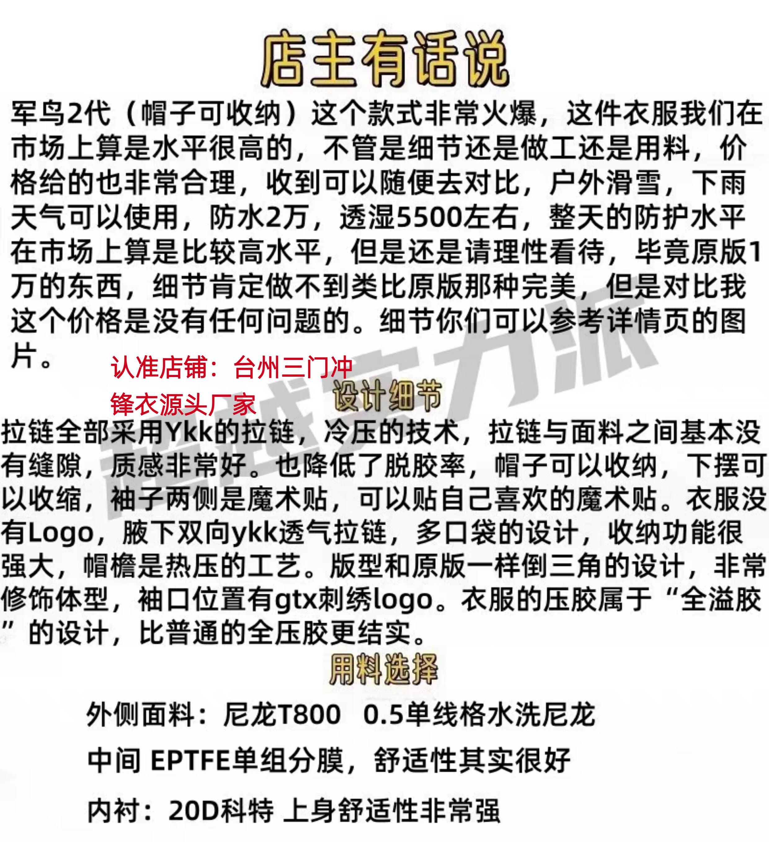 Taizhou Junniao Tactical Hardshell Jacket Without Logo, Wear-Resistant Gen2.2 Taped Eptfe Membrane Outdoor Mountaineering Jacket