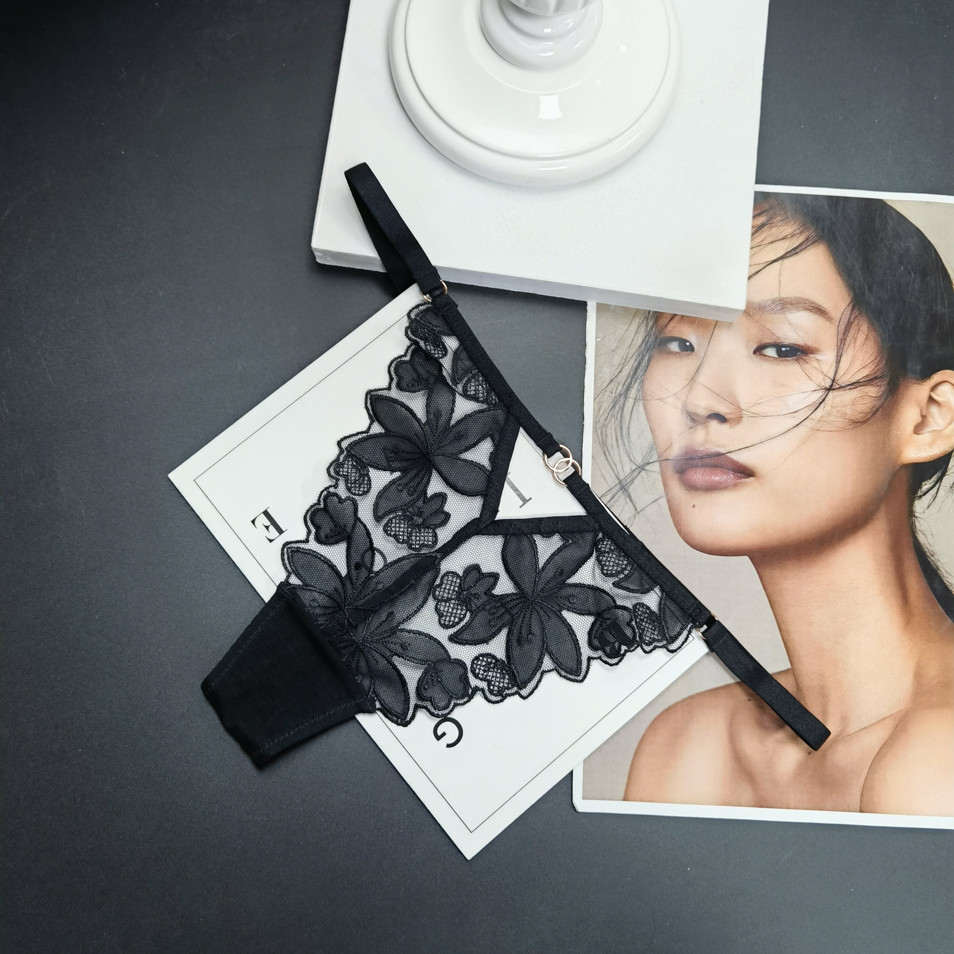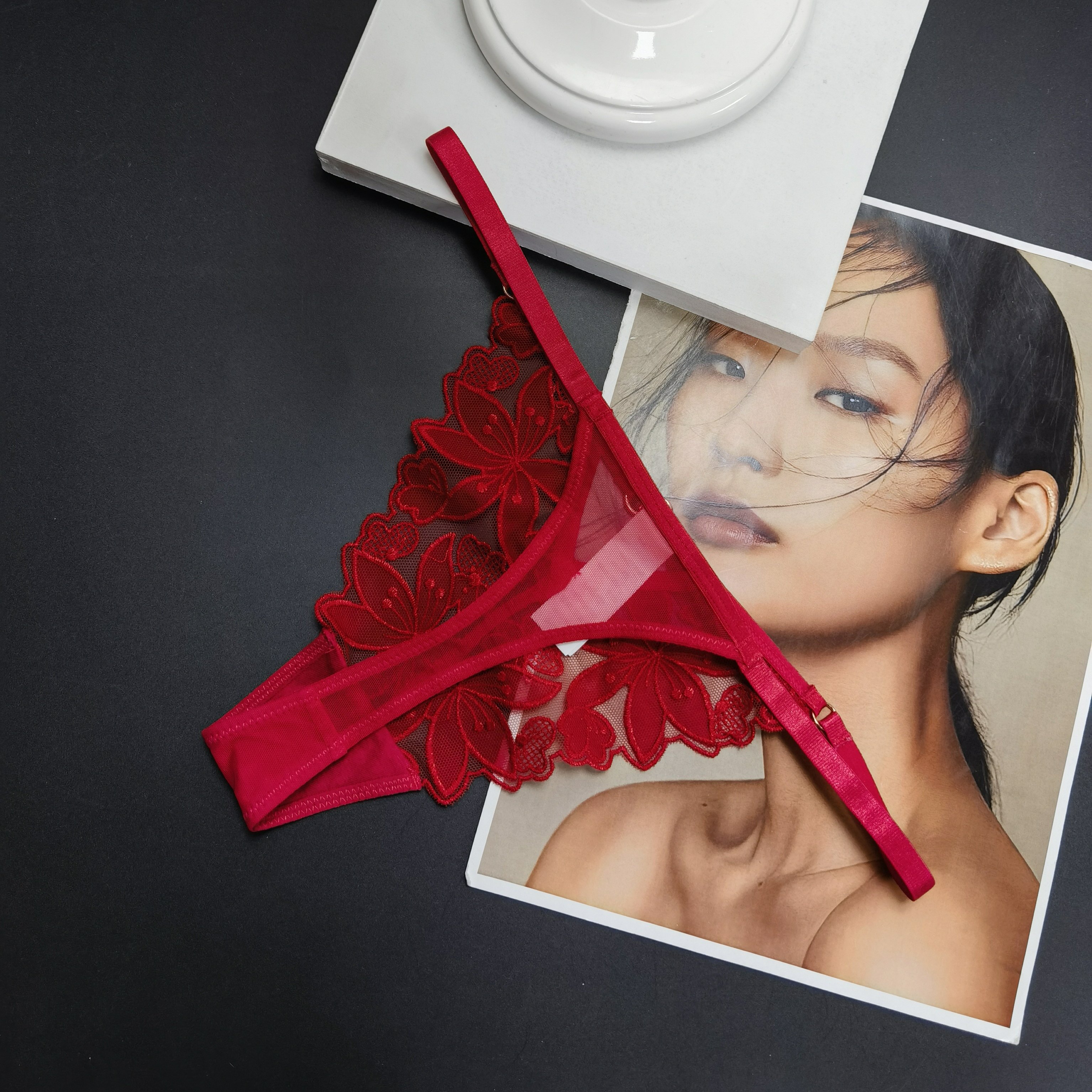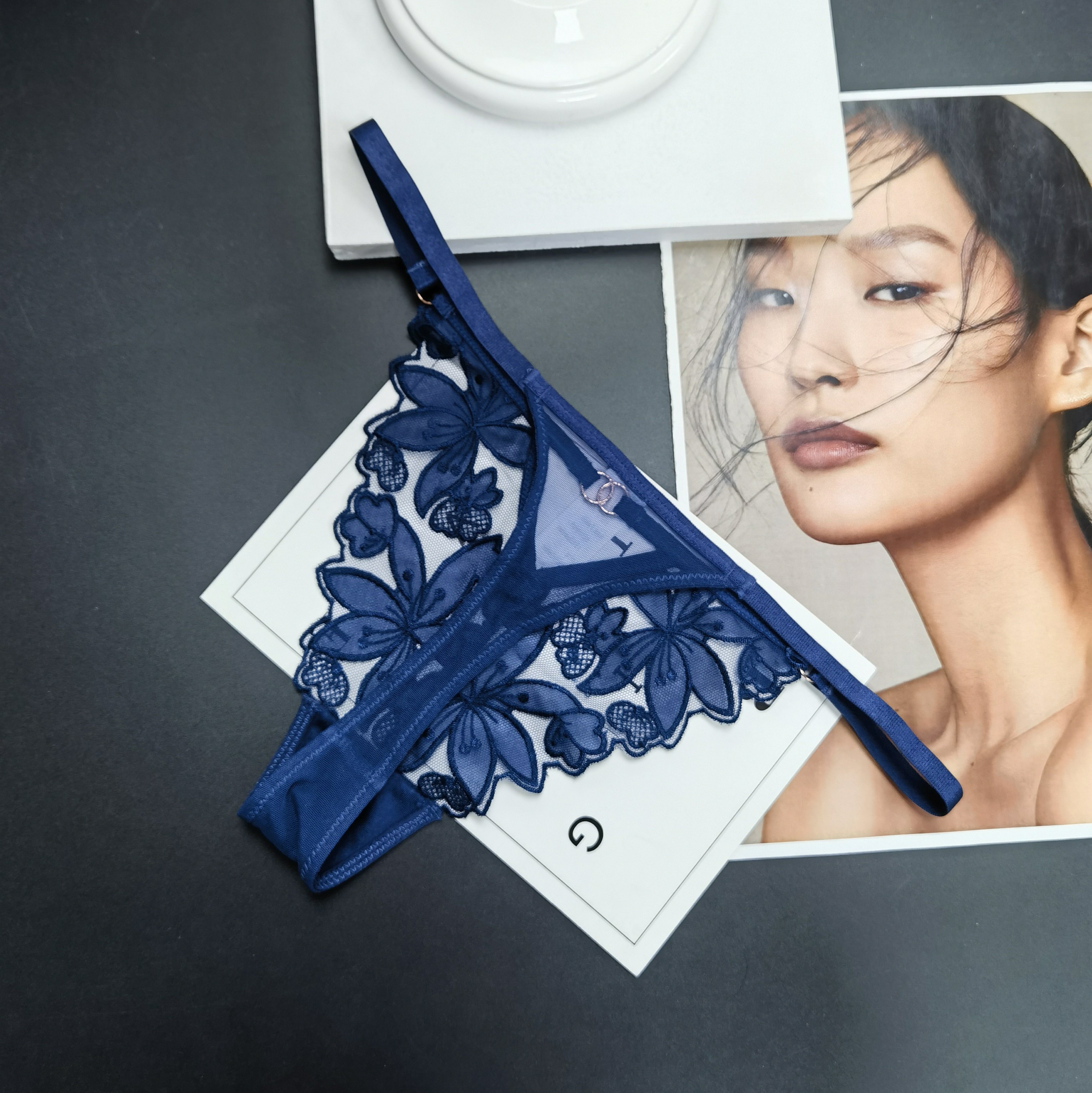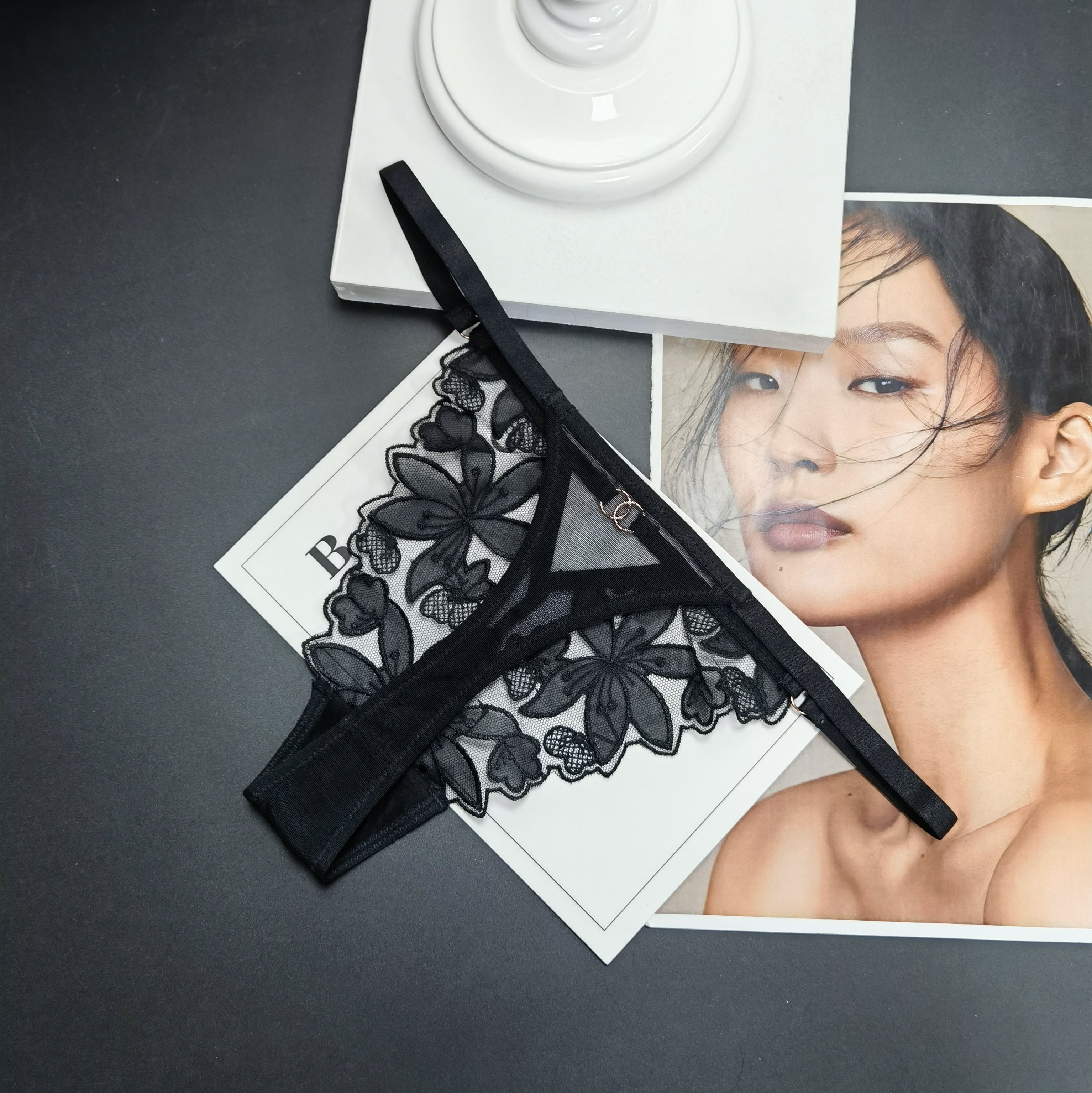 French-Style Embroidered Lace Panties, Sexy Thong, Transparent Thin Low-Rise Pure Desire Hollow-Out Light Luxury T-Pants, Plus Size