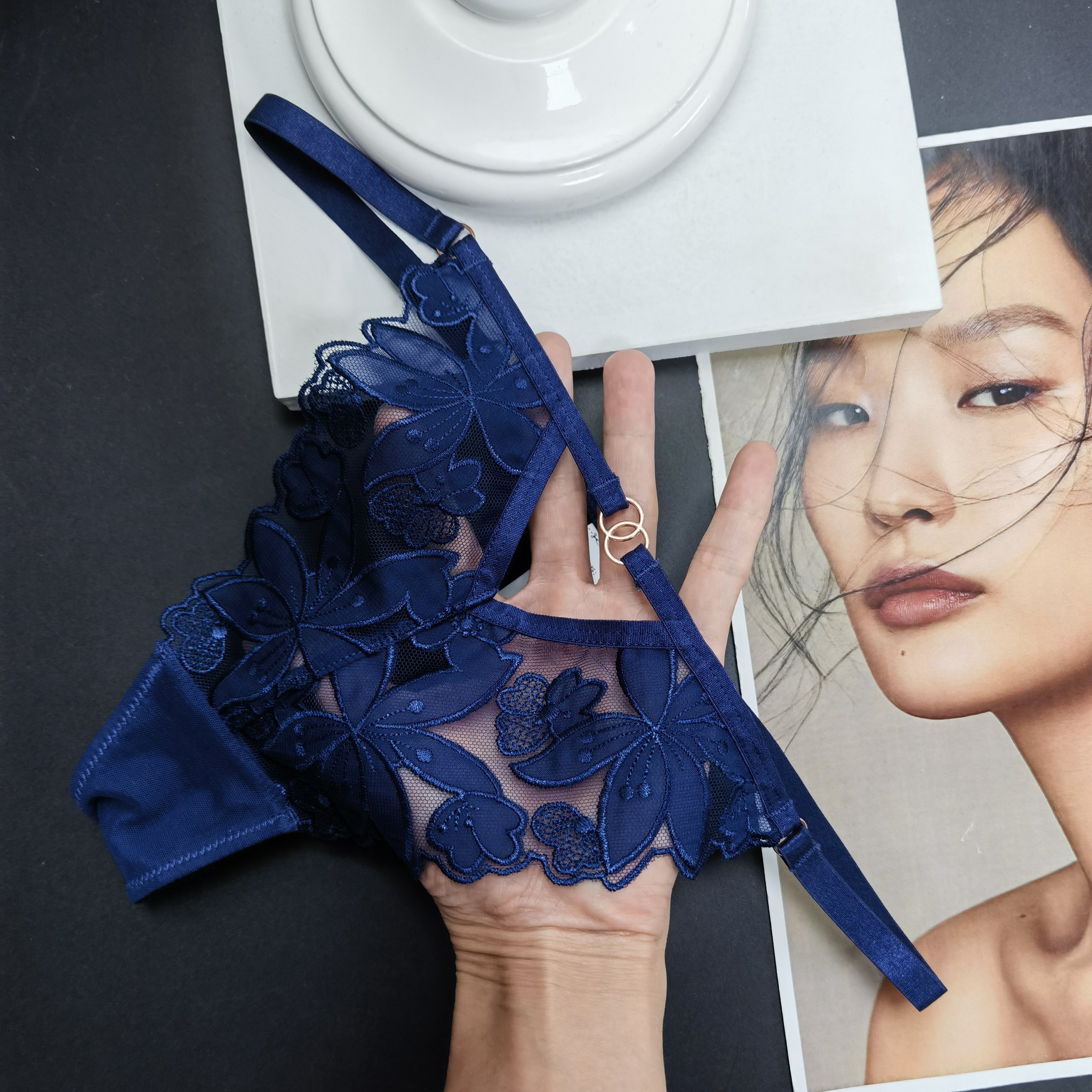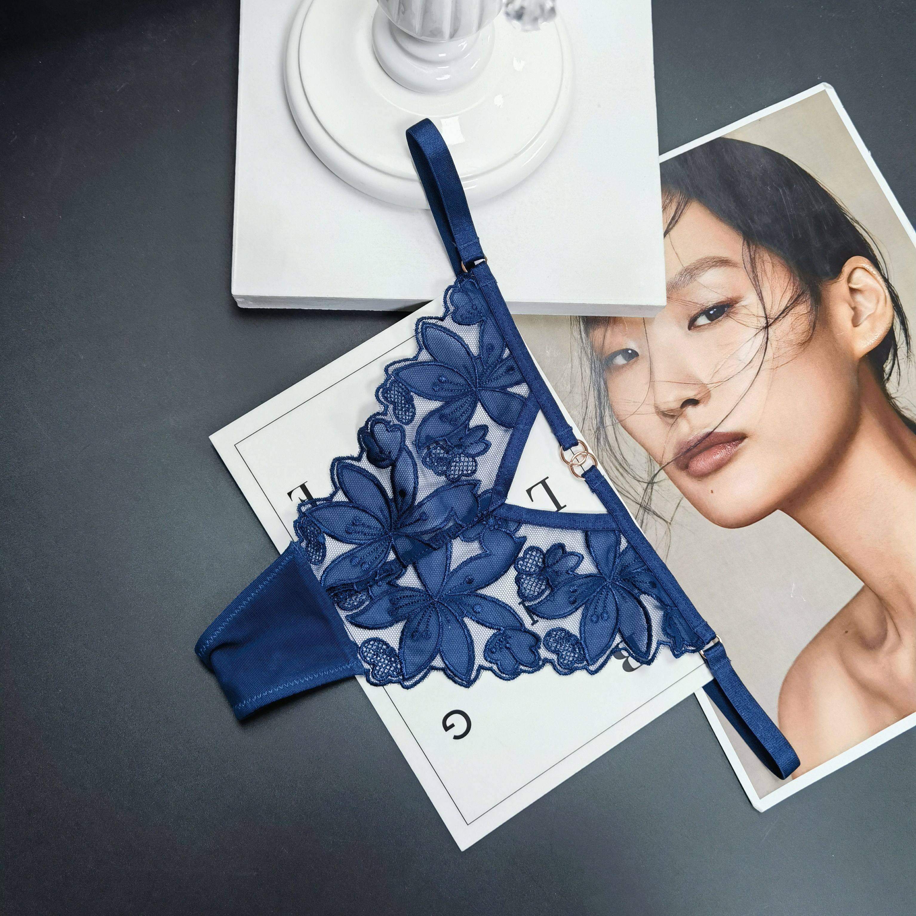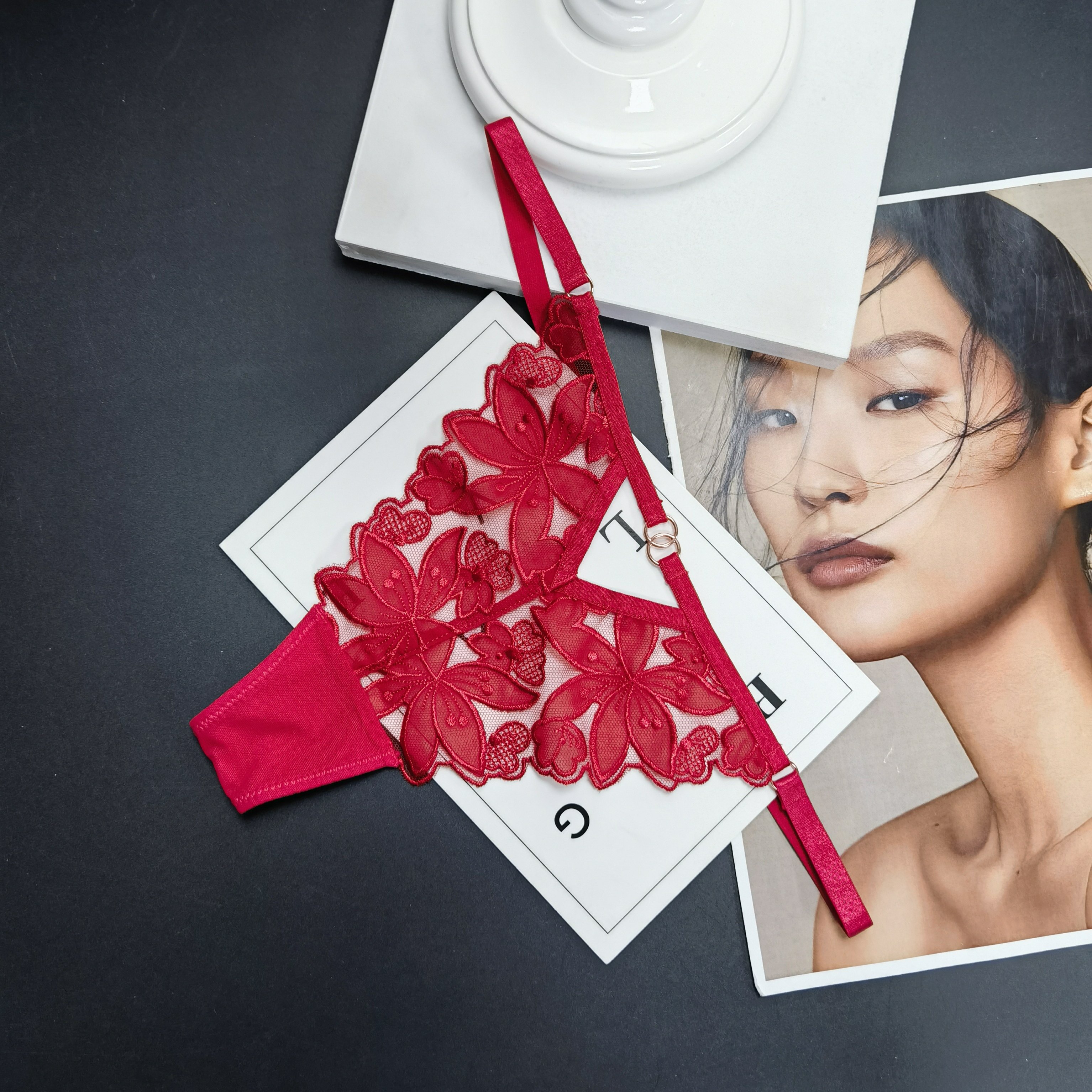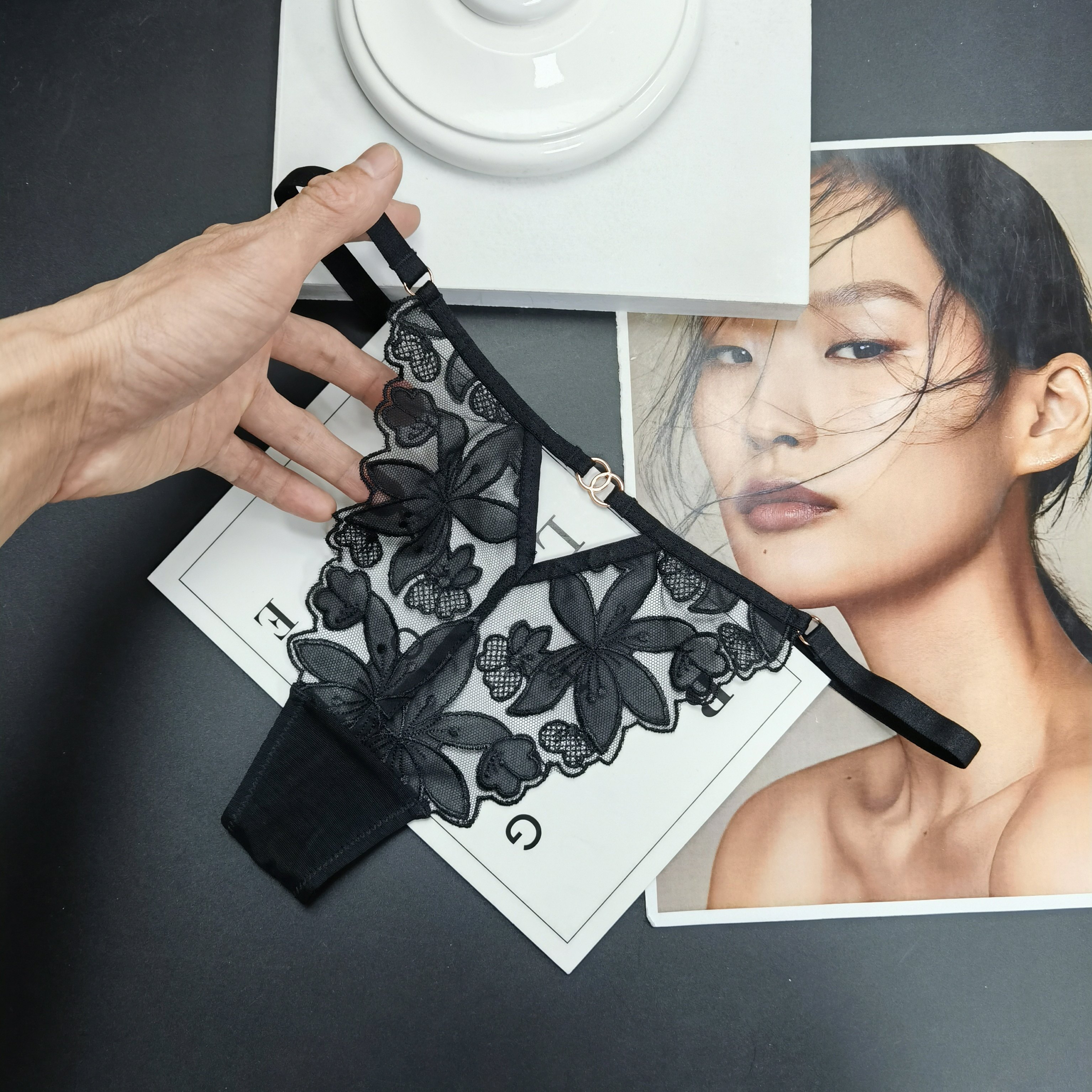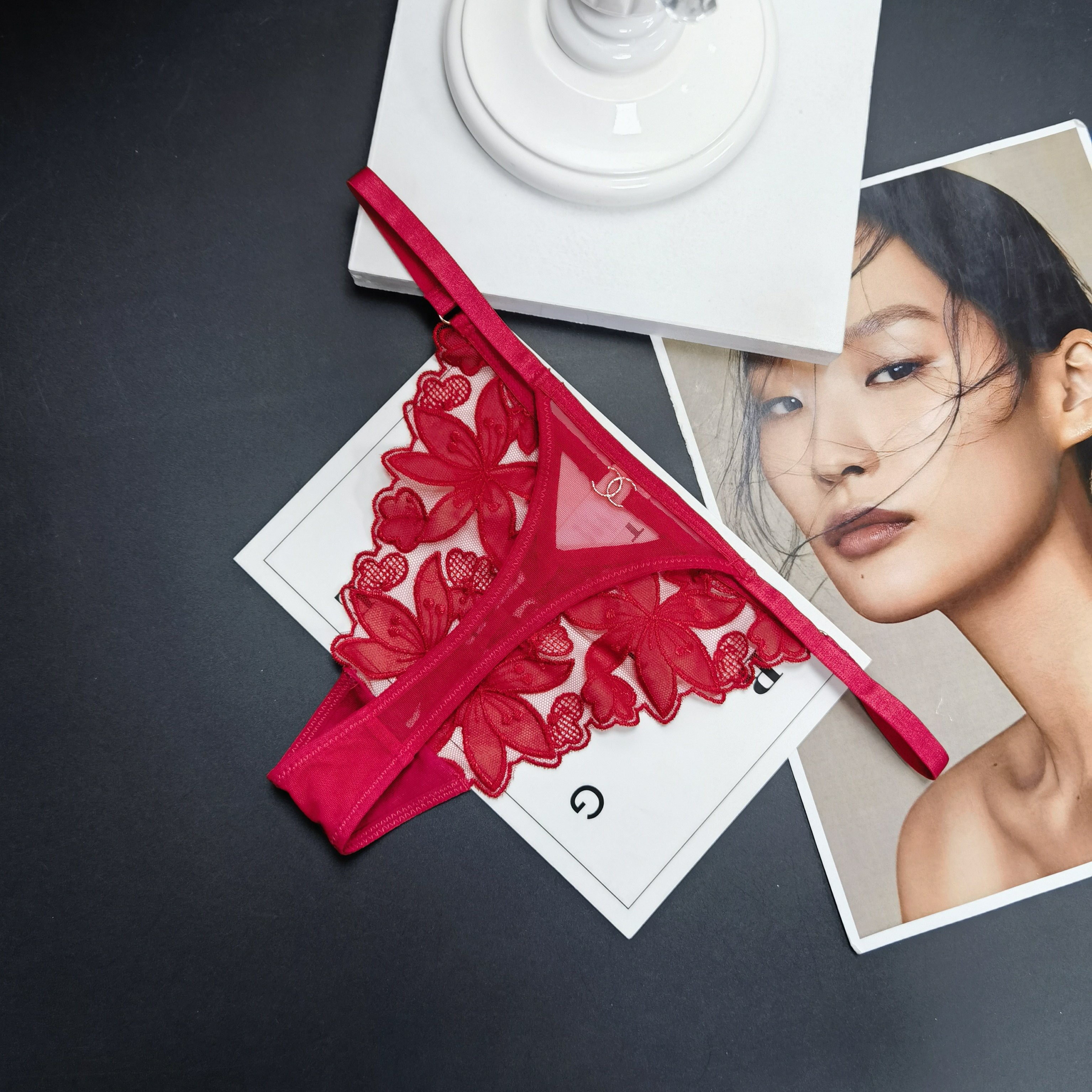 French-Style Embroidered Lace Panties, Sexy Thong, Transparent Thin Low-Rise Pure Desire Hollow-Out Light Luxury T-Pants, Plus Size
