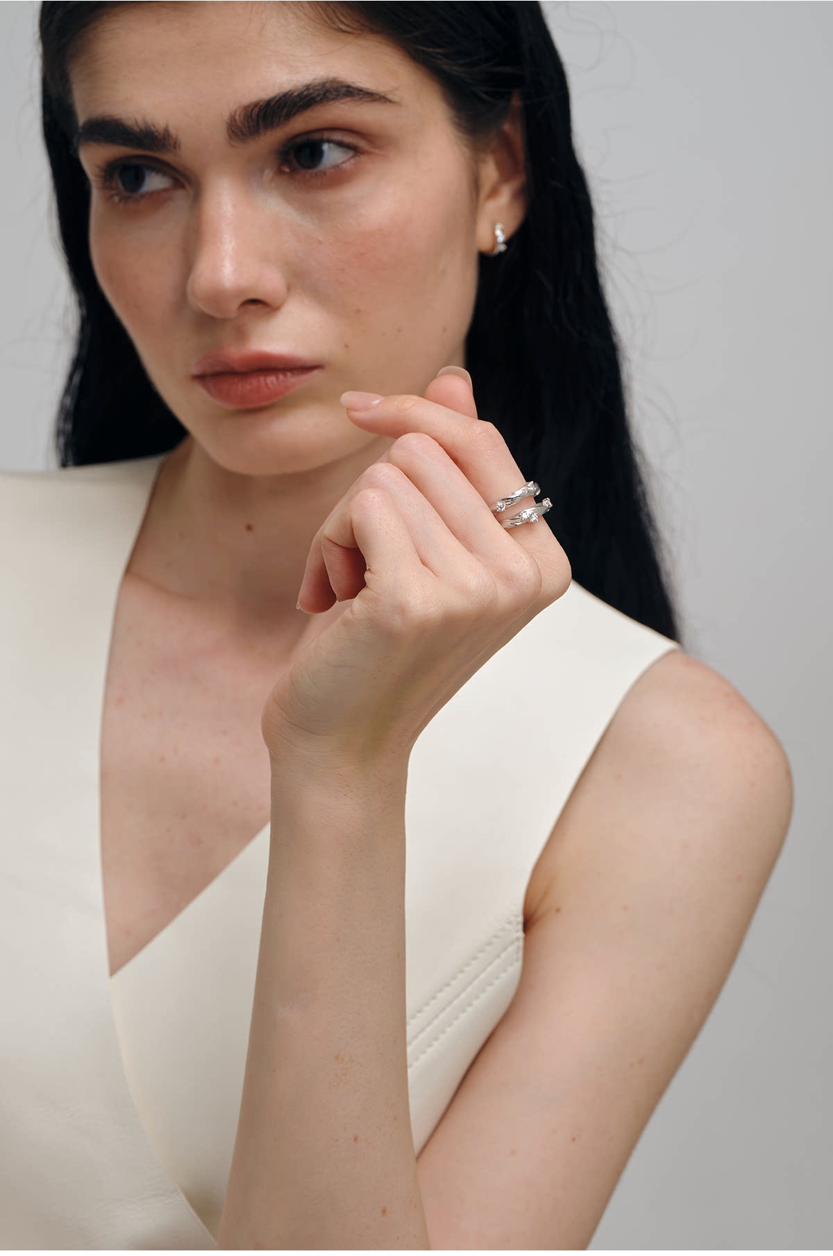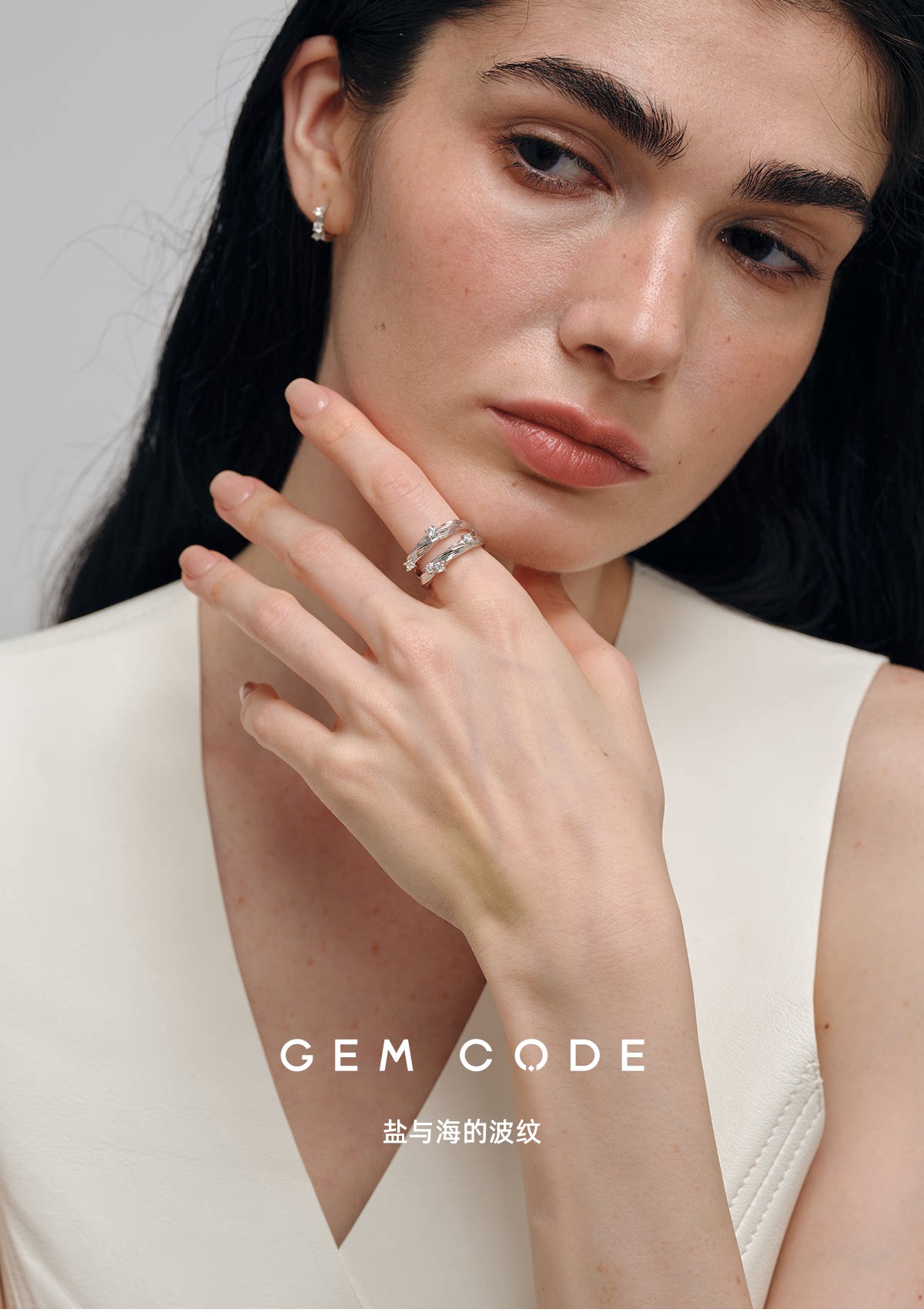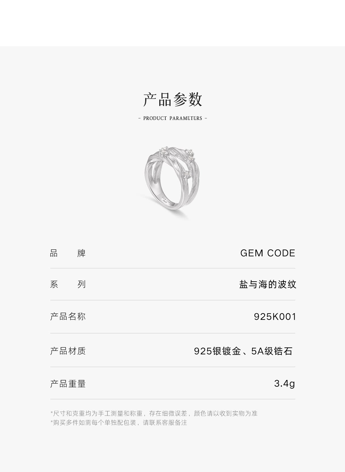 Gem Code Salt and Sea Ripple Series 925 Silver Gold-Plated Double Circle Ring, Simple and Versatile for Everyday Wear