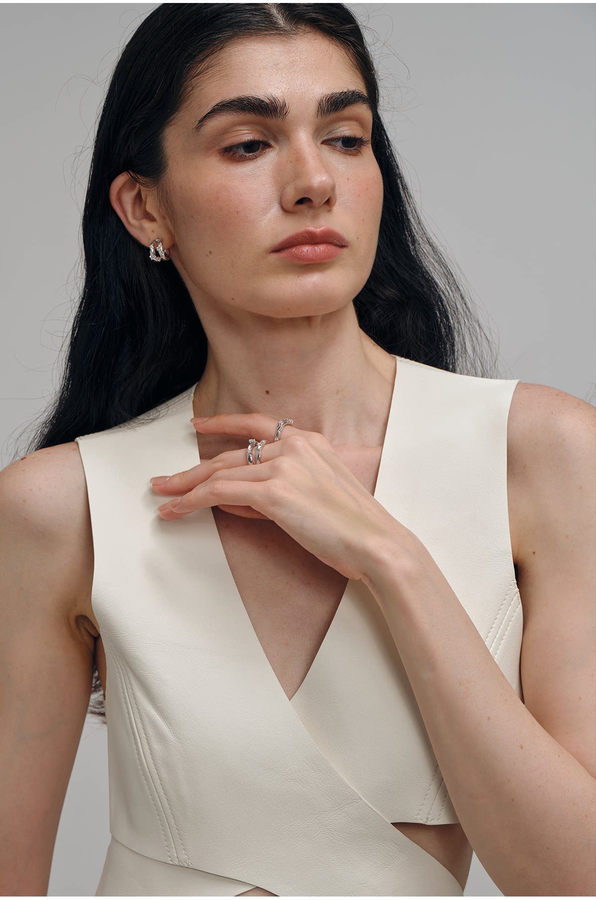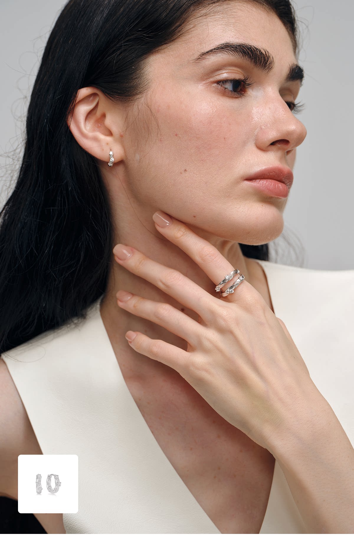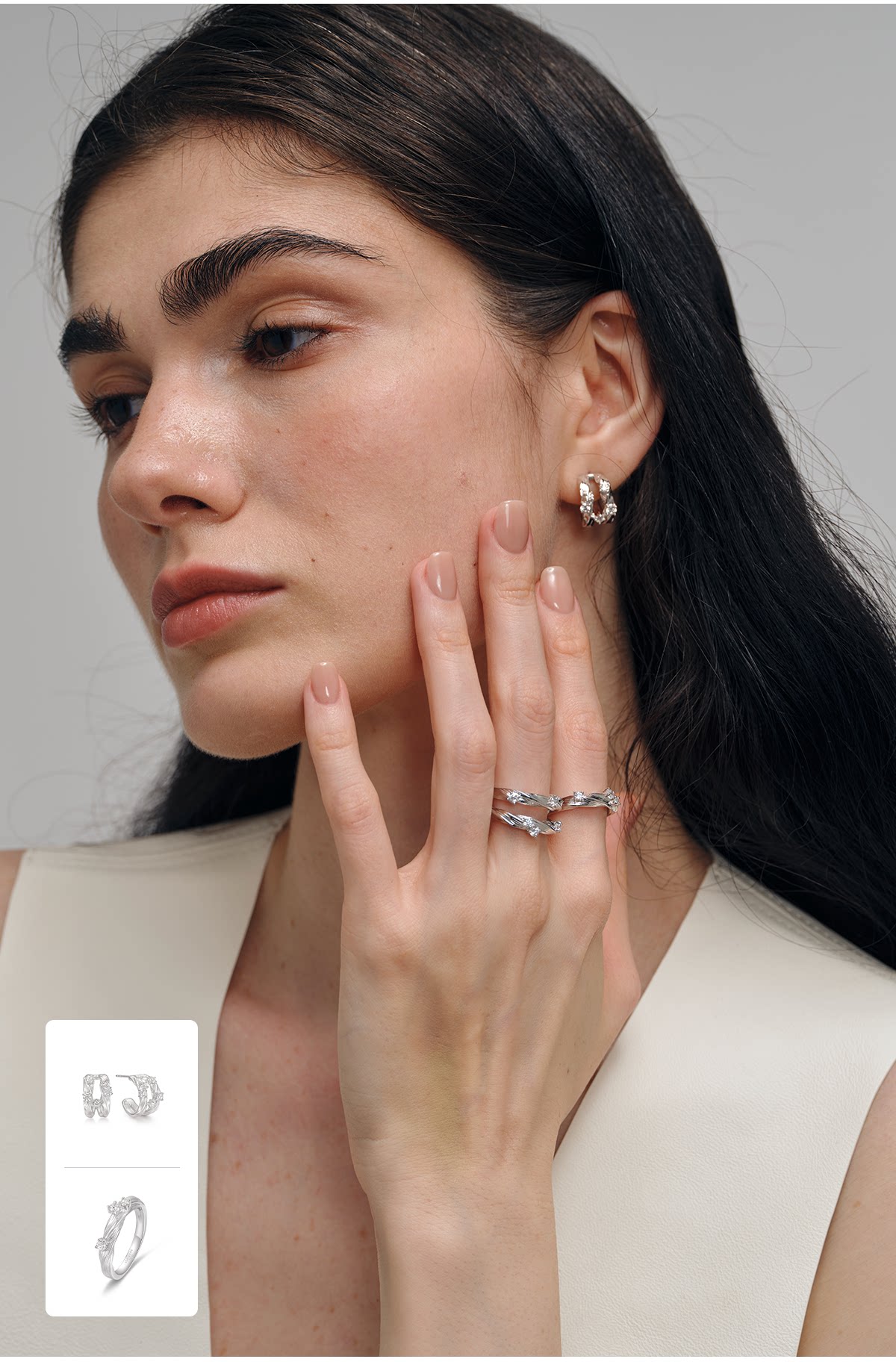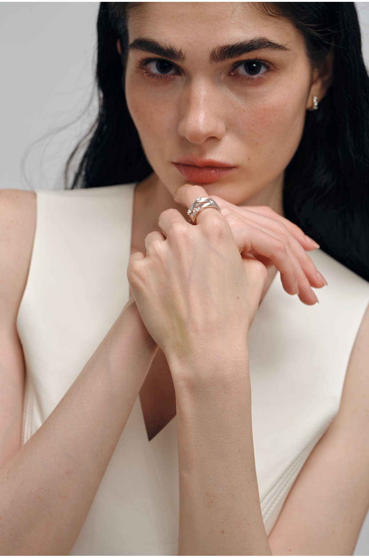 Gem Code Salt and Sea Ripple Series 925 Silver Gold-Plated Double Circle Ring, Simple and Versatile for Everyday Wear