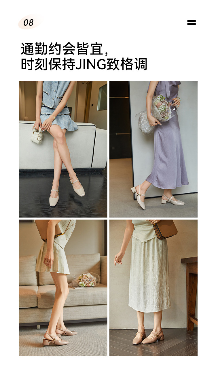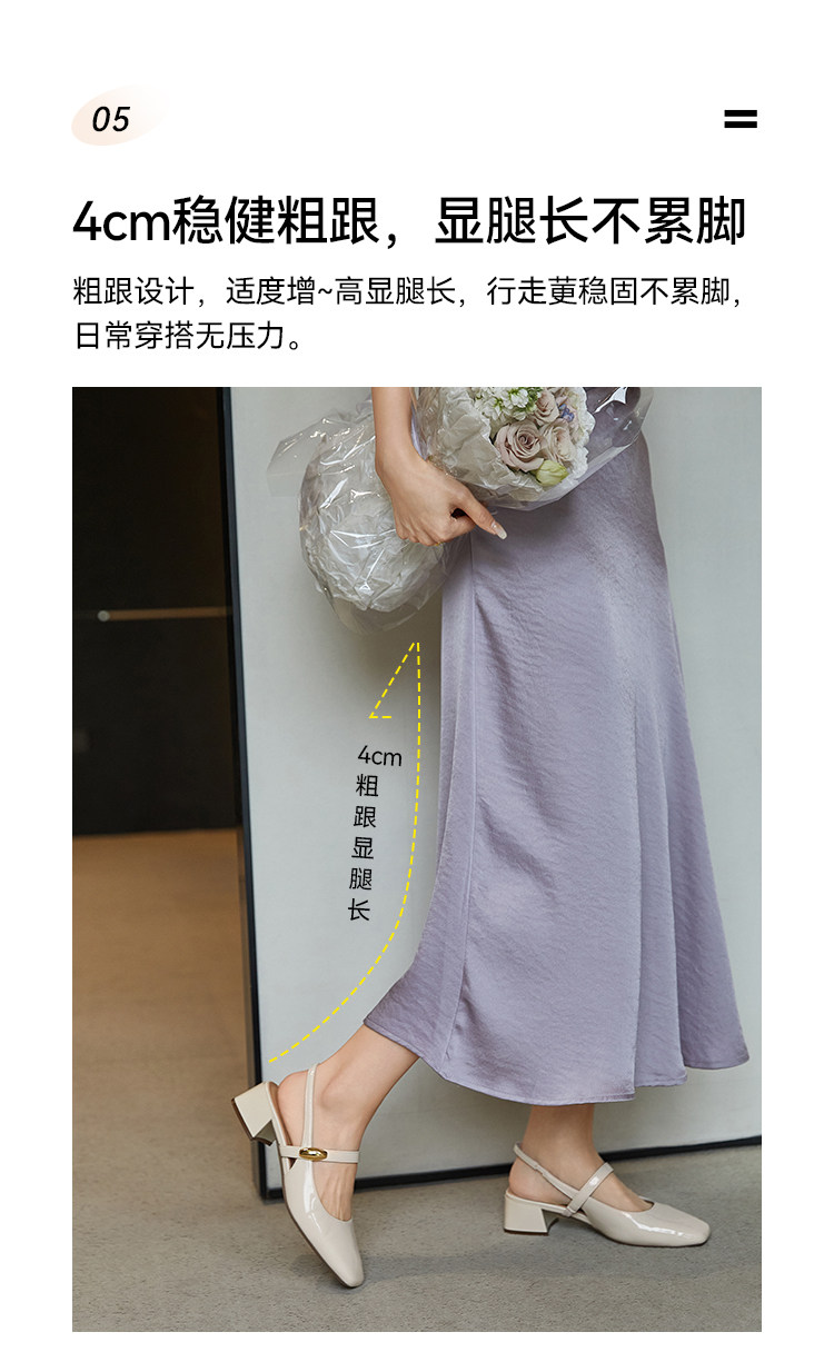 【Wang Xiaodu】Commuting Little Golden Bean ● Square Toe Backless Sandals for Women 2026 Summer Chunky Heel Mary Jane Shoes
