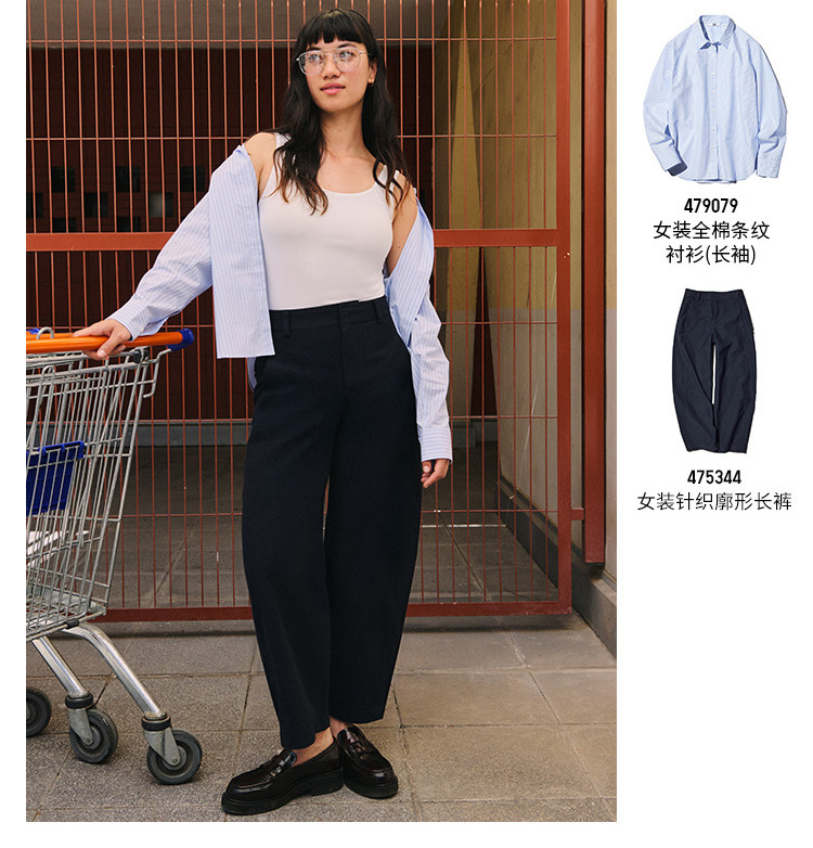 Uniqlo Women's Cotton Striped Shirt/Long-Sleeved Shirt Thin Jacket 25 Autumn and Winter New Style 479079