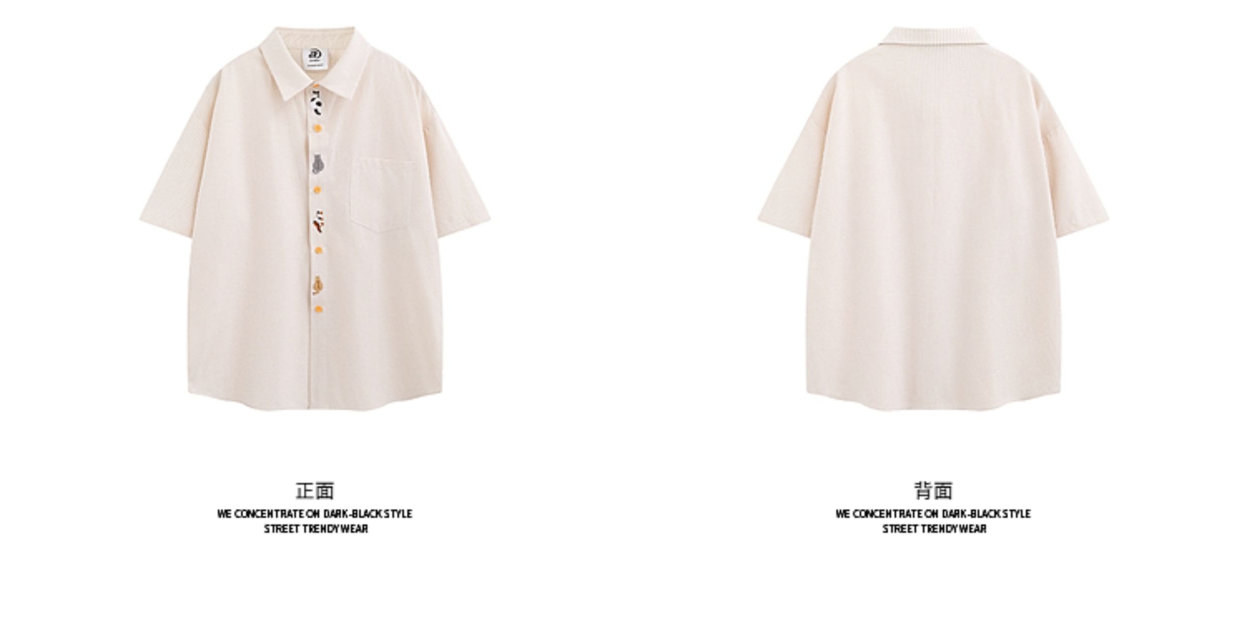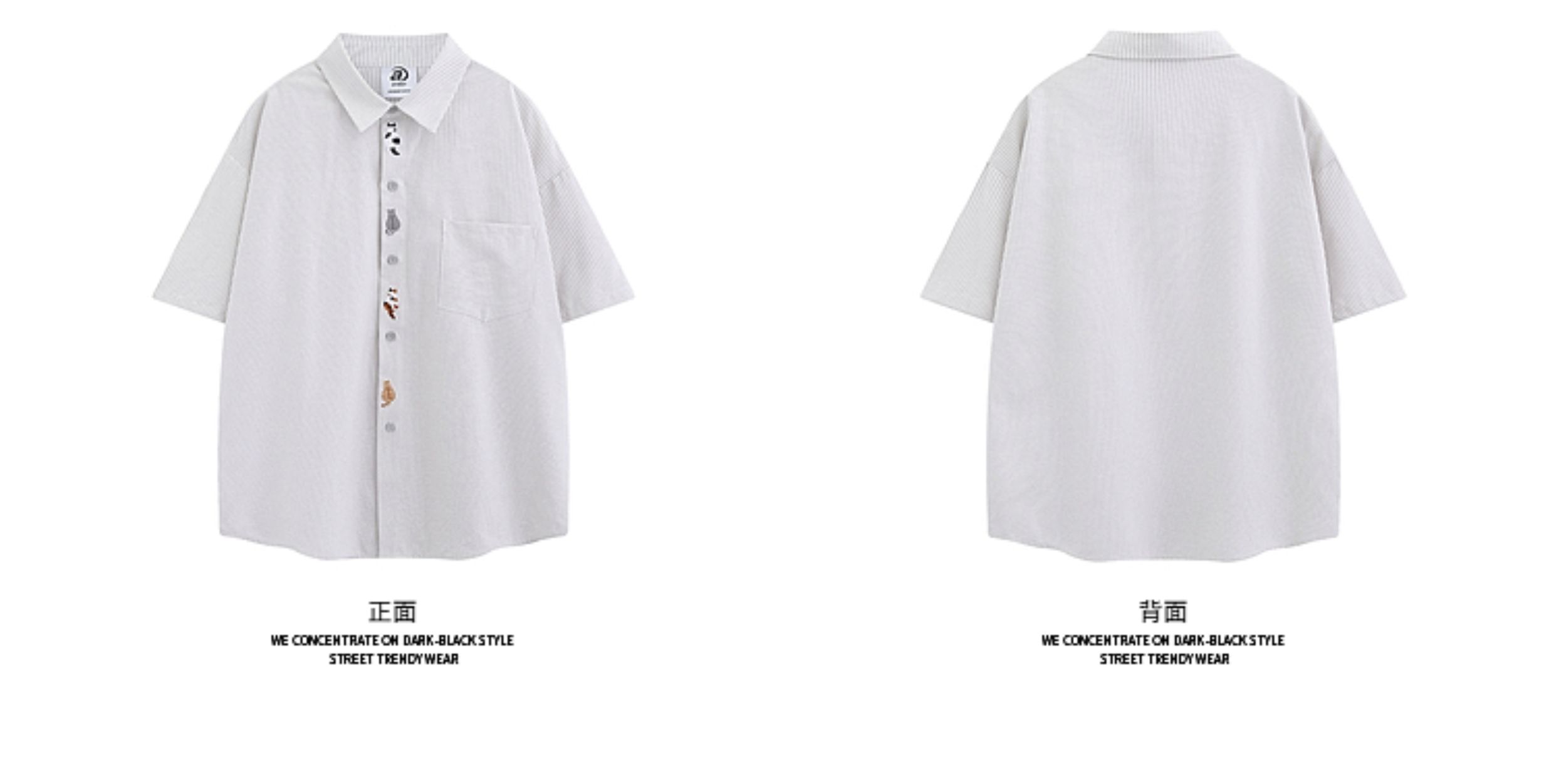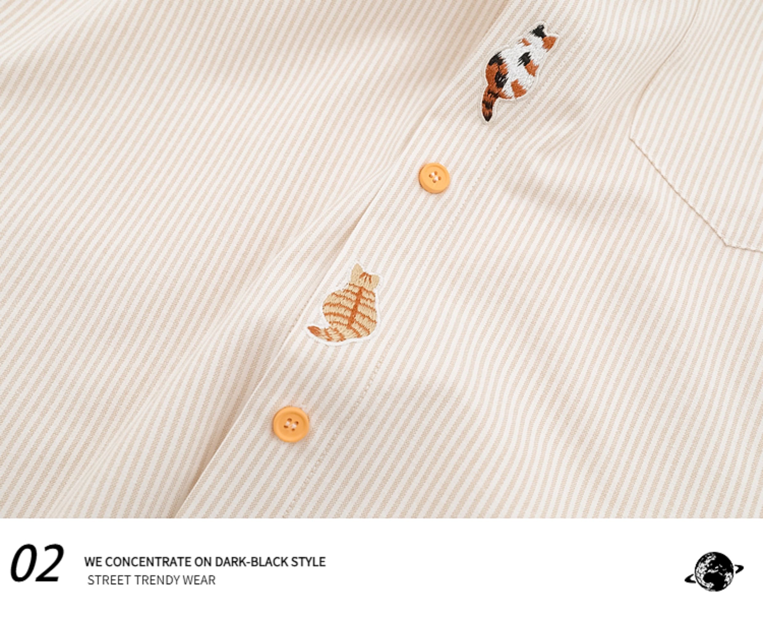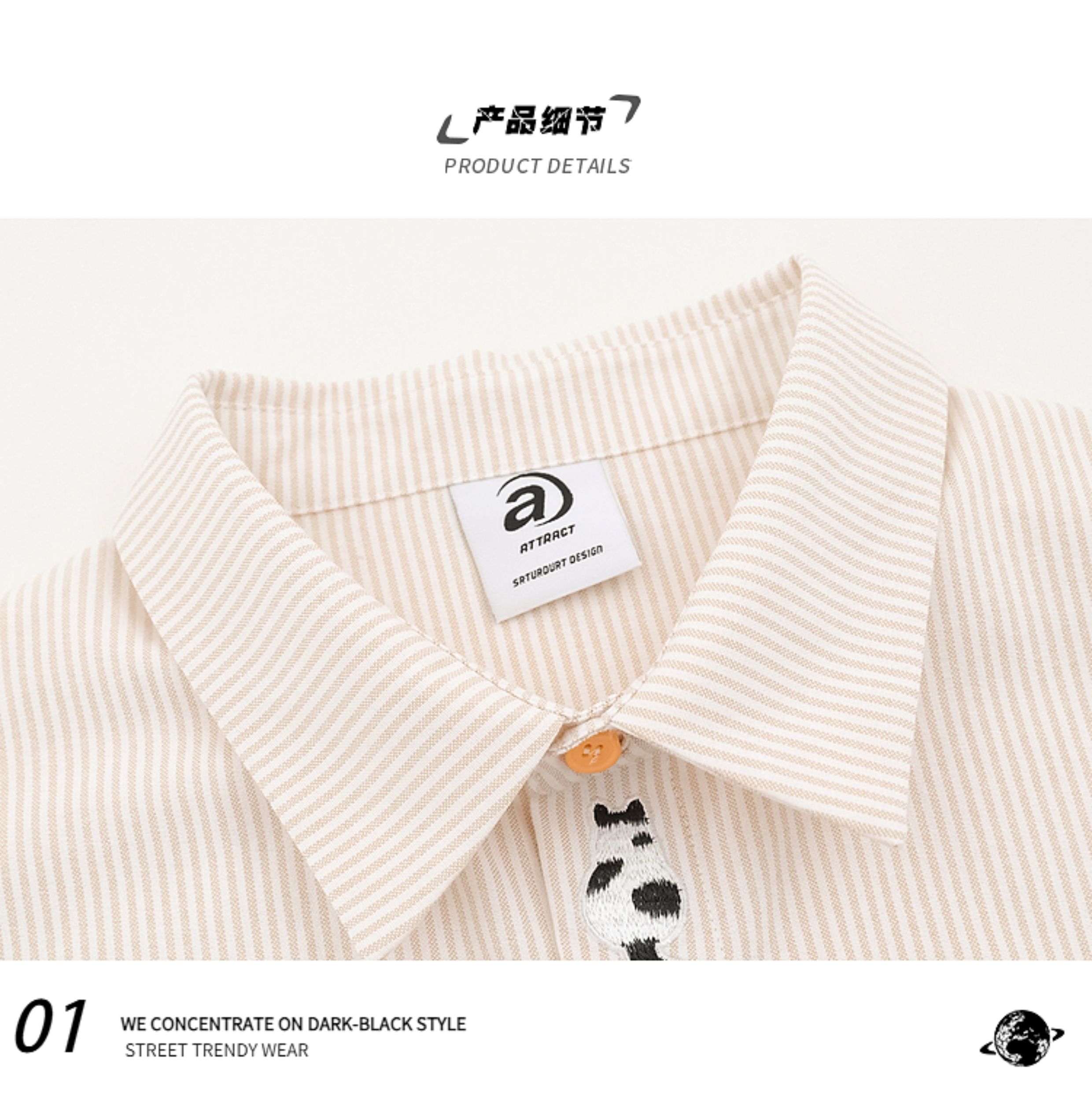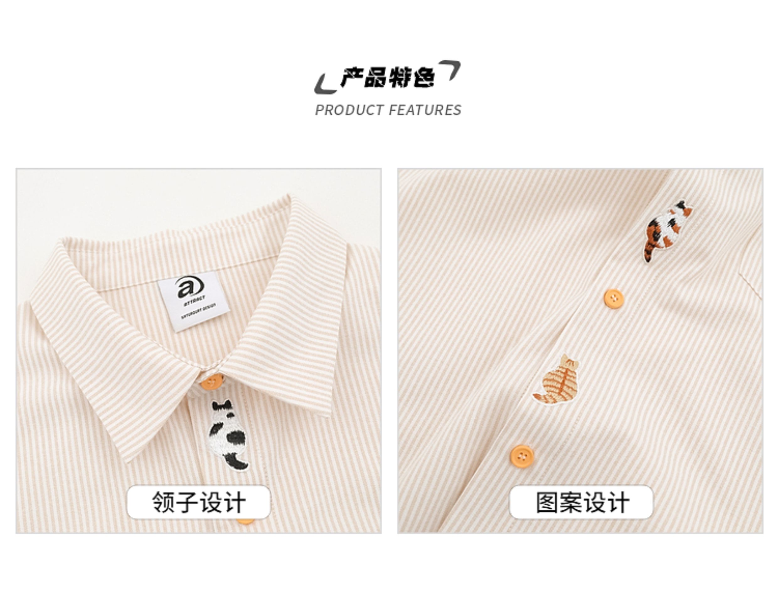 Japanese-Style Fun Cat Embroidery Short-Sleeve Polo Shirt for Women, Summer Loose Fit, Bf Lazy Style, Couple's Versatile Striped Shirt