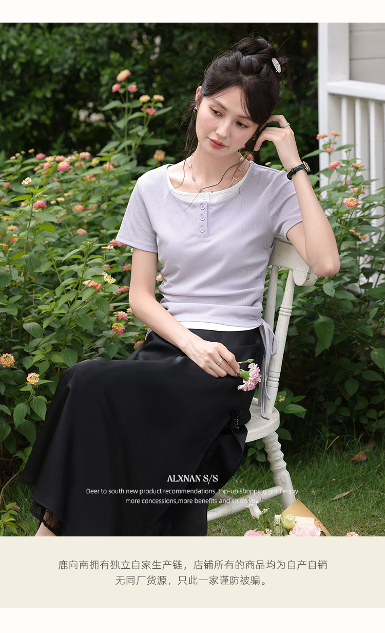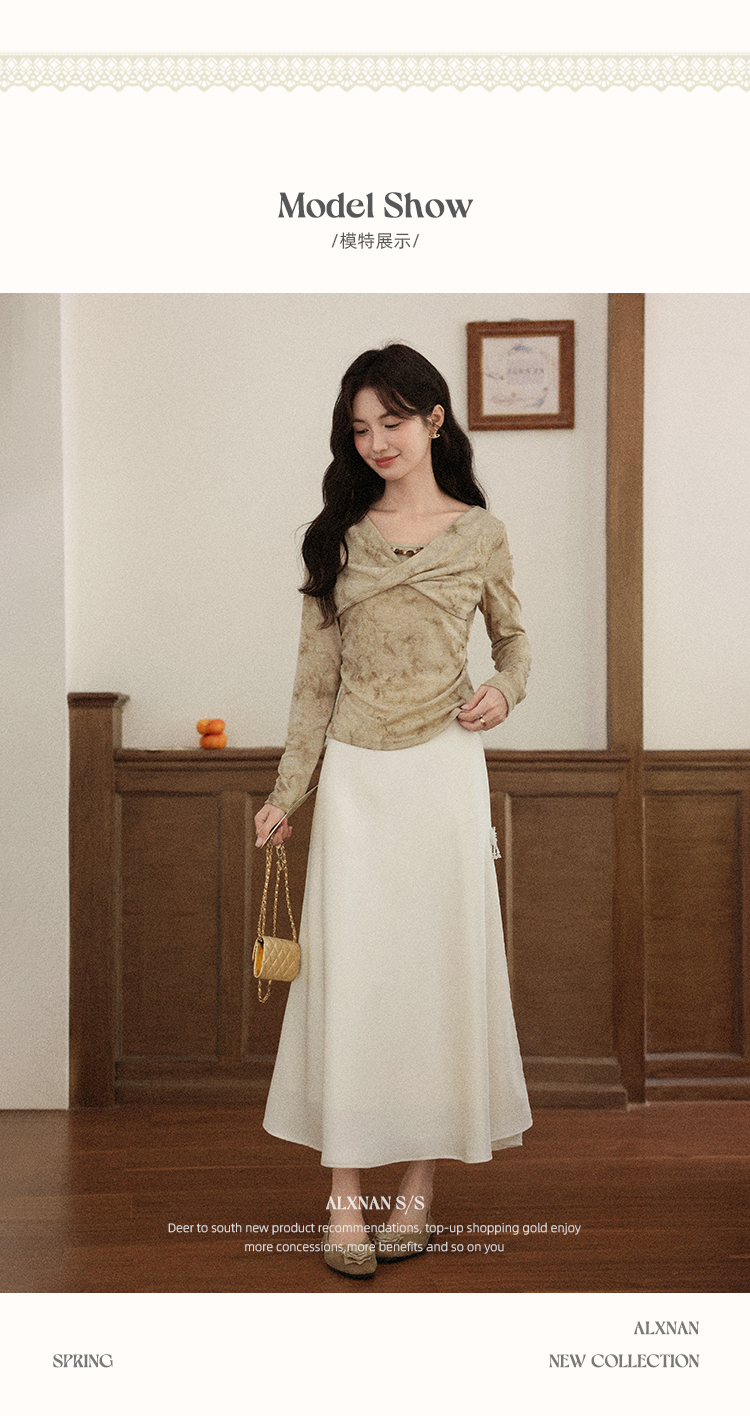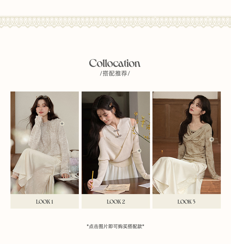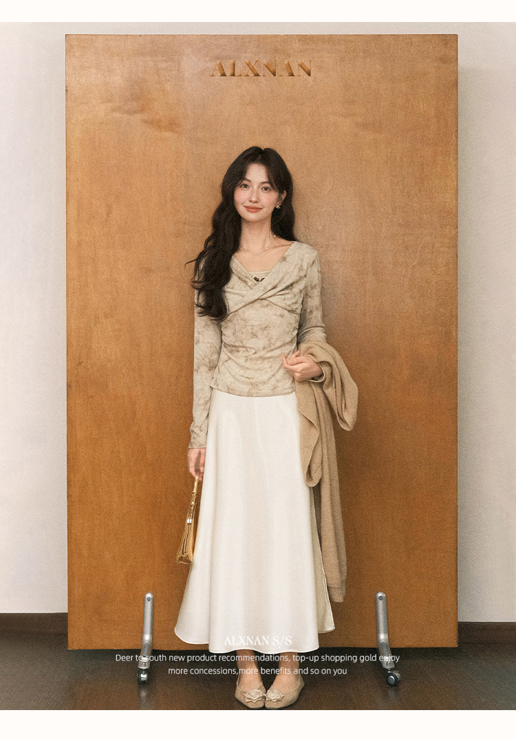 Lu Xiangnan's "Moonlight Dyeing" Apricot-Colored French-Style Skirt for Women, Autumn Satin Skirt with Elegant Lace Splicing