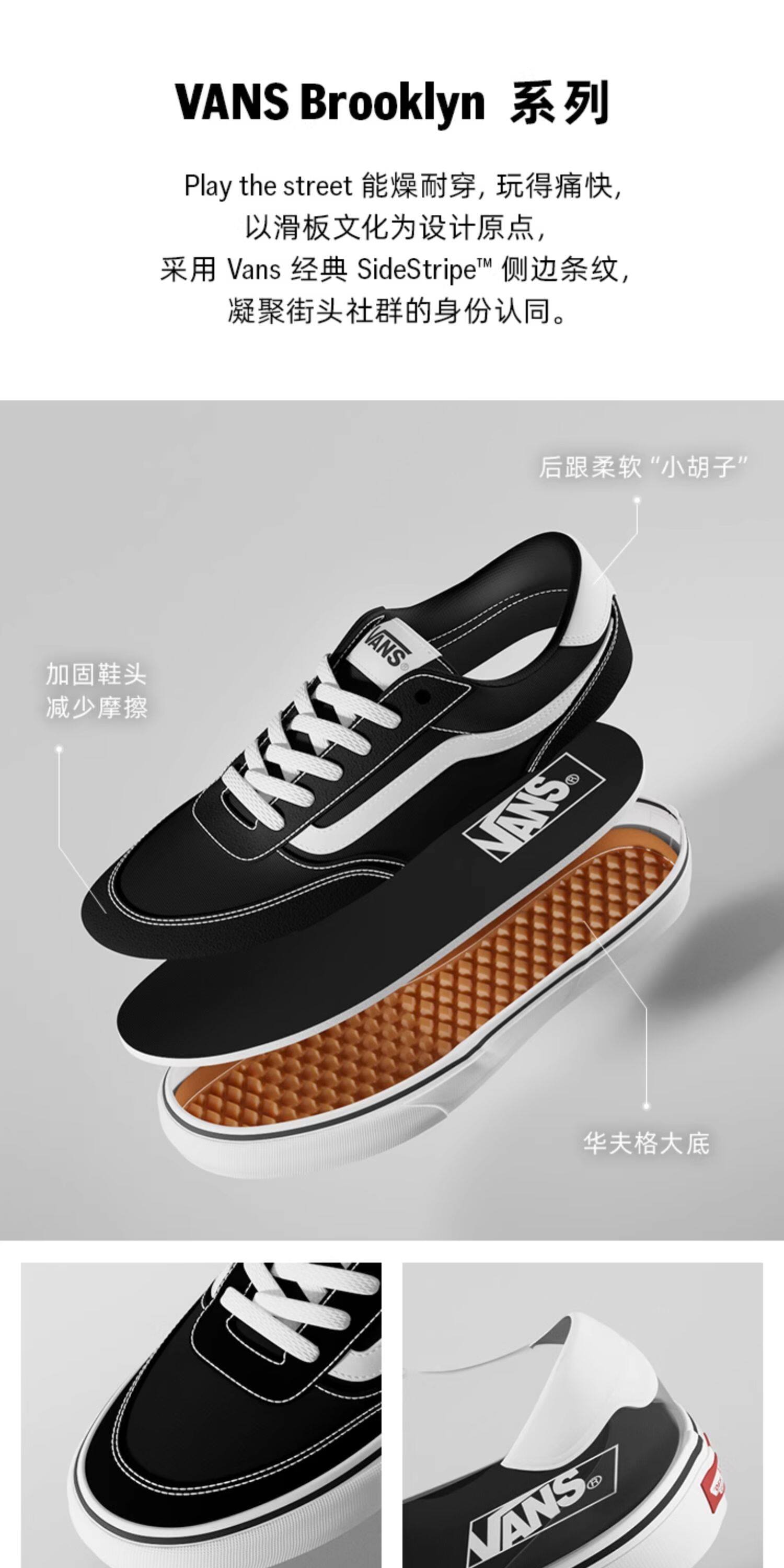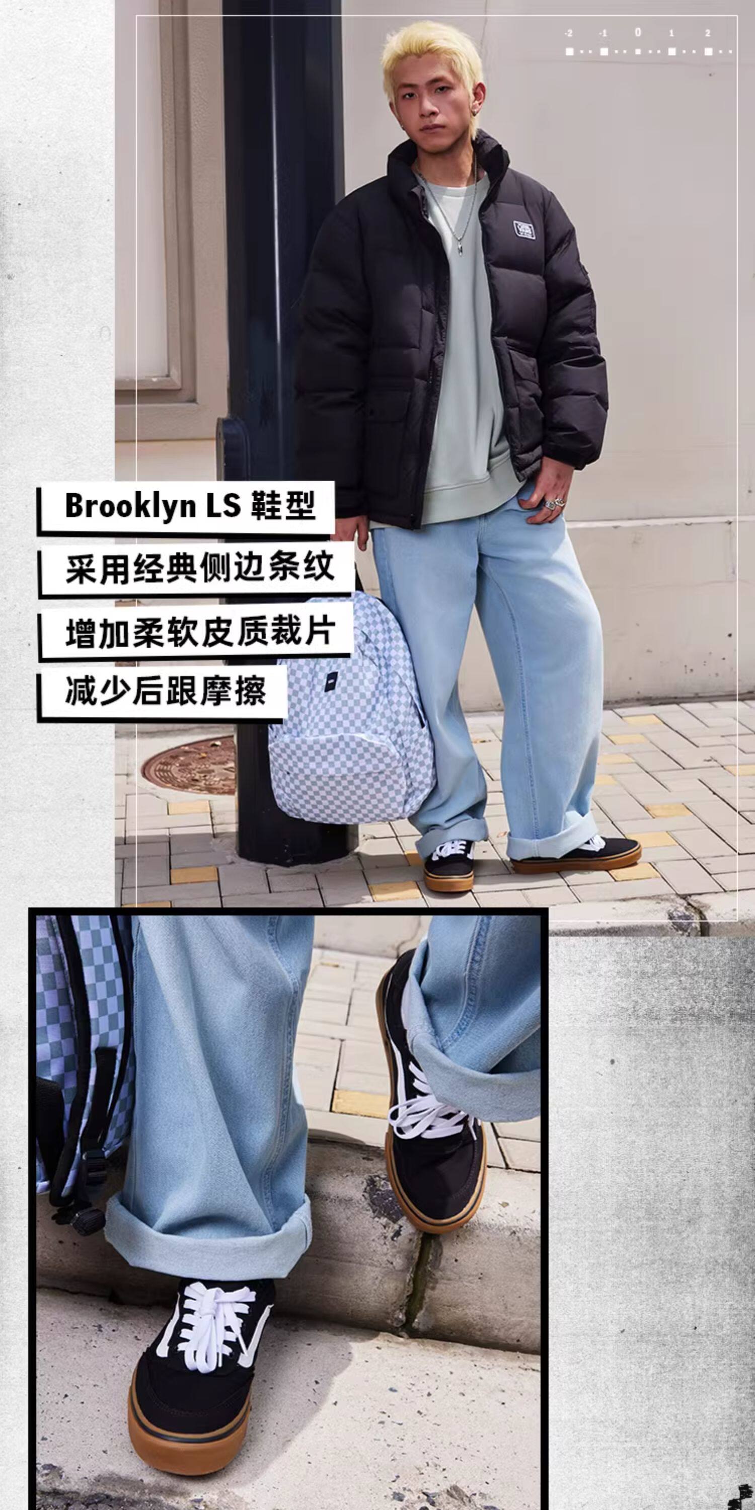 Vans Official Brooklyn Ls Black Rubber Sole Simple Retro Men's Canvas Shoes