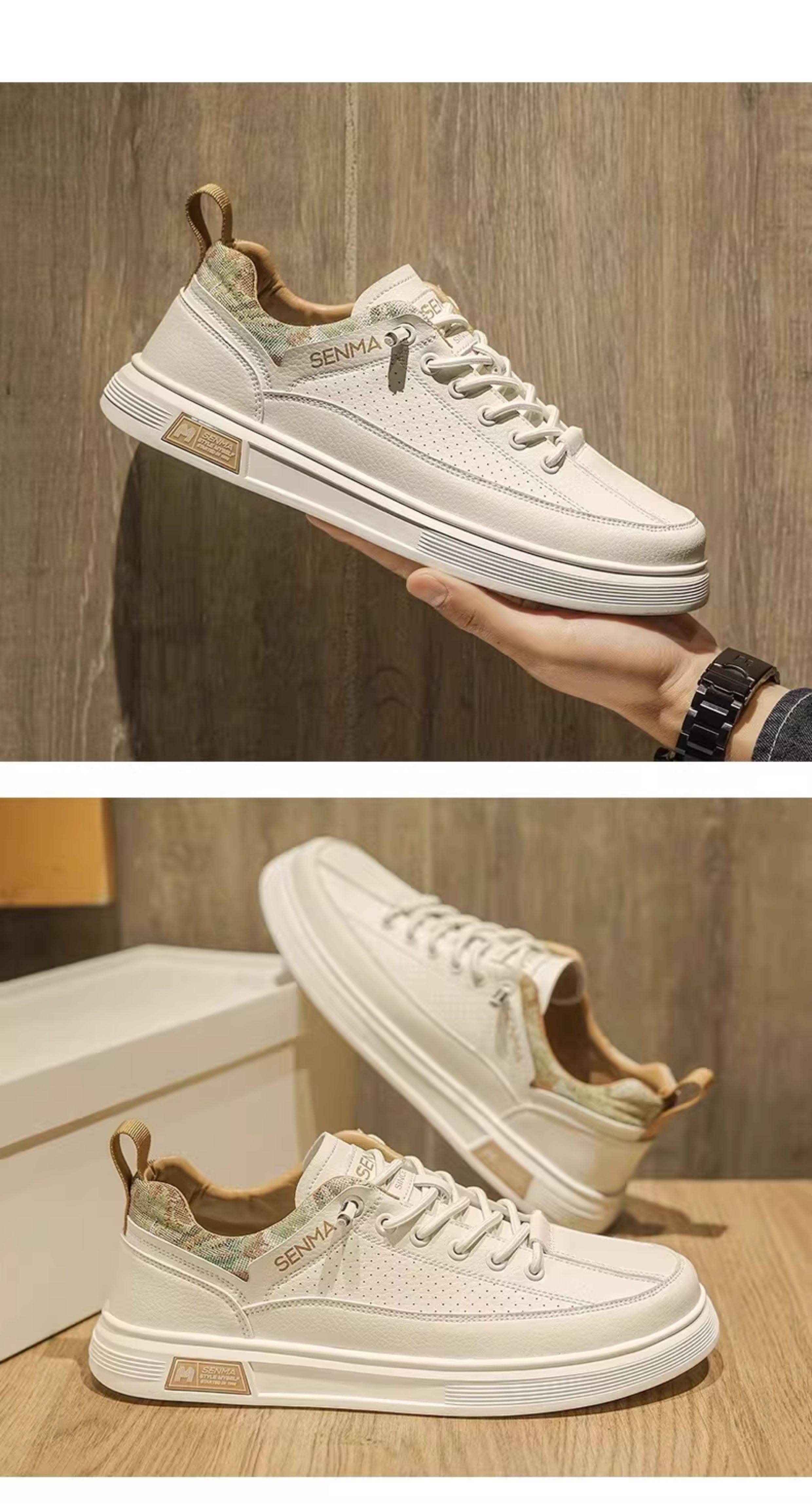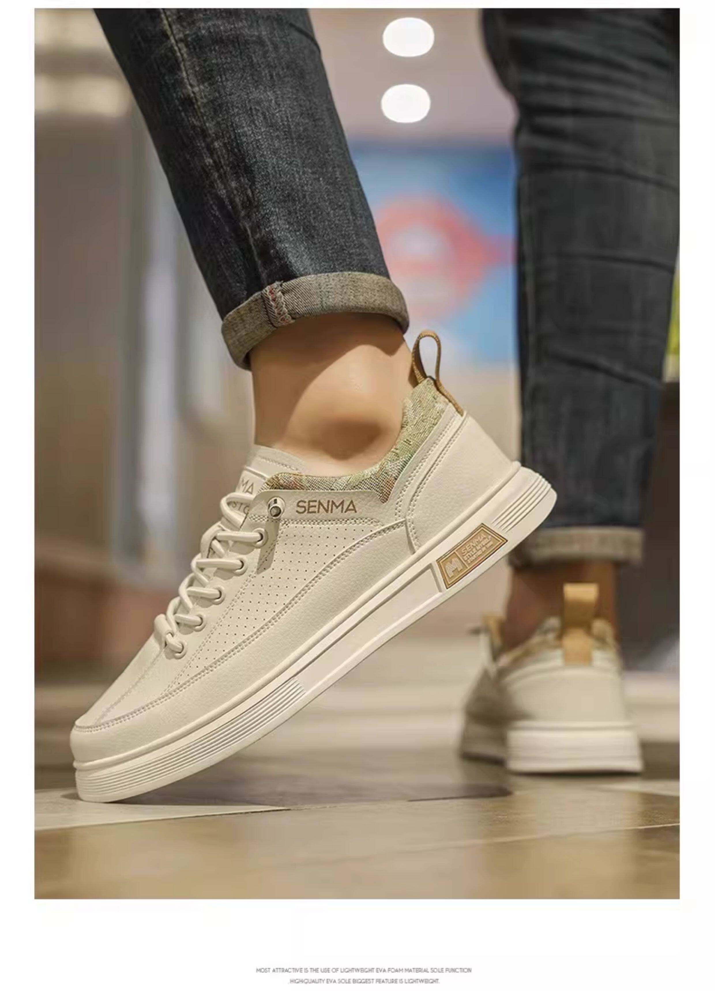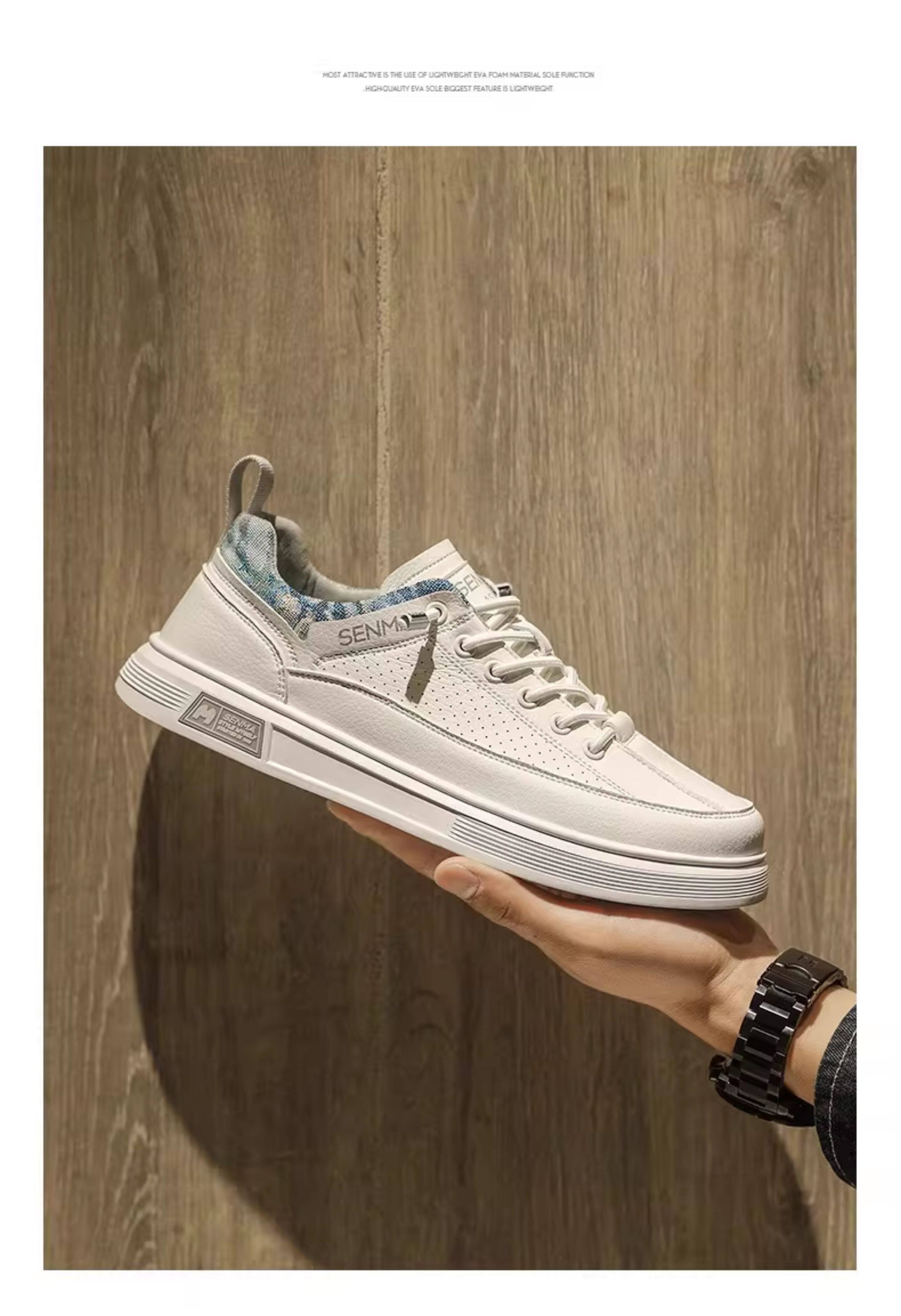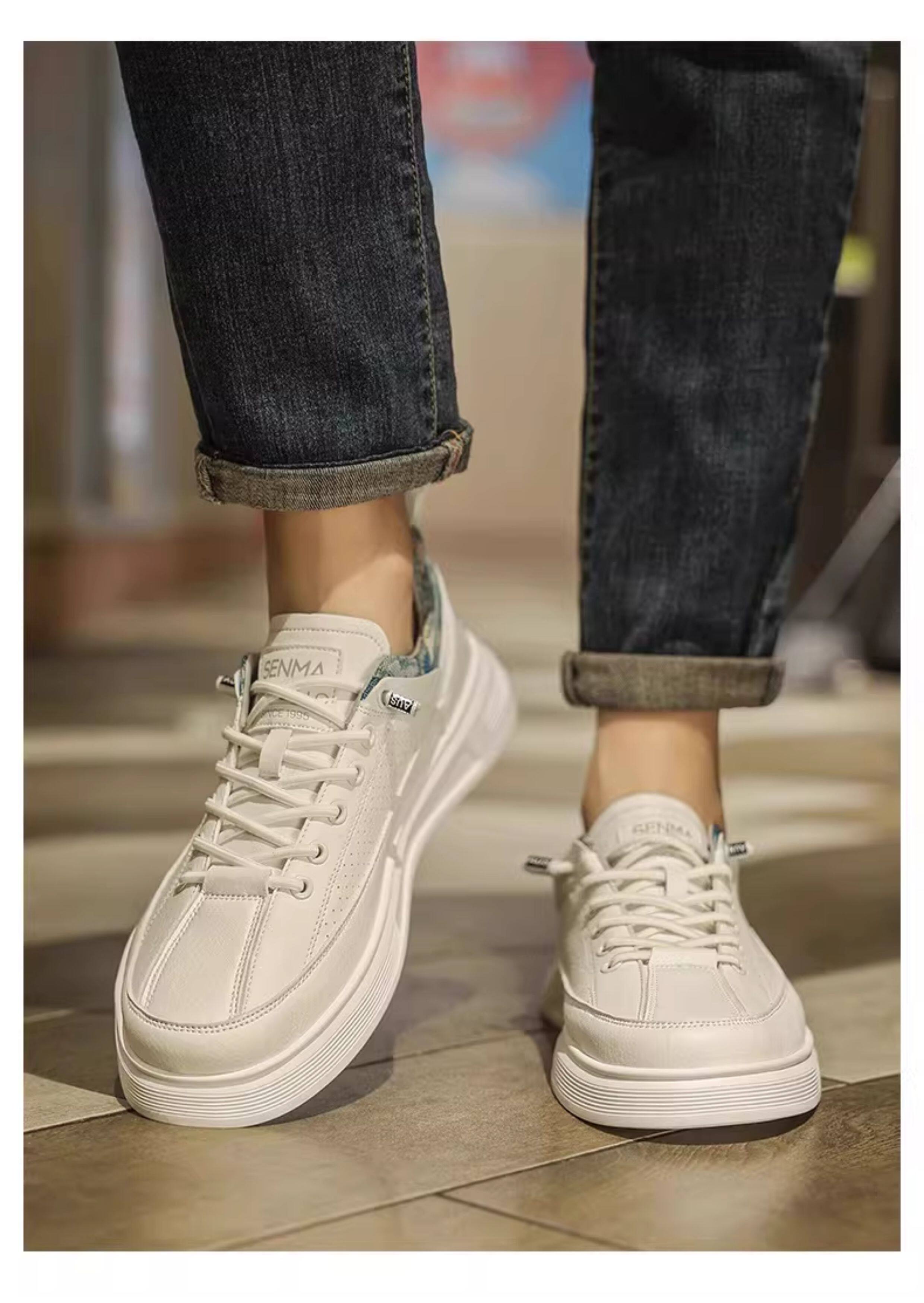 Semir Men's Shoes, Summer Breathable Versatile Sports Casual Sneakers, Men's Slip-On Leather Shoes, Soft Sole Height-Increasing White Shoes