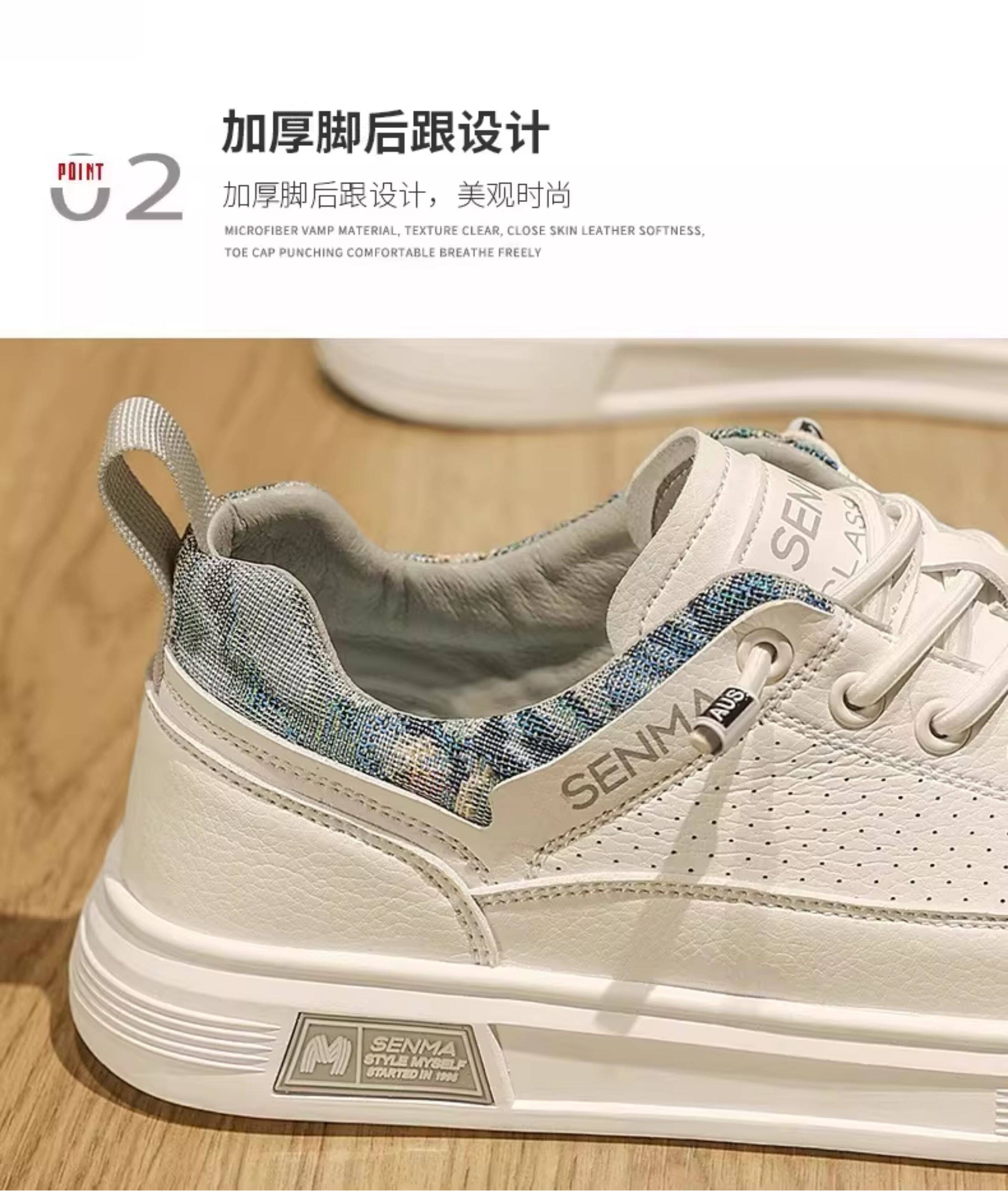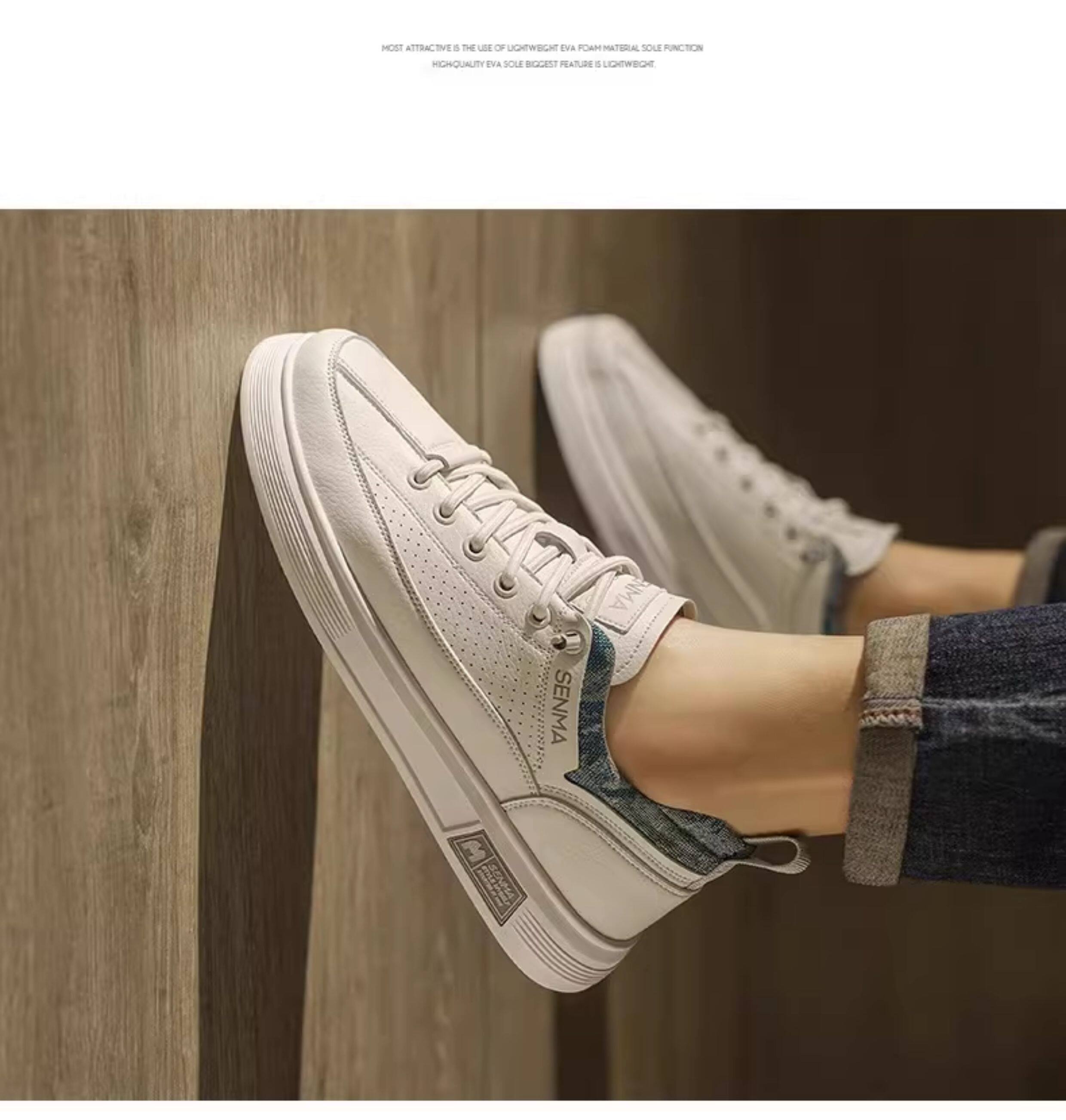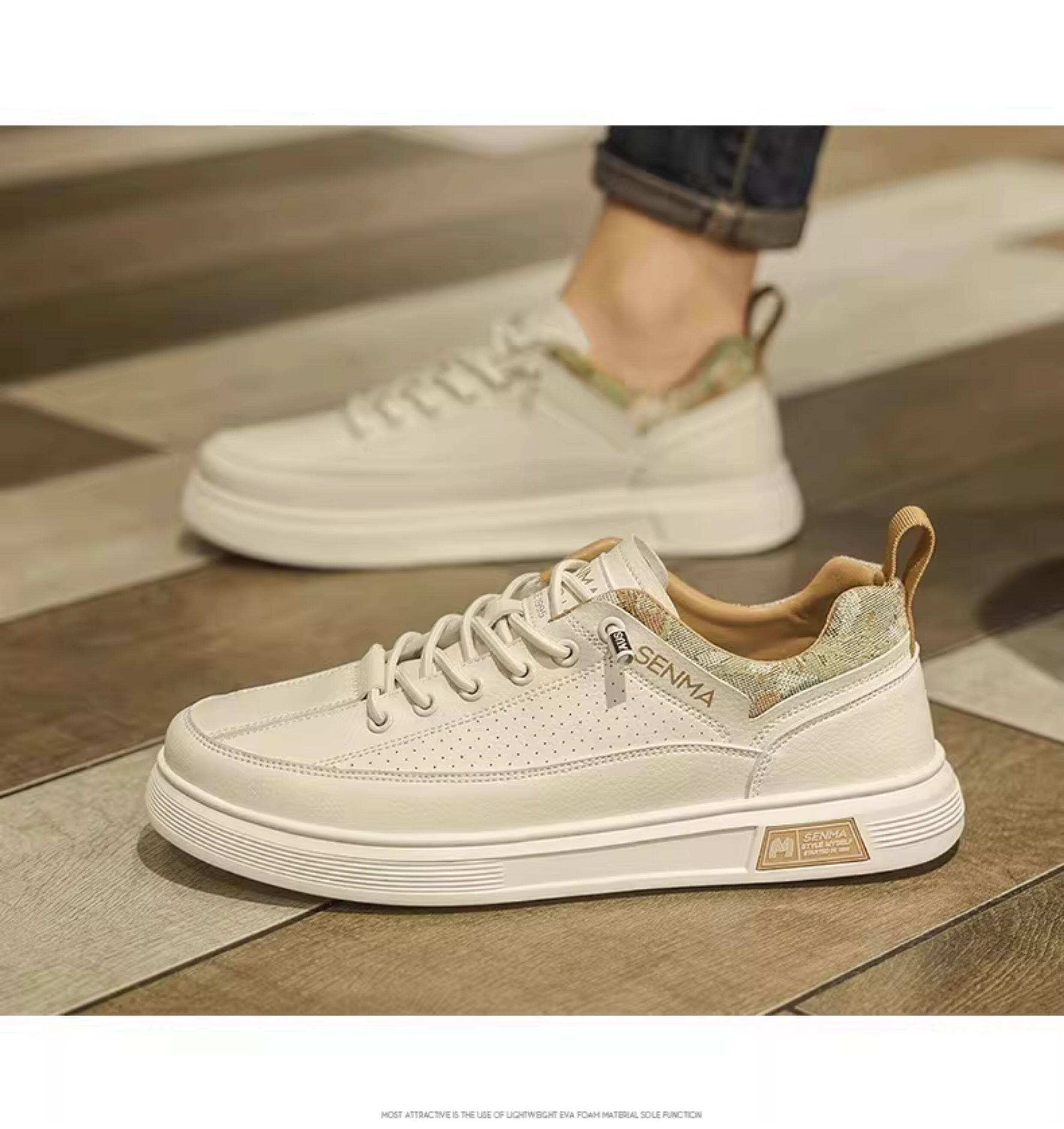 Semir Men's Shoes, Summer Breathable Versatile Sports Casual Sneakers, Men's Slip-On Leather Shoes, Soft Sole Height-Increasing White Shoes