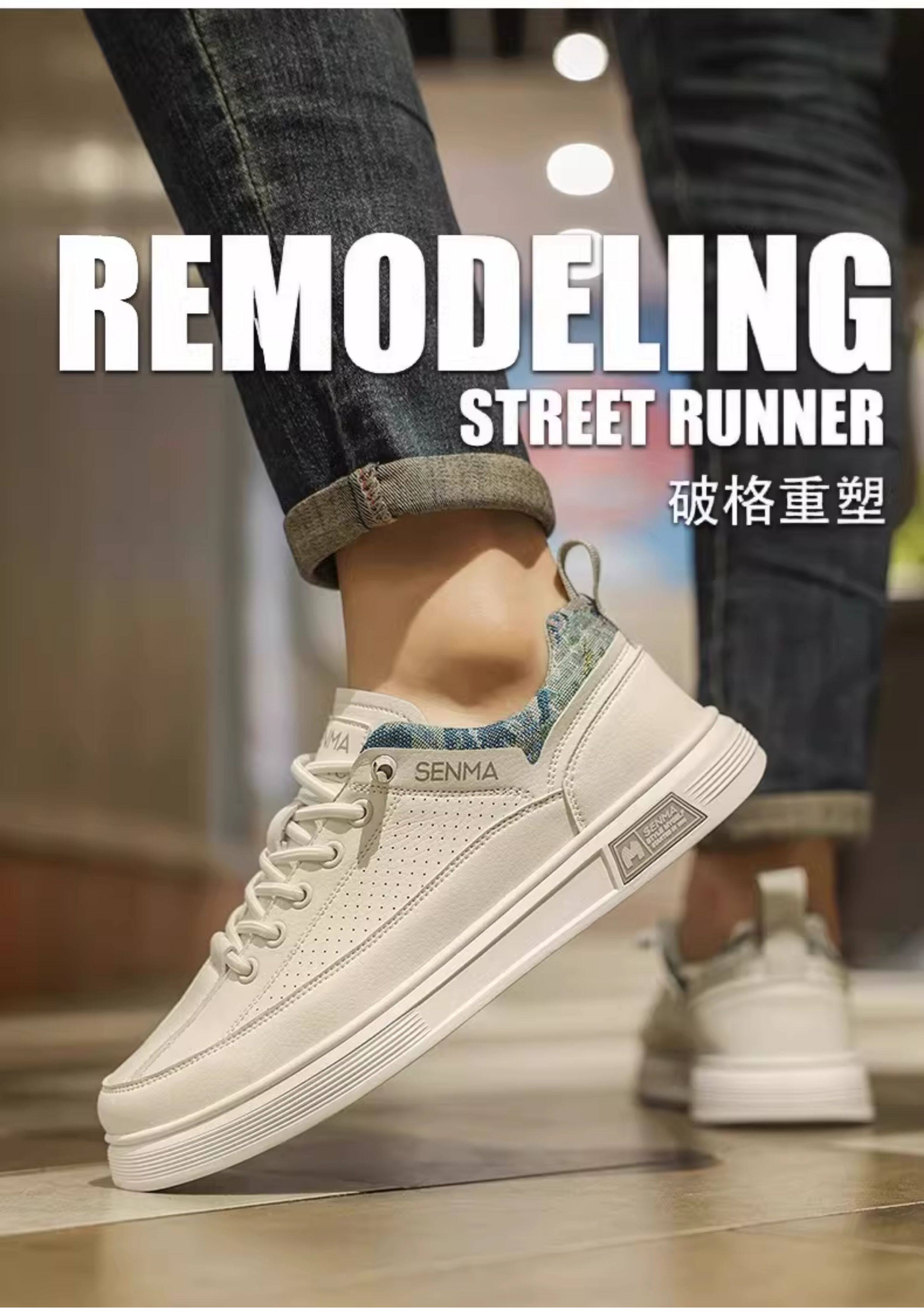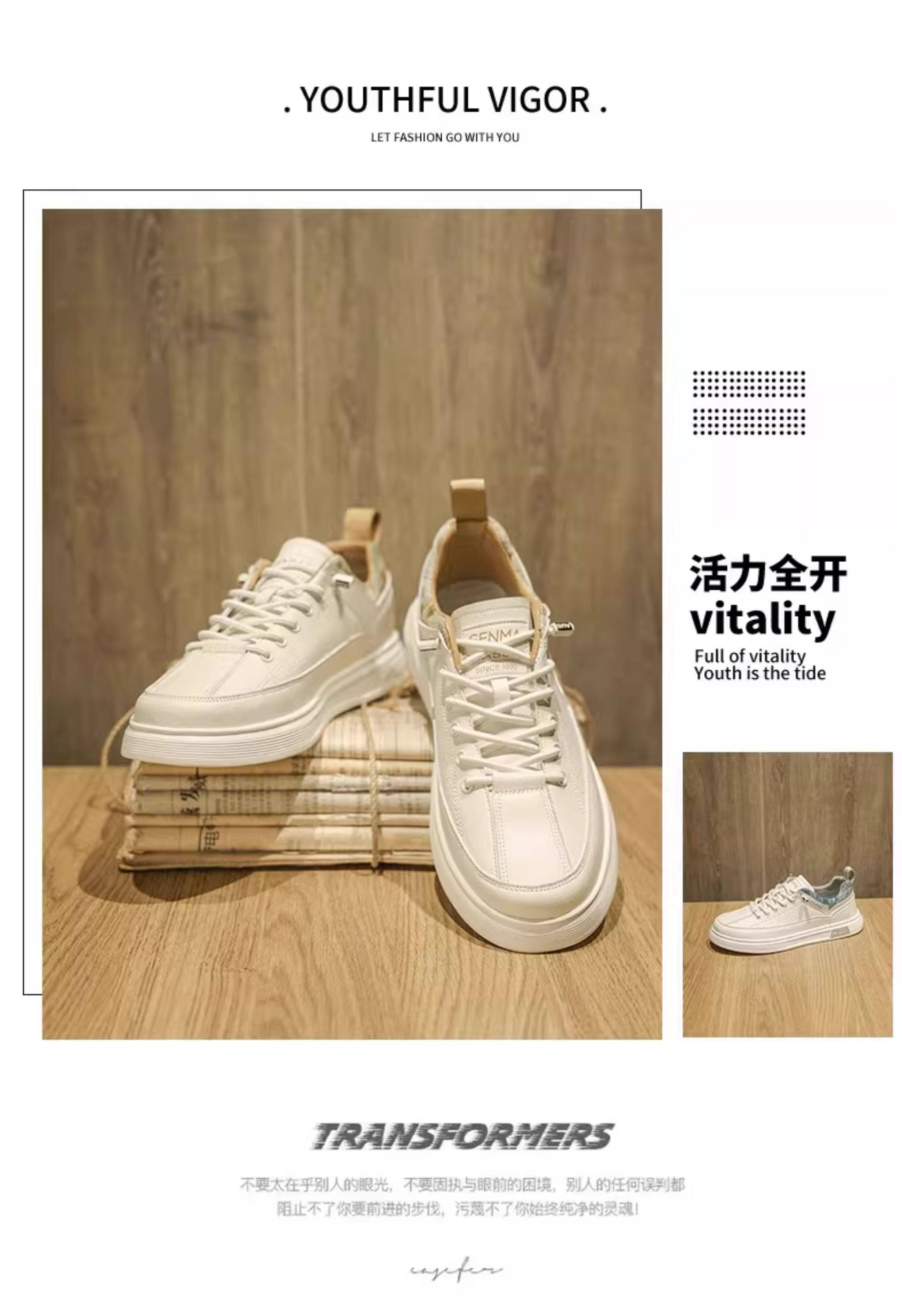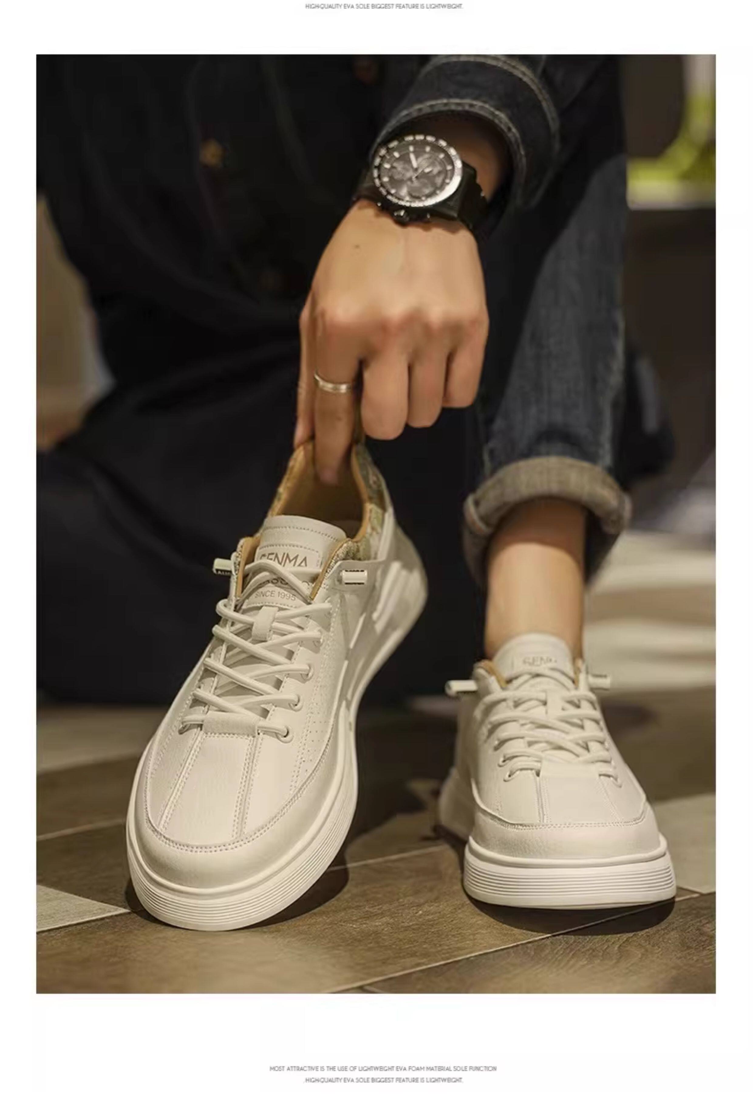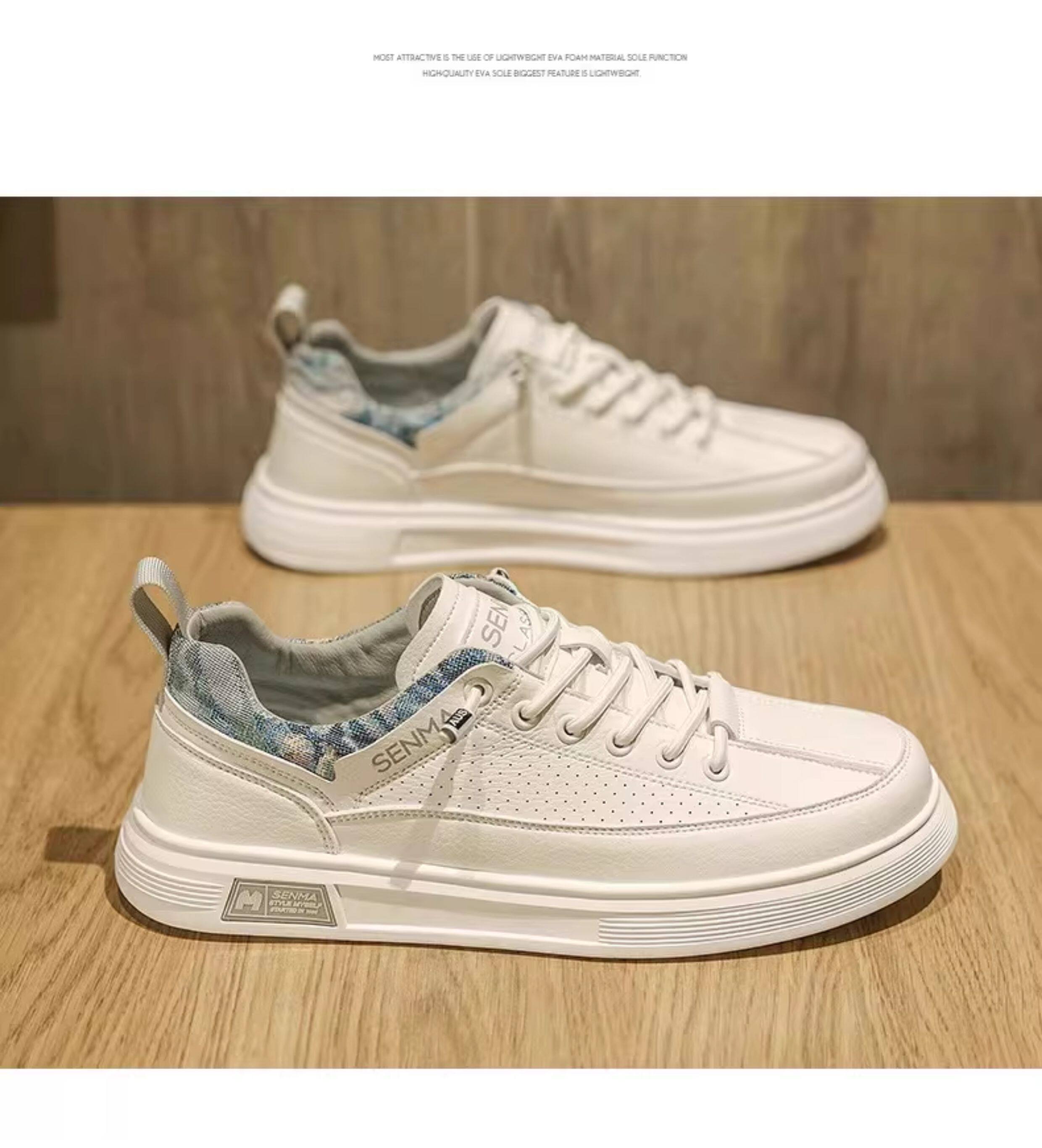 Semir Men's Shoes, Summer Breathable Versatile Sports Casual Sneakers, Men's Slip-On Leather Shoes, Soft Sole Height-Increasing White Shoes