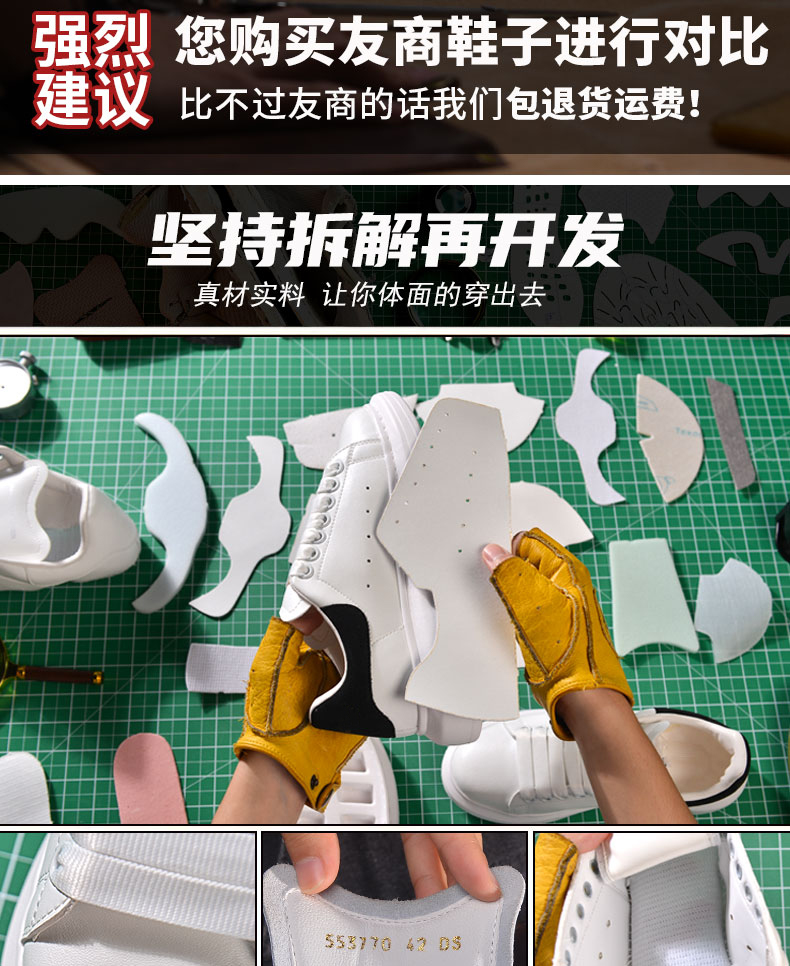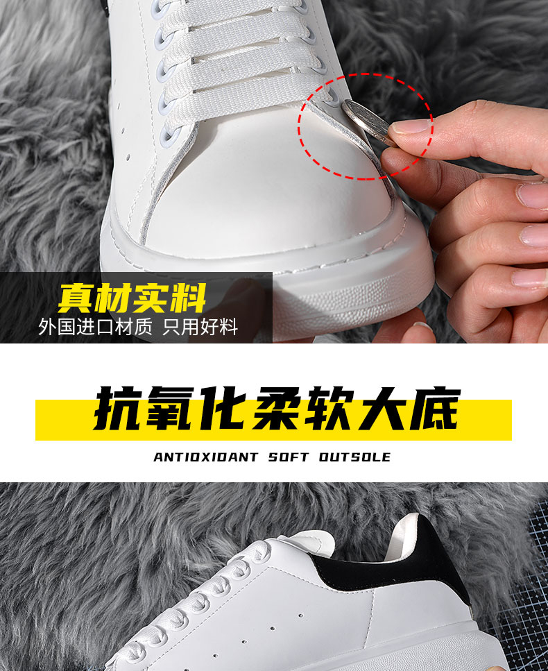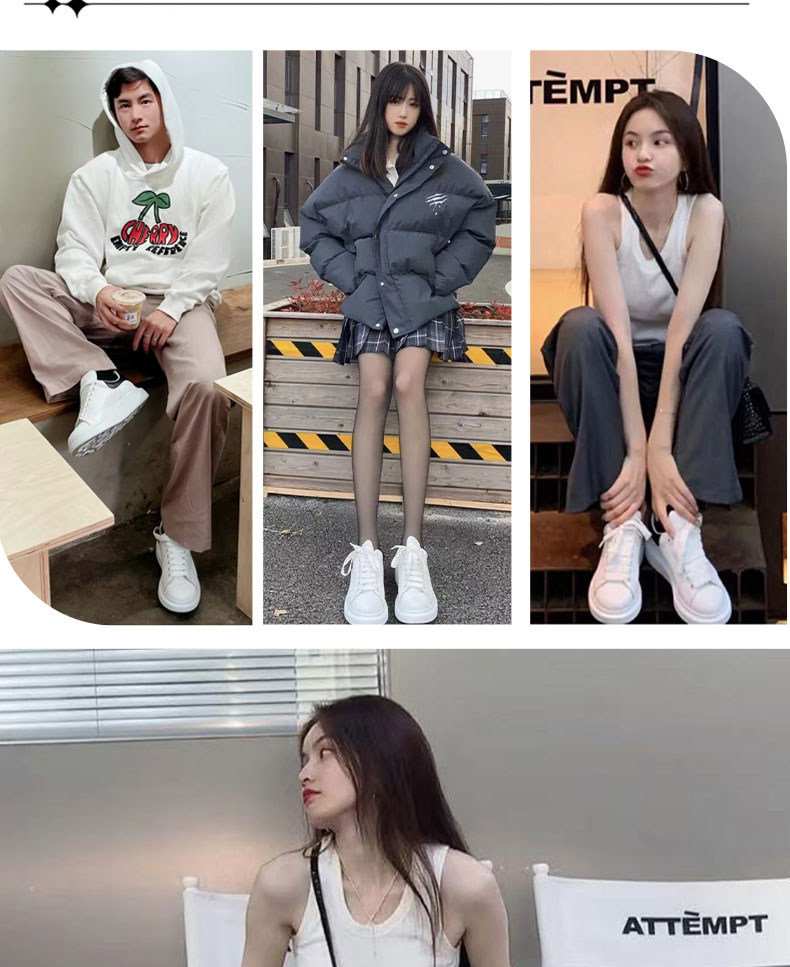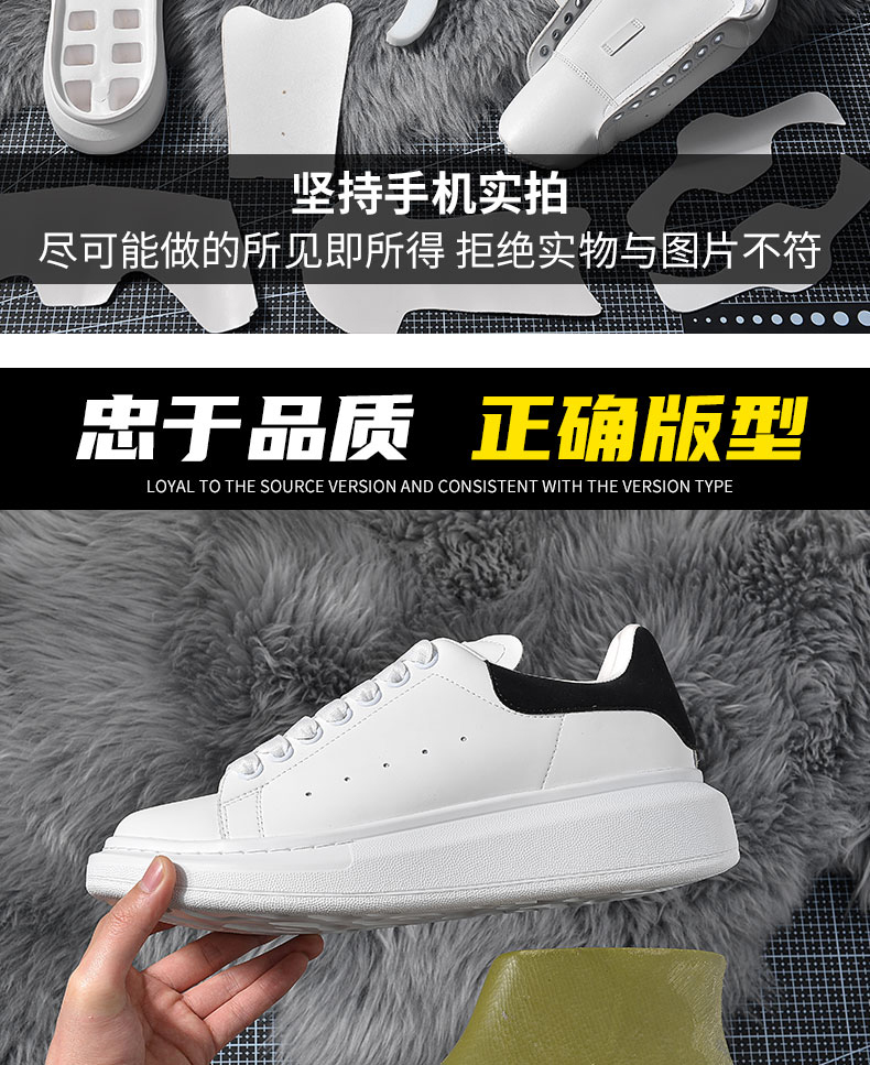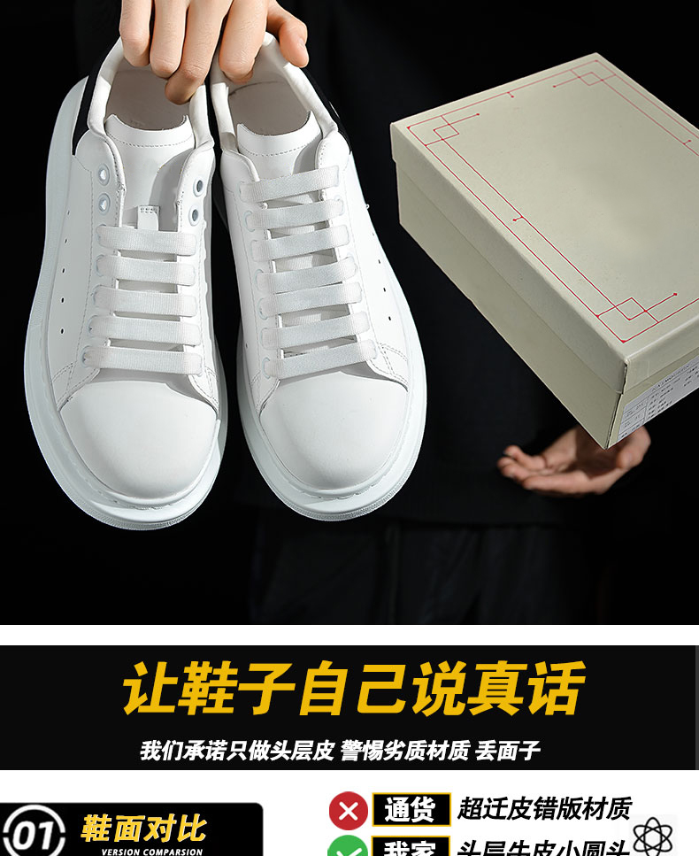 【High Quality】Mcqueen White Sneakers Versatile for Women Thick-Soled Height-Increasing 2025 Summer New Genuine Leather Popular Sneakers for Men