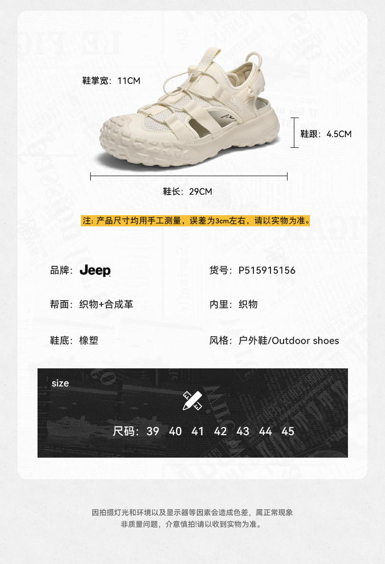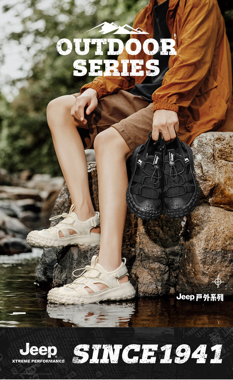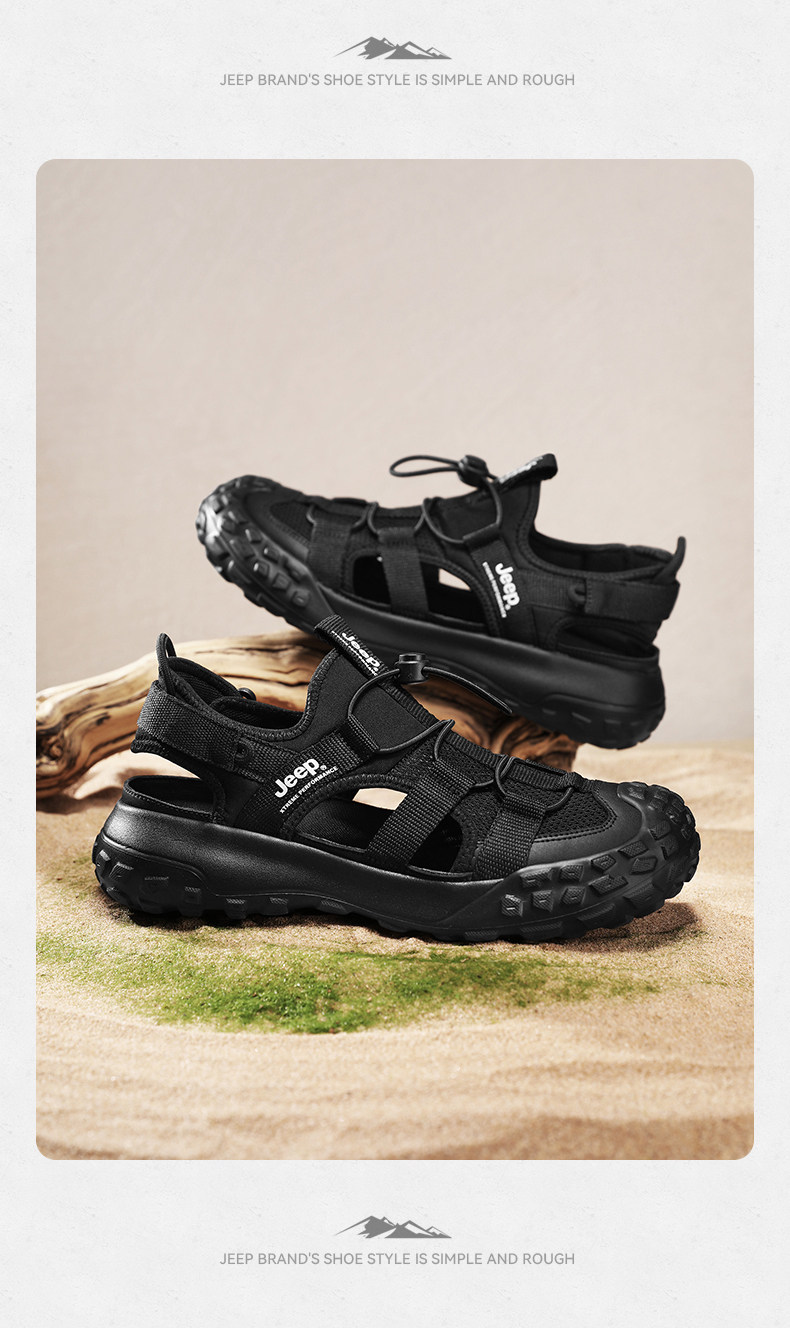 Jeep Jeep Sandals Summer New Outdoor Non-Slip Wear-Resistant Closed-Toe Beach Shoes Men's Casual Sports Trendy Shoes B