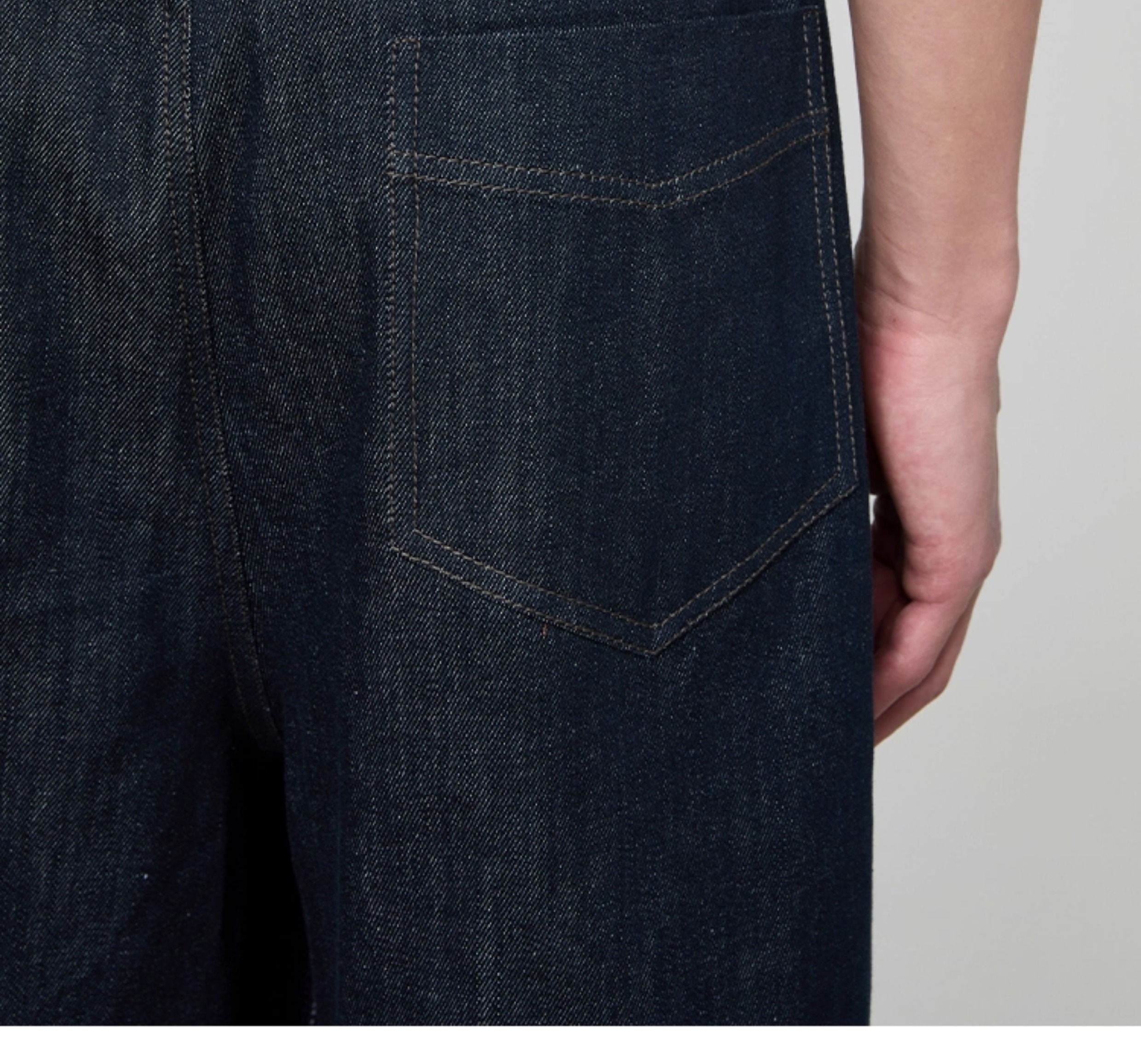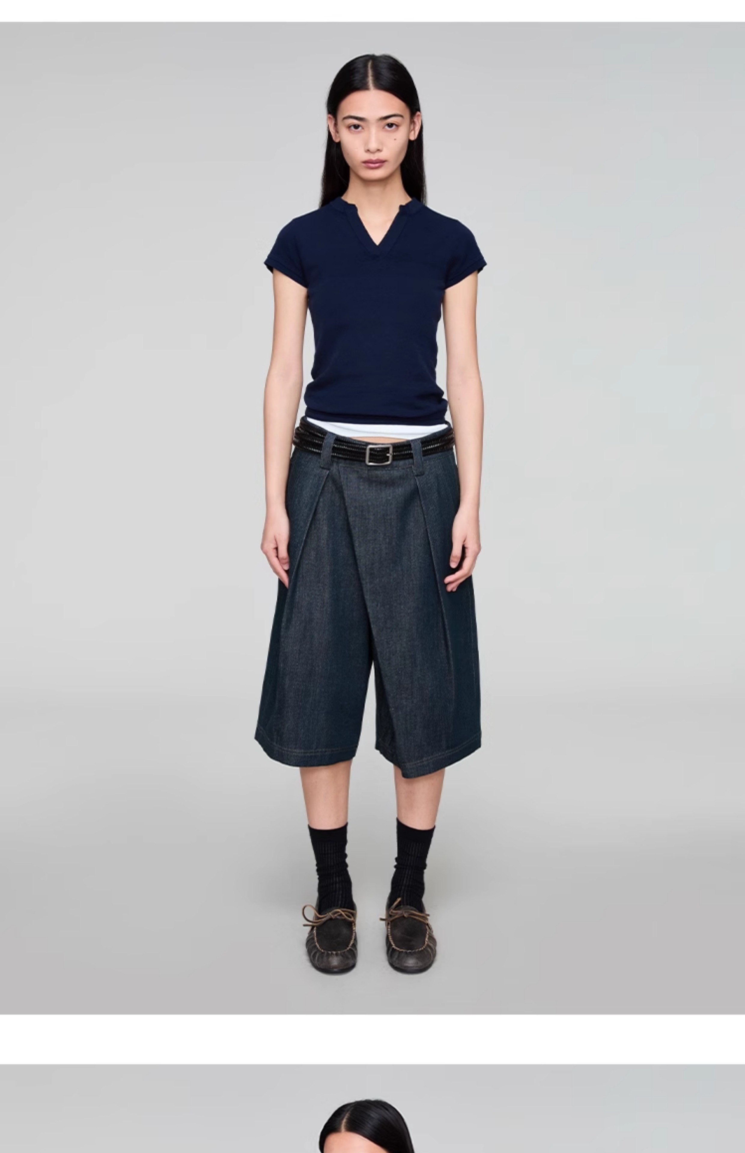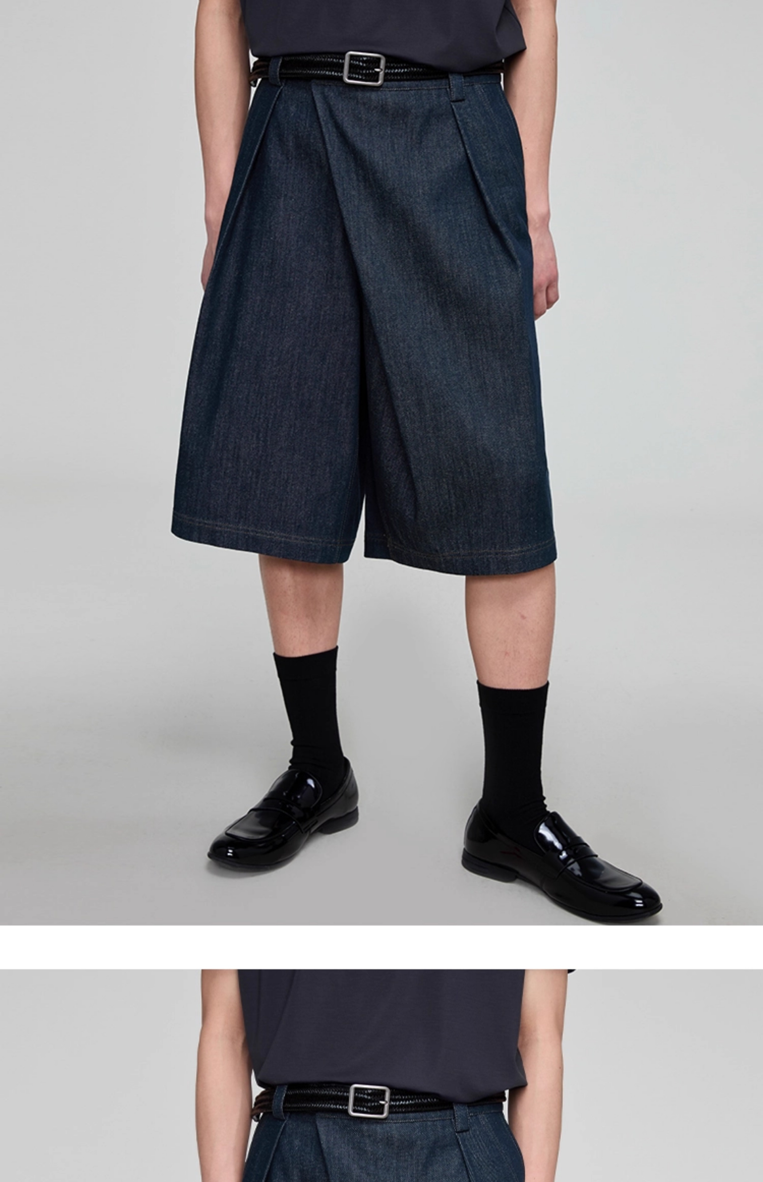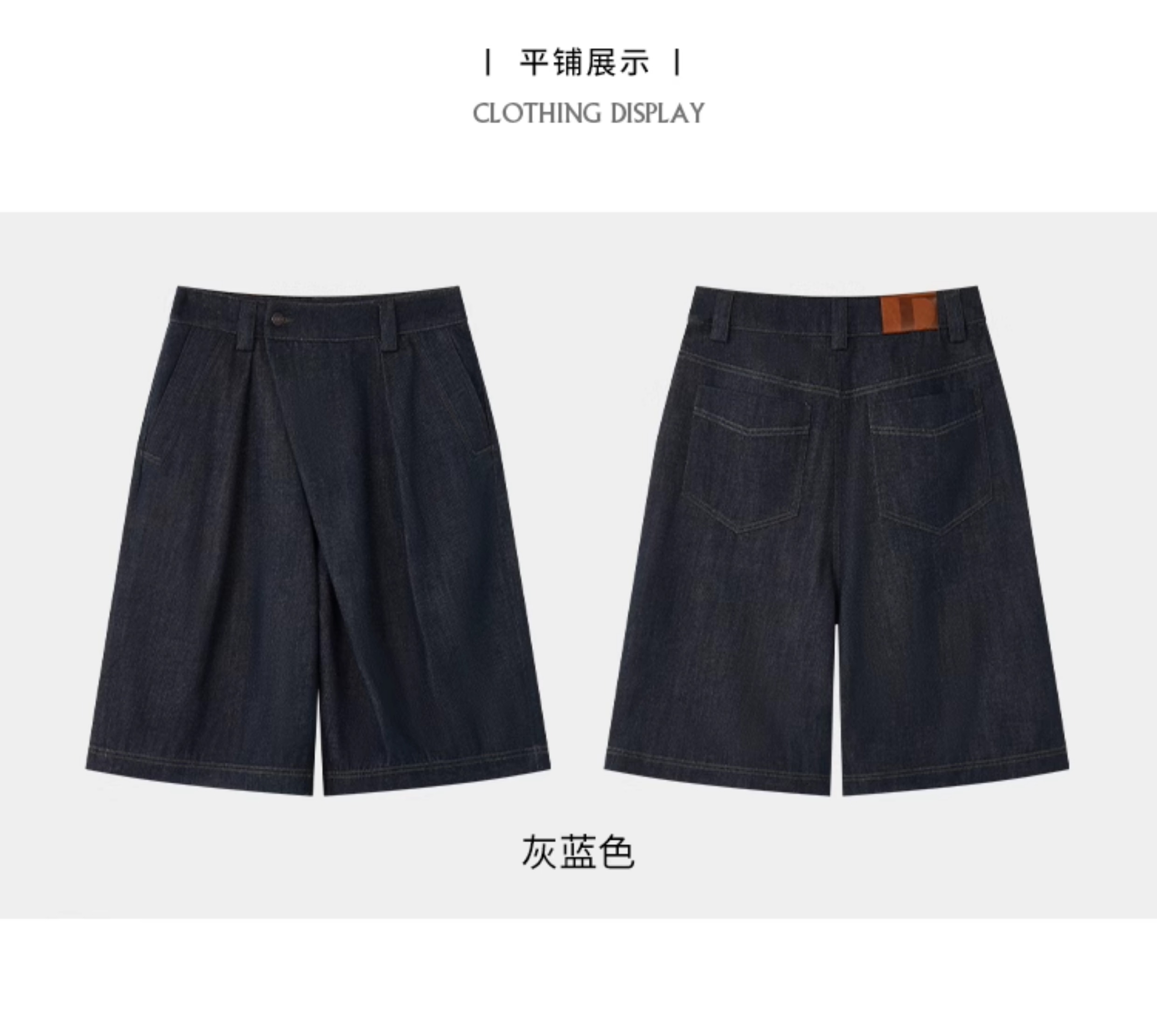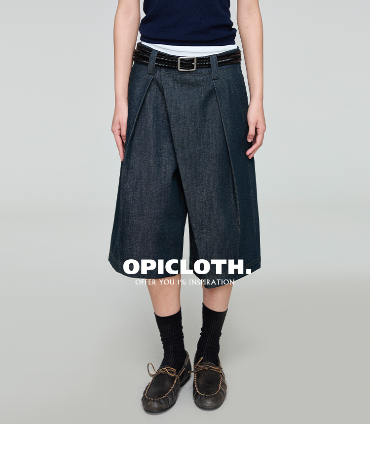 Opicloth/Opic 10.4oz Vintage Washed Diagonal Placket A-Line Loose Wide-Leg Denim Casual Six-Point Pants