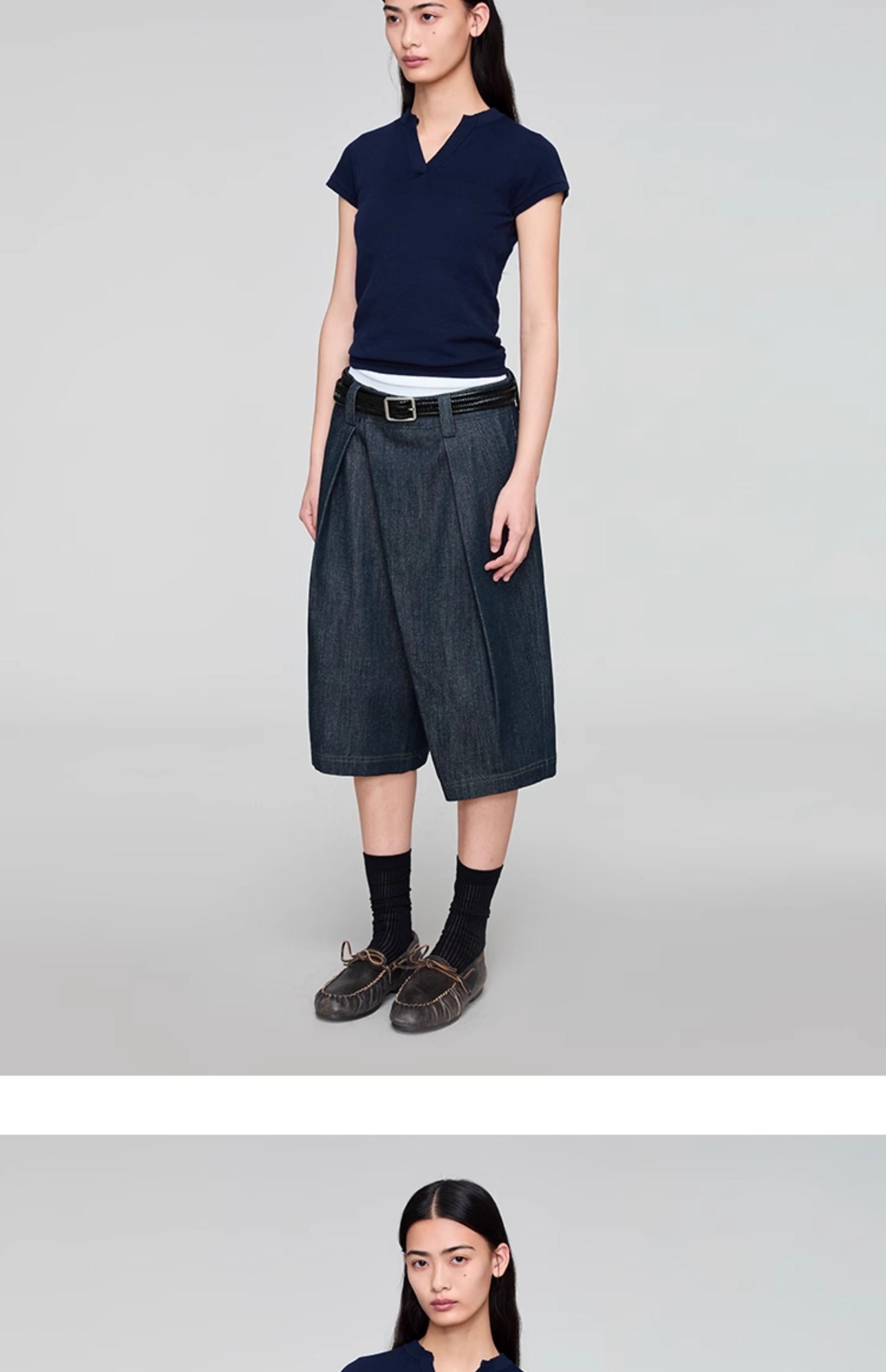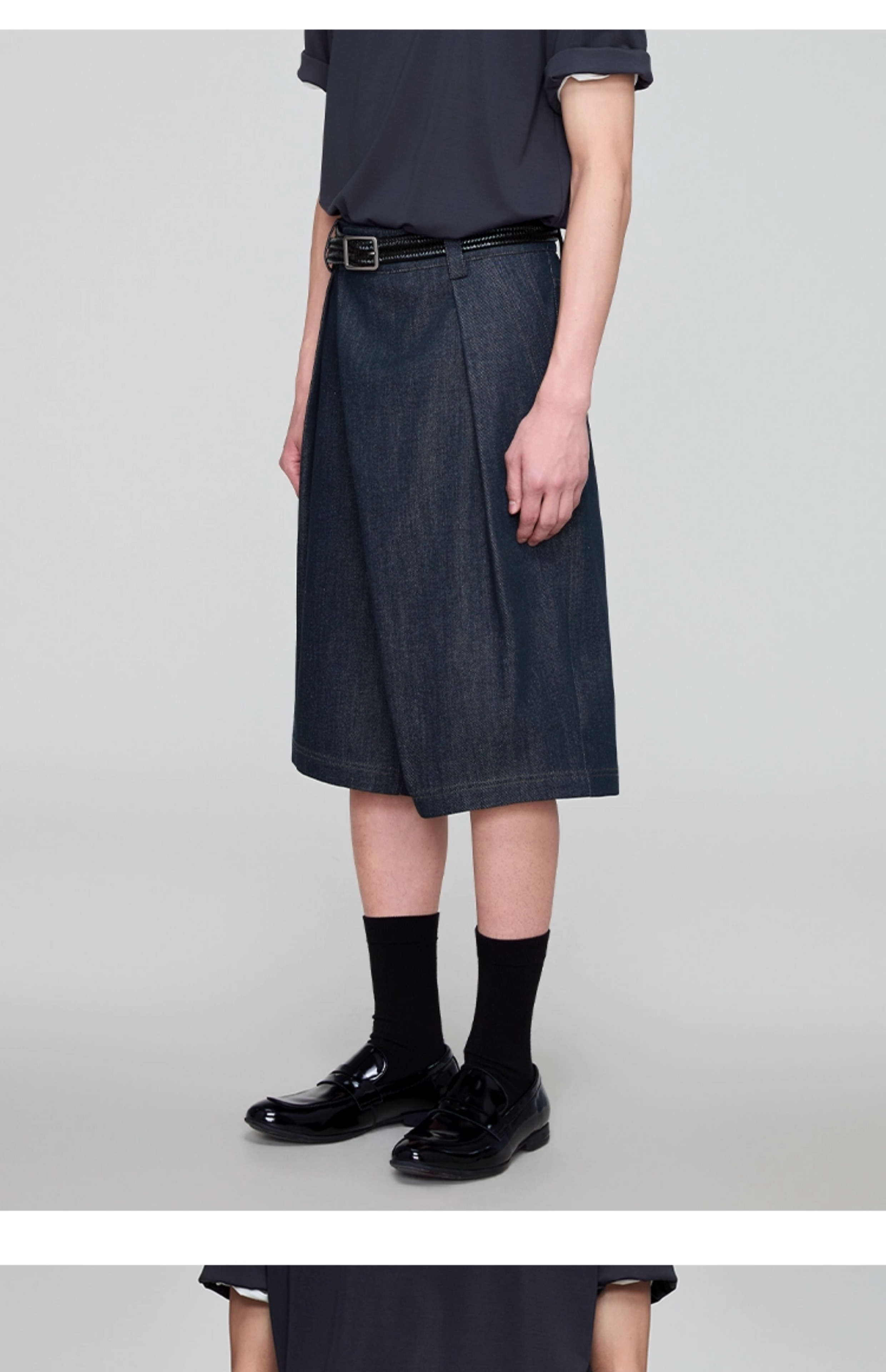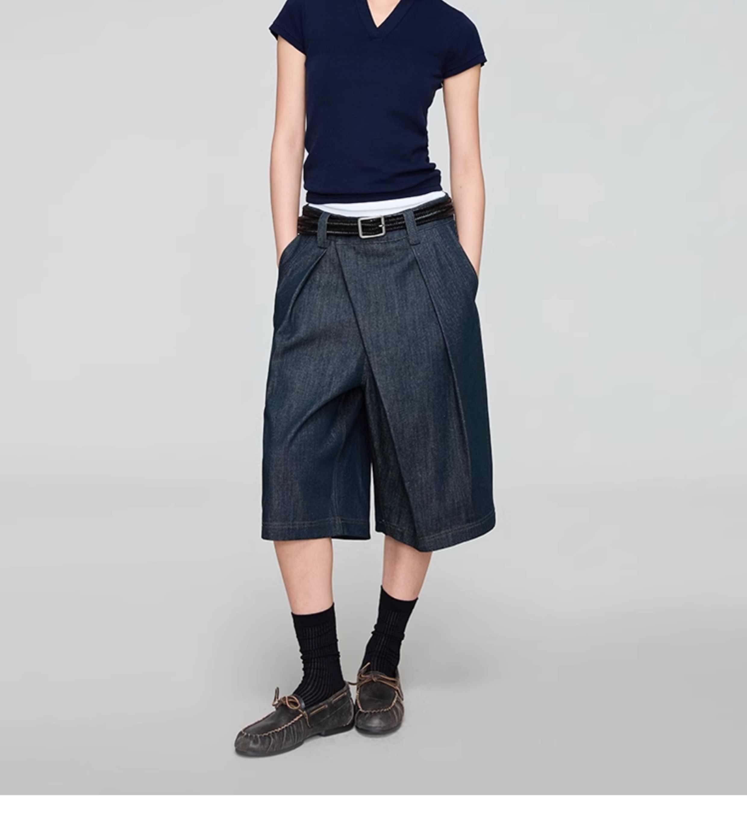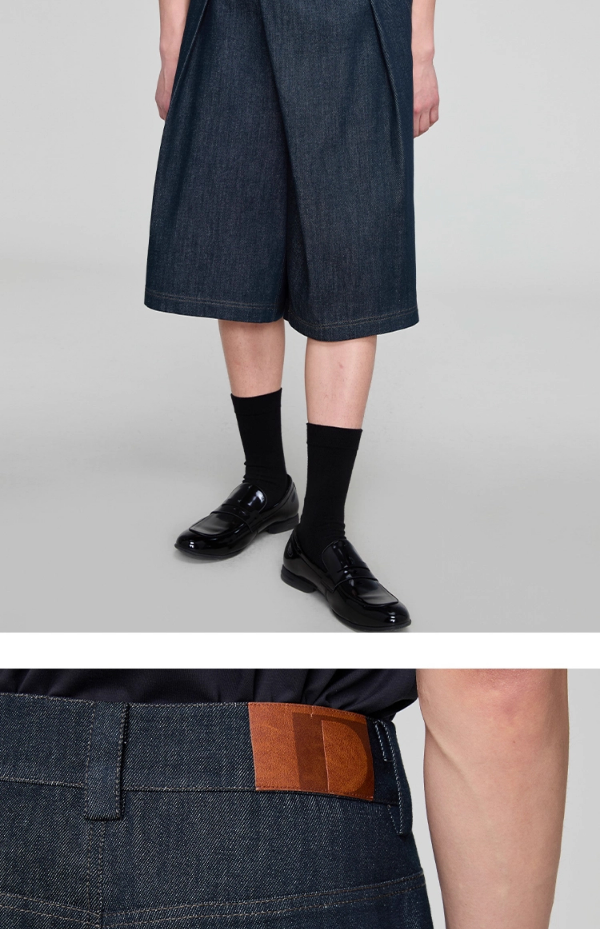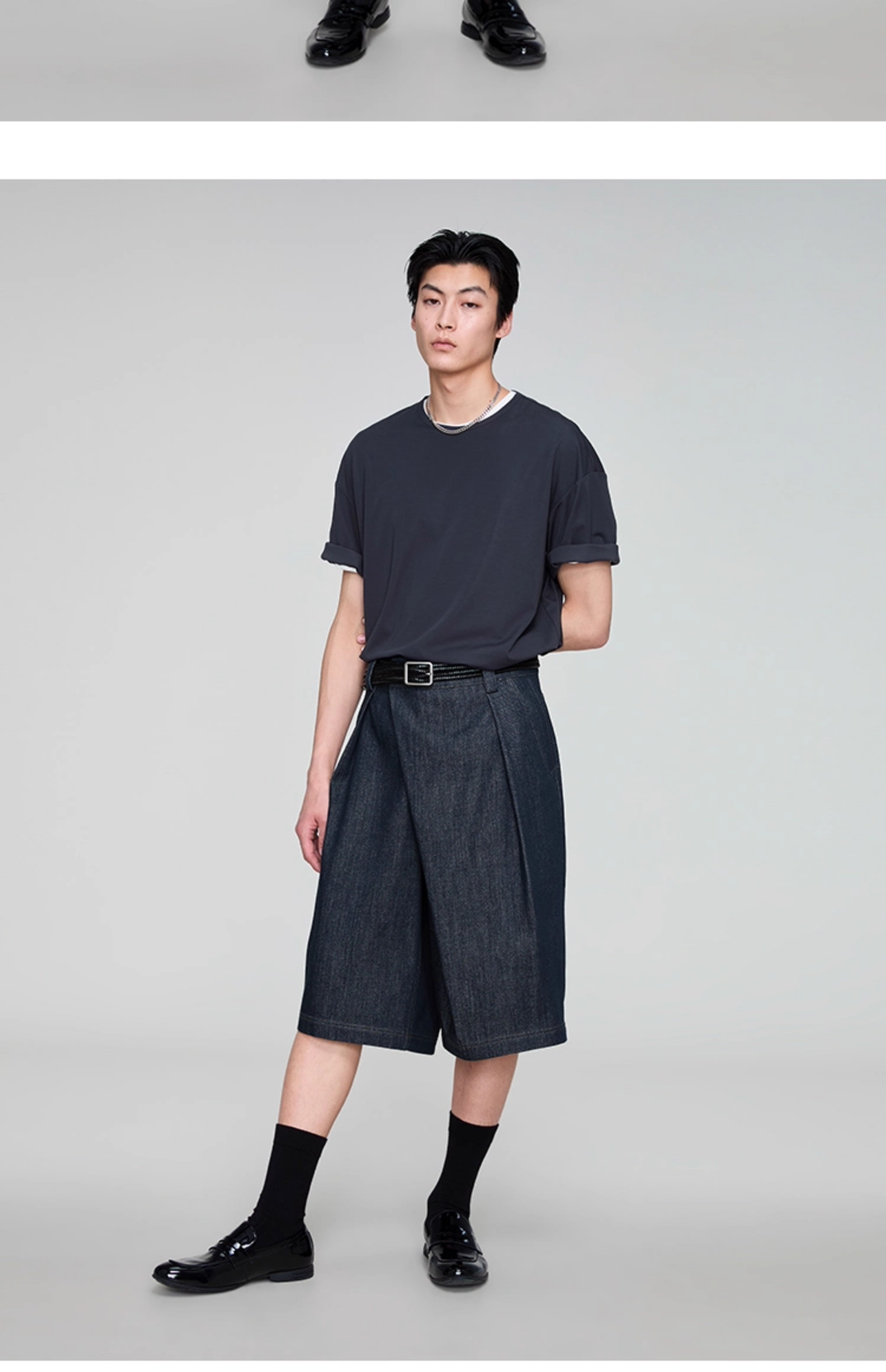 Opicloth/Opic 10.4oz Vintage Washed Diagonal Placket A-Line Loose Wide-Leg Denim Casual Six-Point Pants