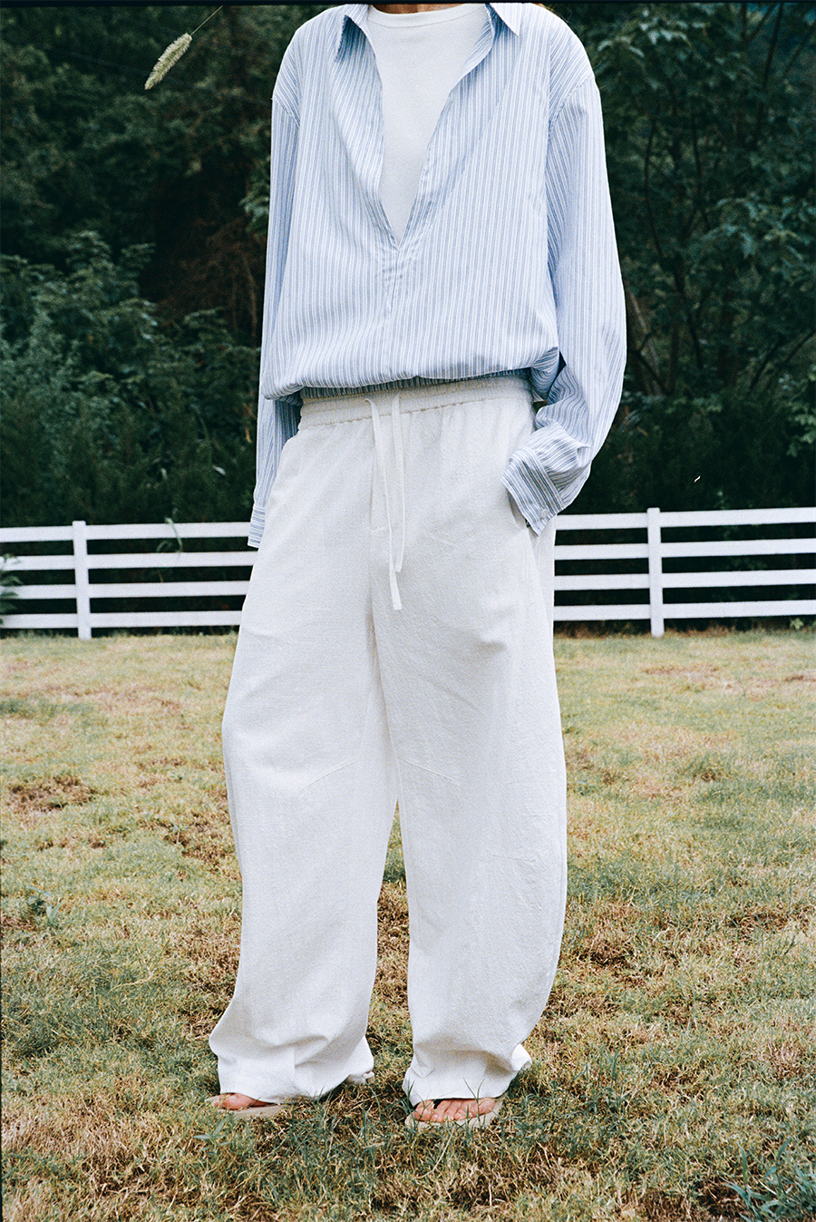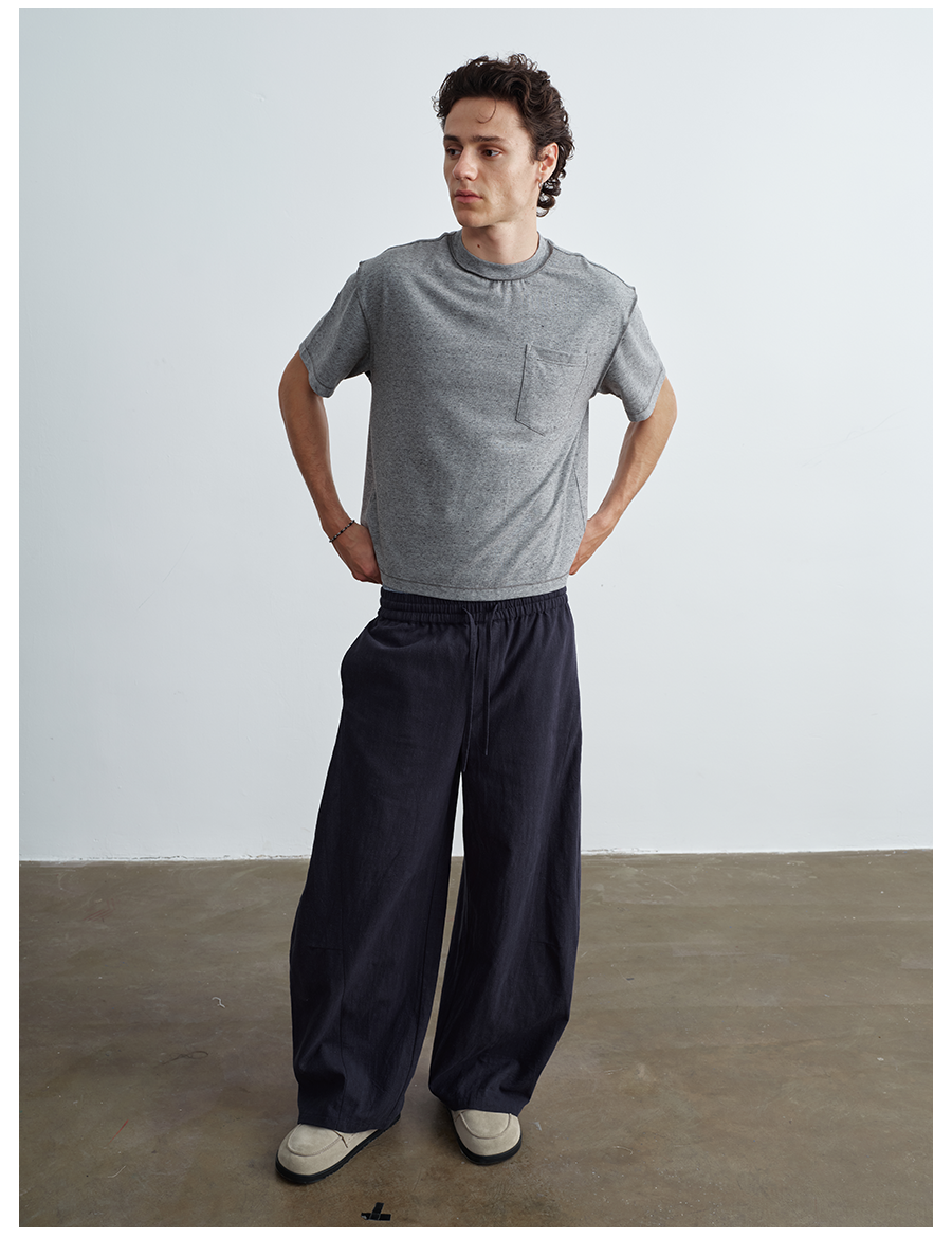 Vlabmade Relaxed Holiday Drapey Linen Blend Pants with Curved Cut, Loose, Comfortable, and Lazy Wide-Leg Pants