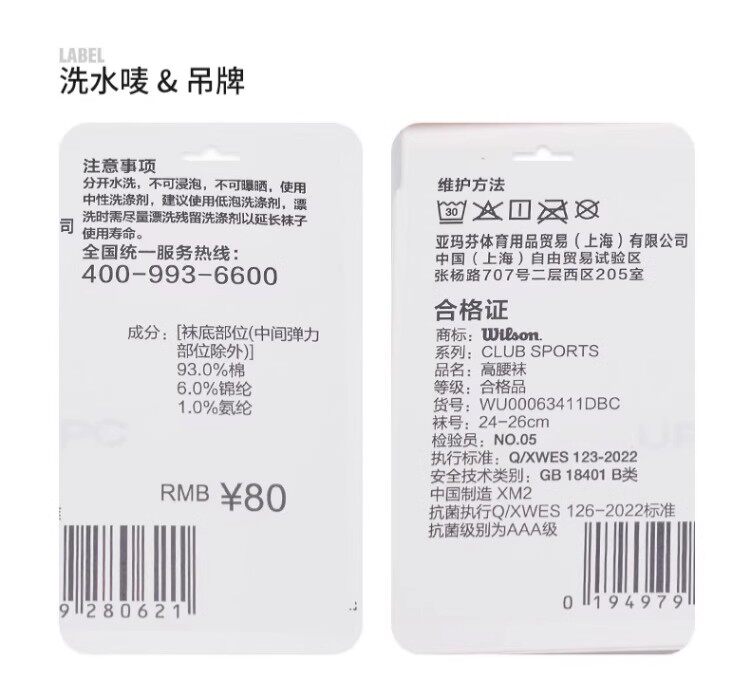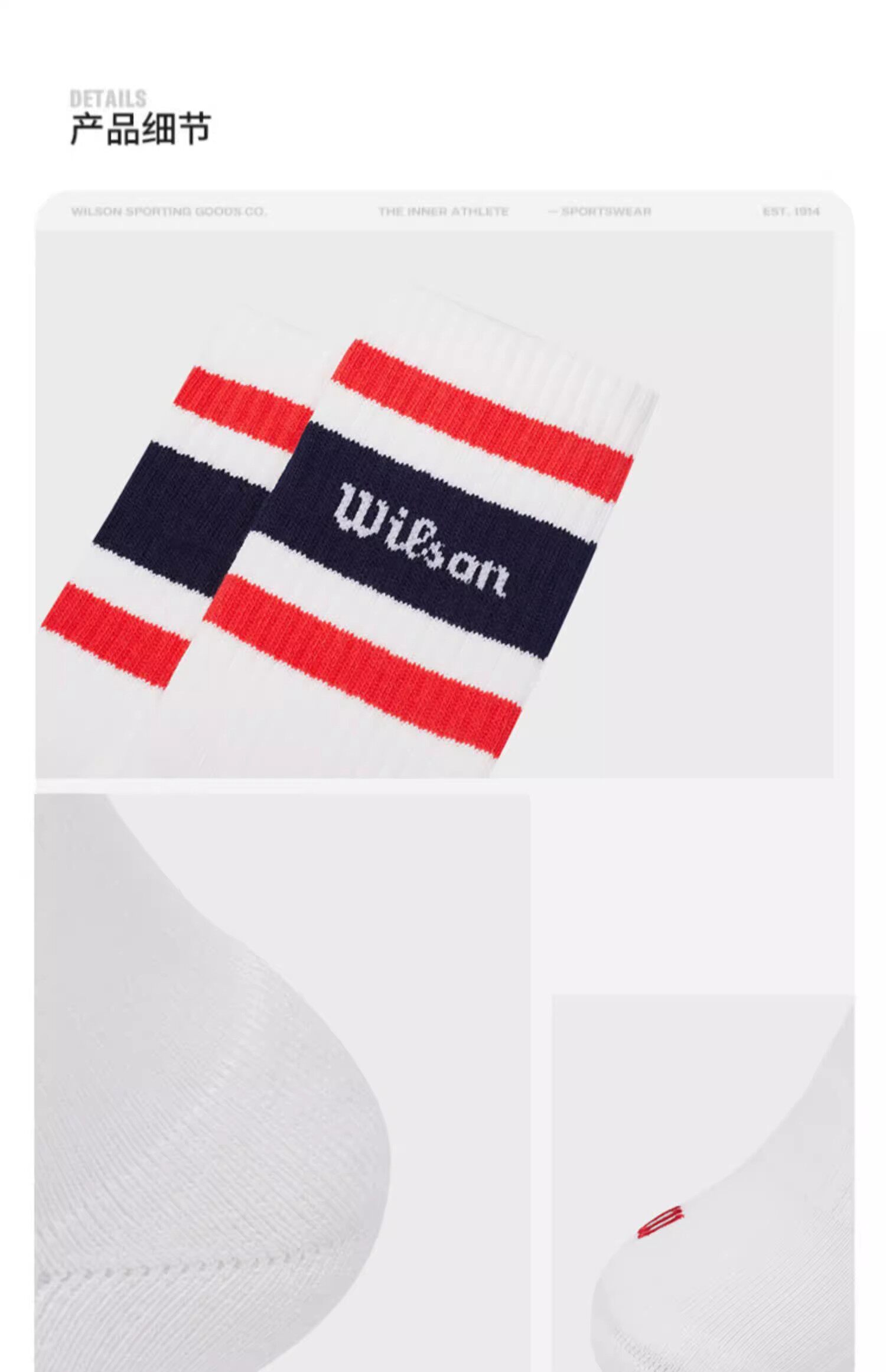 Wilson Tennis Socks for Men and Women, Sports Socks, Cotton, Comfortable, Breathable, Fashionable, Sweat-Wicking Badminton Socks