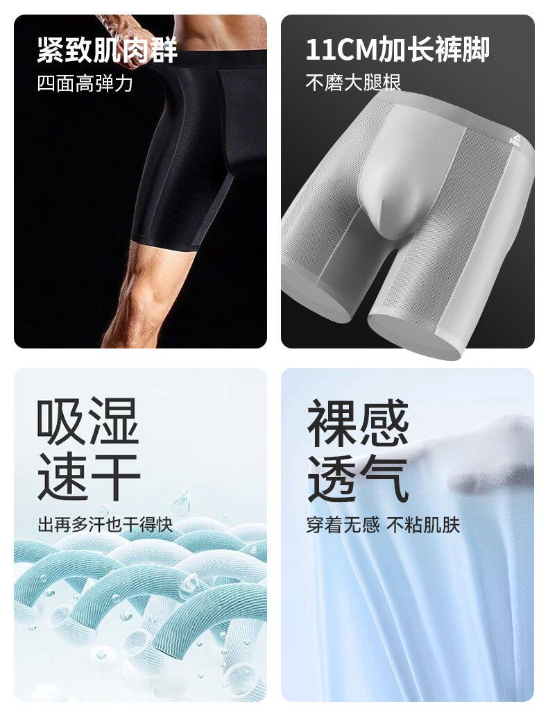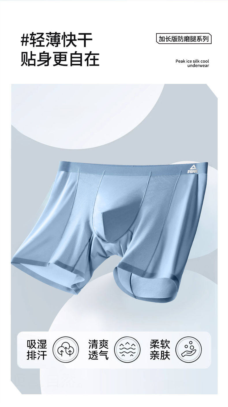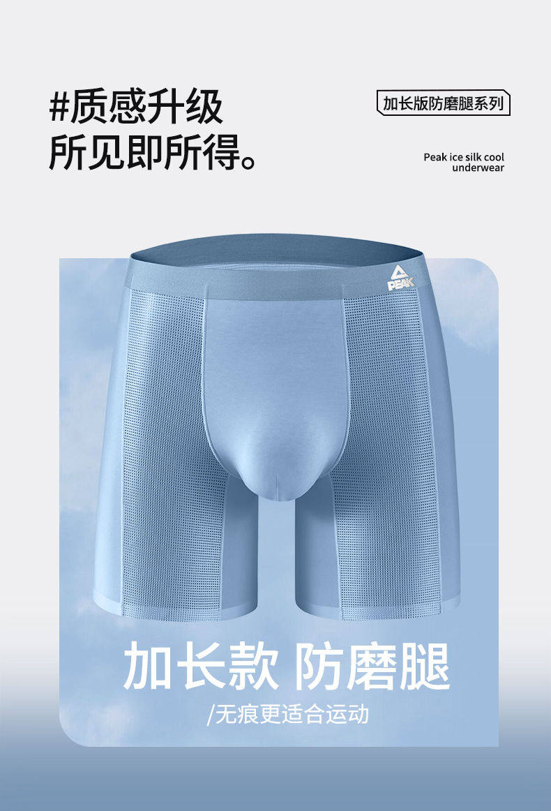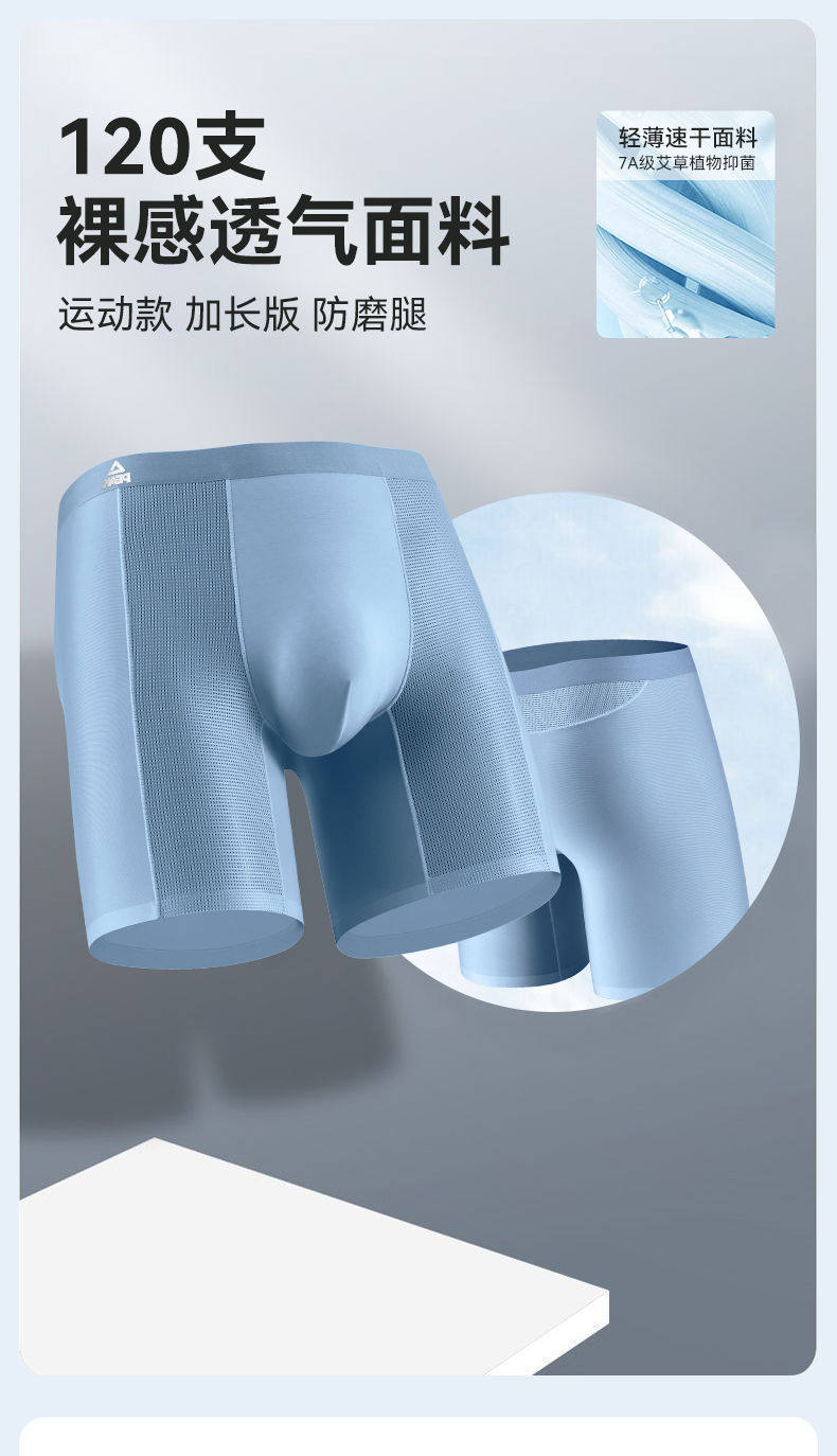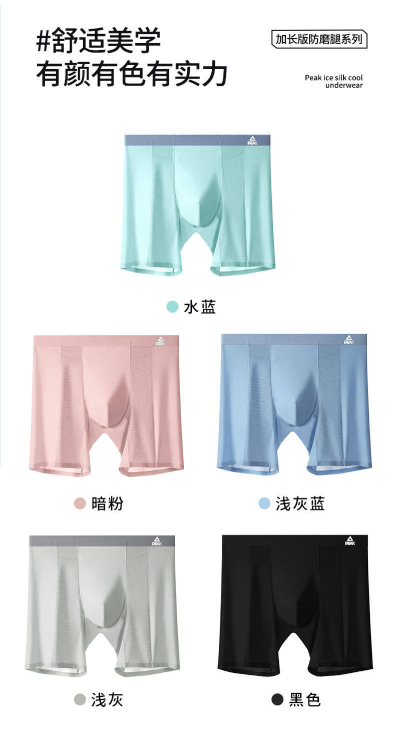 Peak Men's Sports Underwear, Extended Anti-Chafing Leg, Quick-Drying, Breathable, Ice-Skin Running, Fitness Training, Tight-Fitting Boxer Briefs