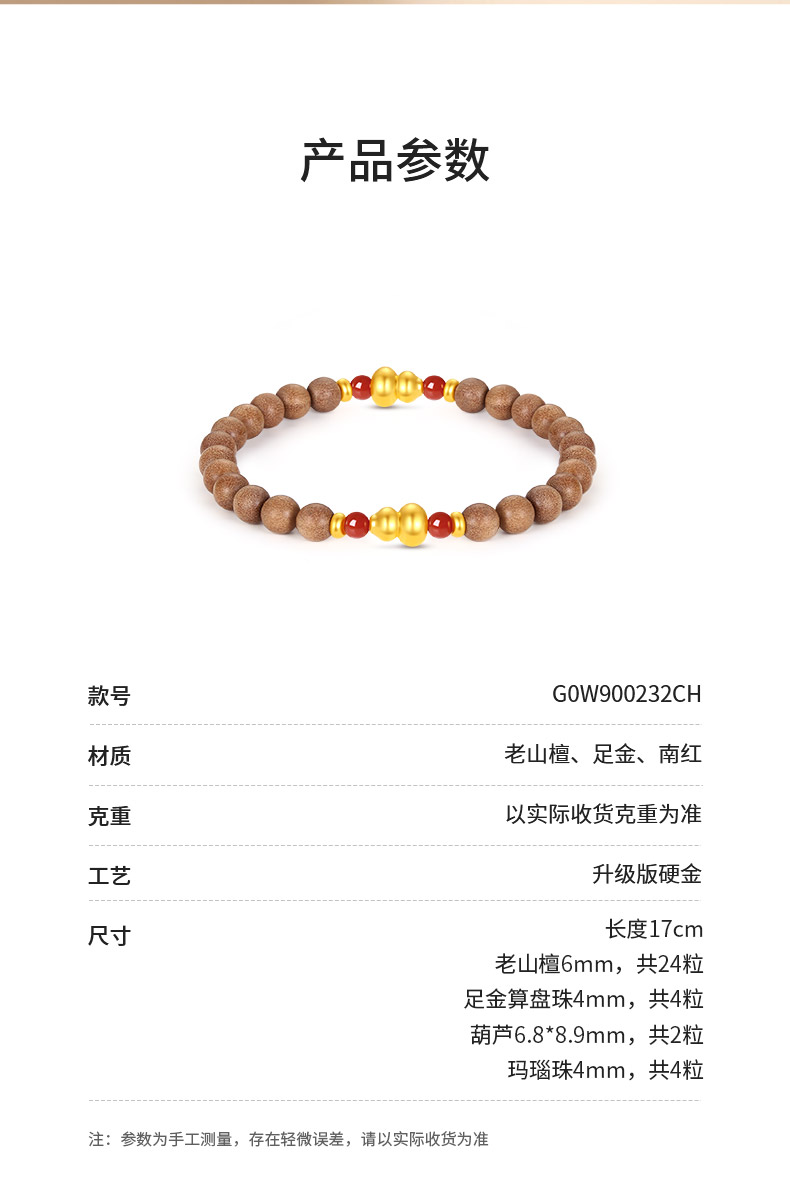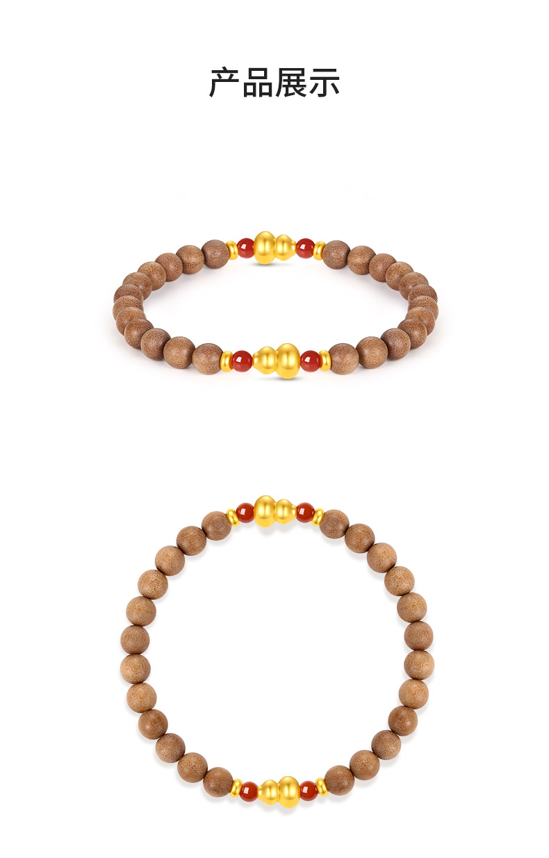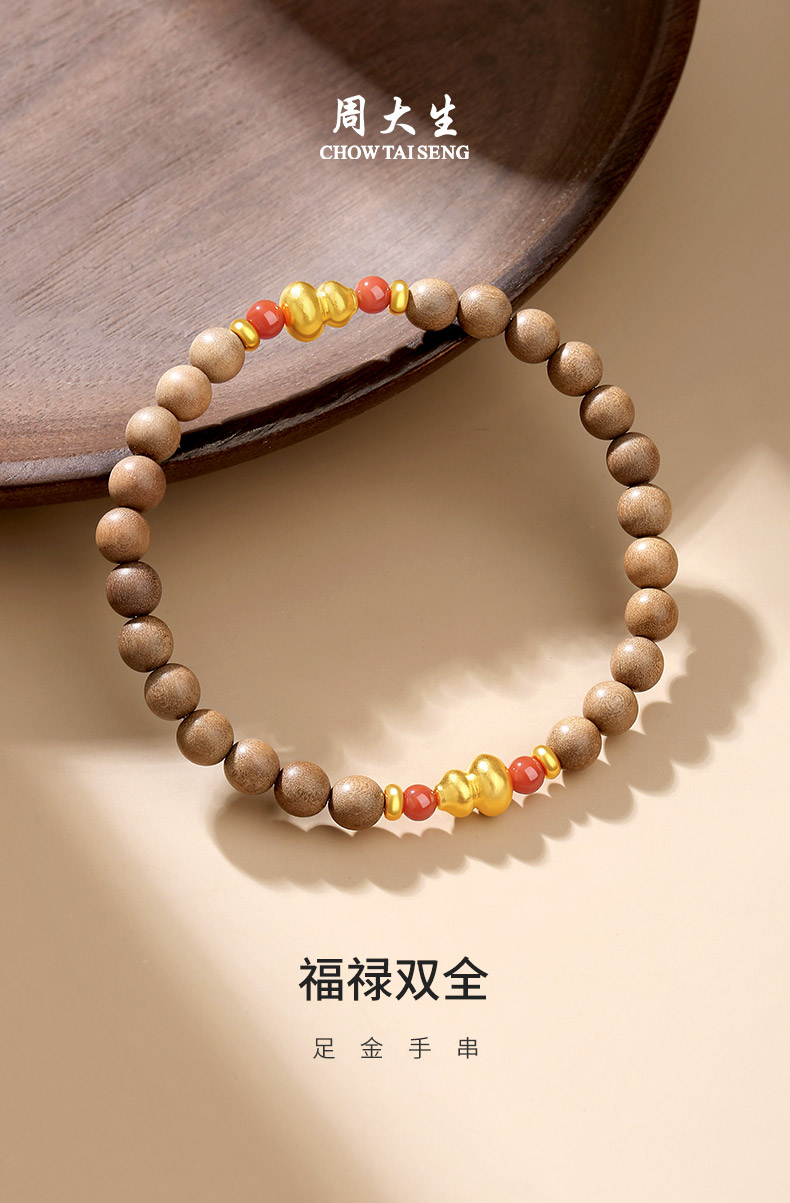 Zhou Dasheng Gourd Bracelet Women's Gold Hard Gold Laoshan Sandalwood Fulu Double Full Bracelet for Girlfriend's Birthday Gift