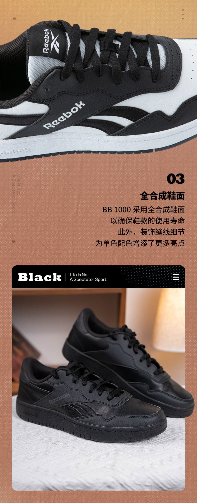 Reebok Official 26Th Anniversary New Men's and Women's Shoes Bb 1000 Retro Panda Black and White Low-Top Basketball Shoes