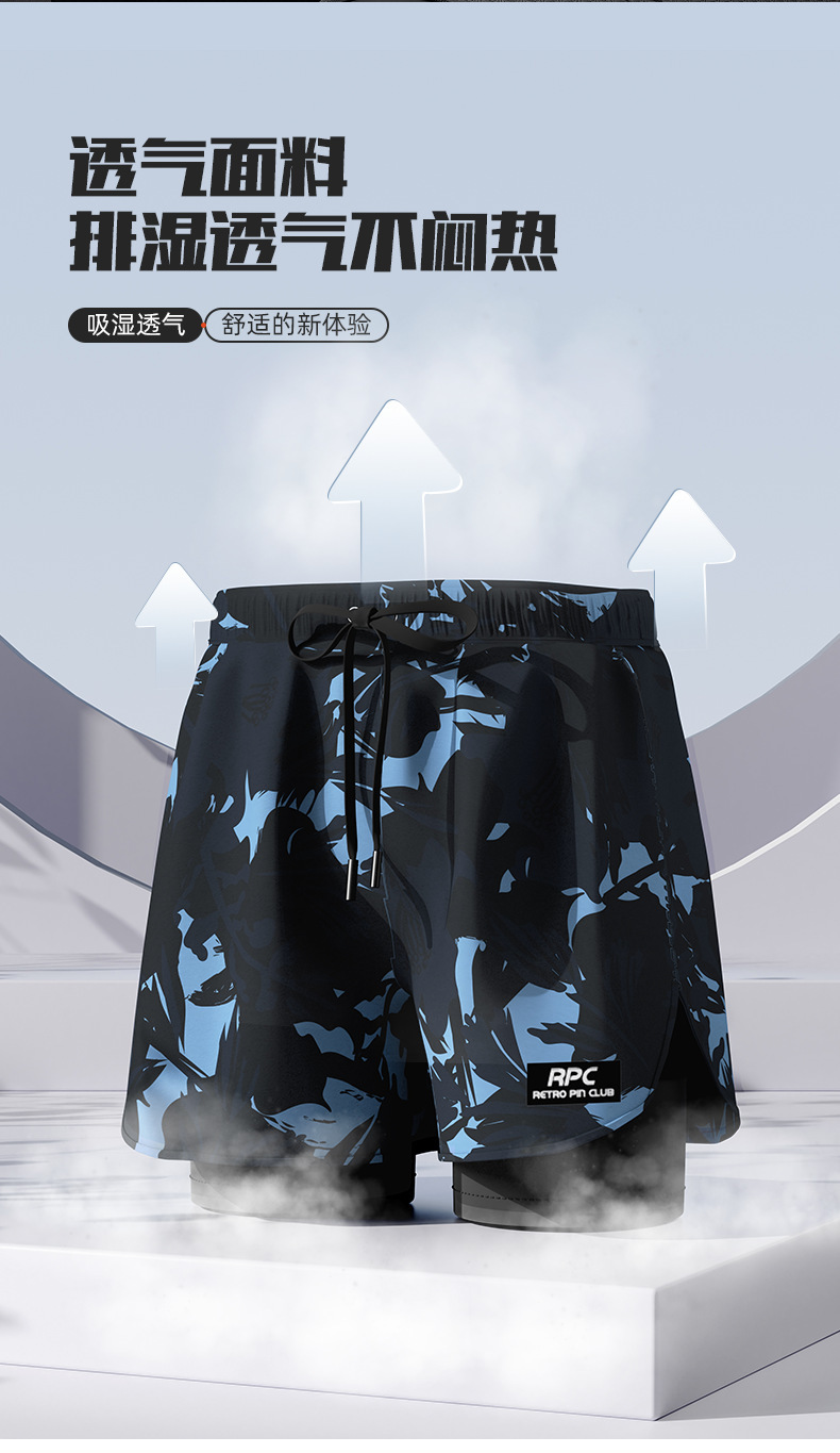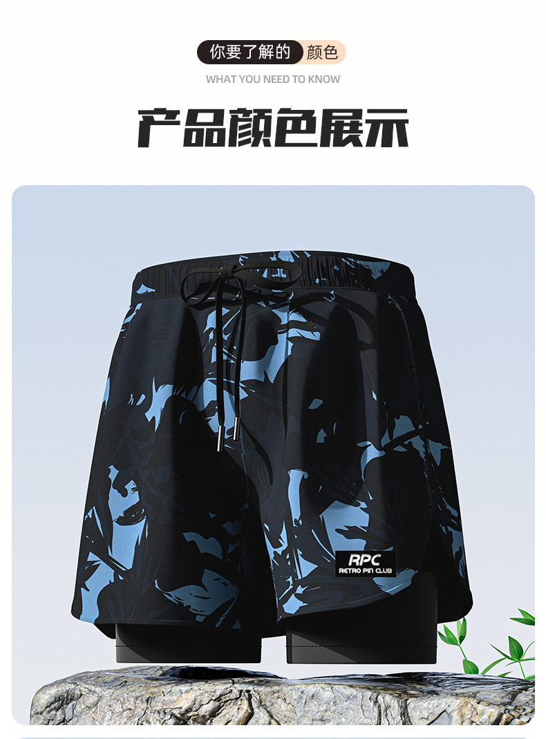Men's Swimming Trunks Boxer Loose Quick-Drying Men's Professional Aerobic Sports Anti-Embarrassment Widened Belt Drawstring Design