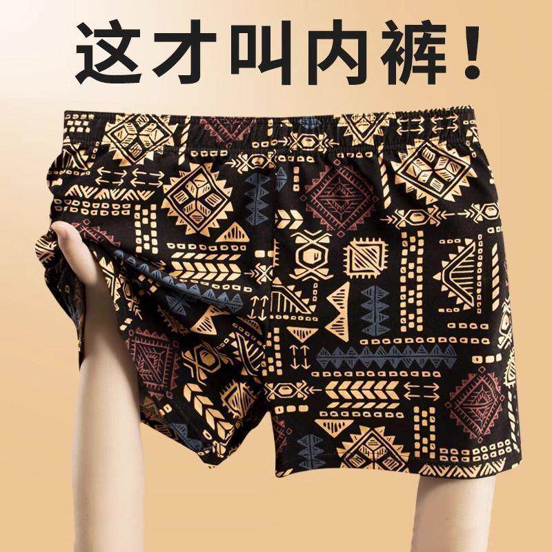 Men's American Retro Aro Boxer Briefs, Pure Cotton, Summer Comfortable and Breathable, Ethnic Trendy Style, Four-Corner Shorts