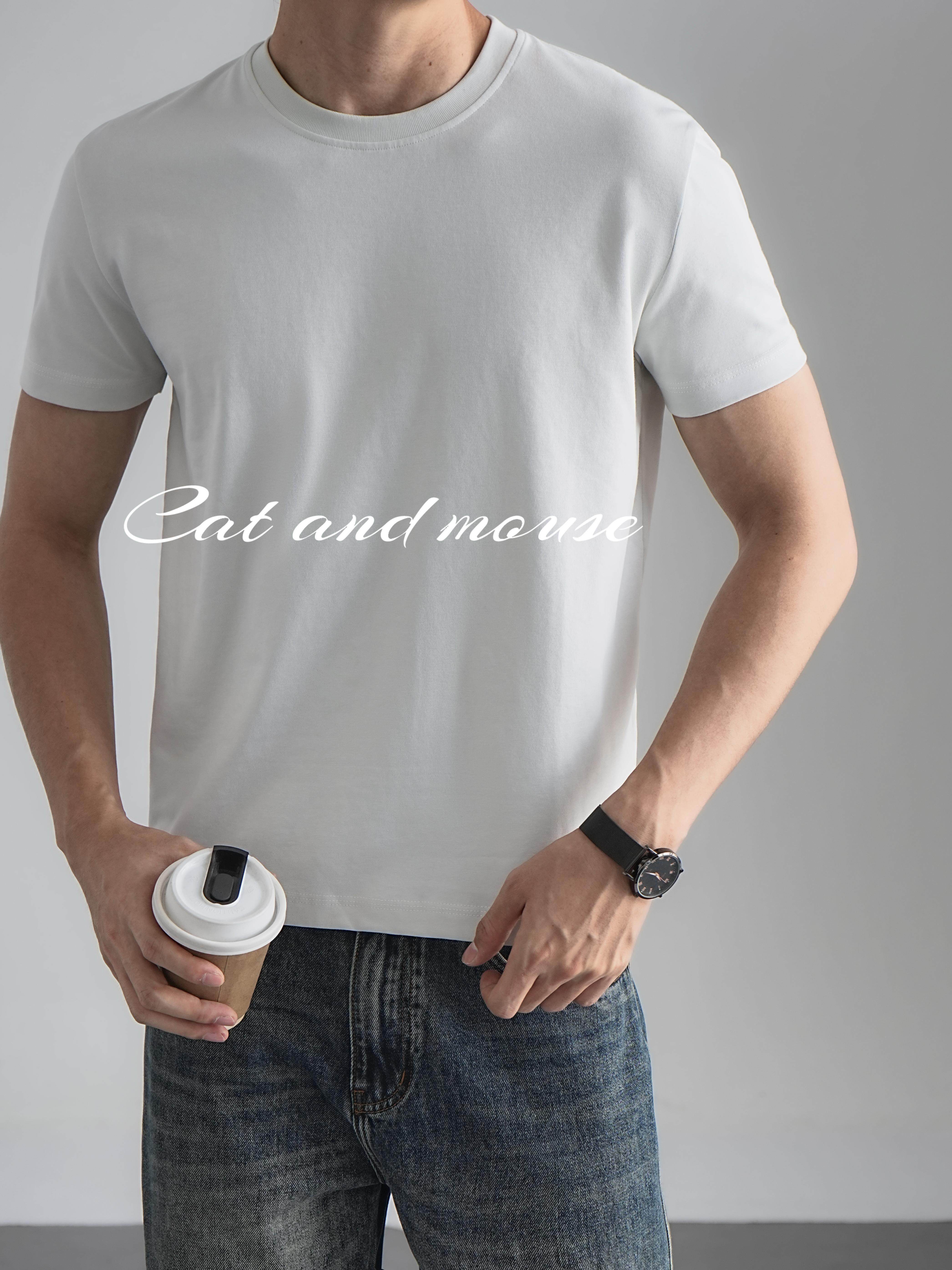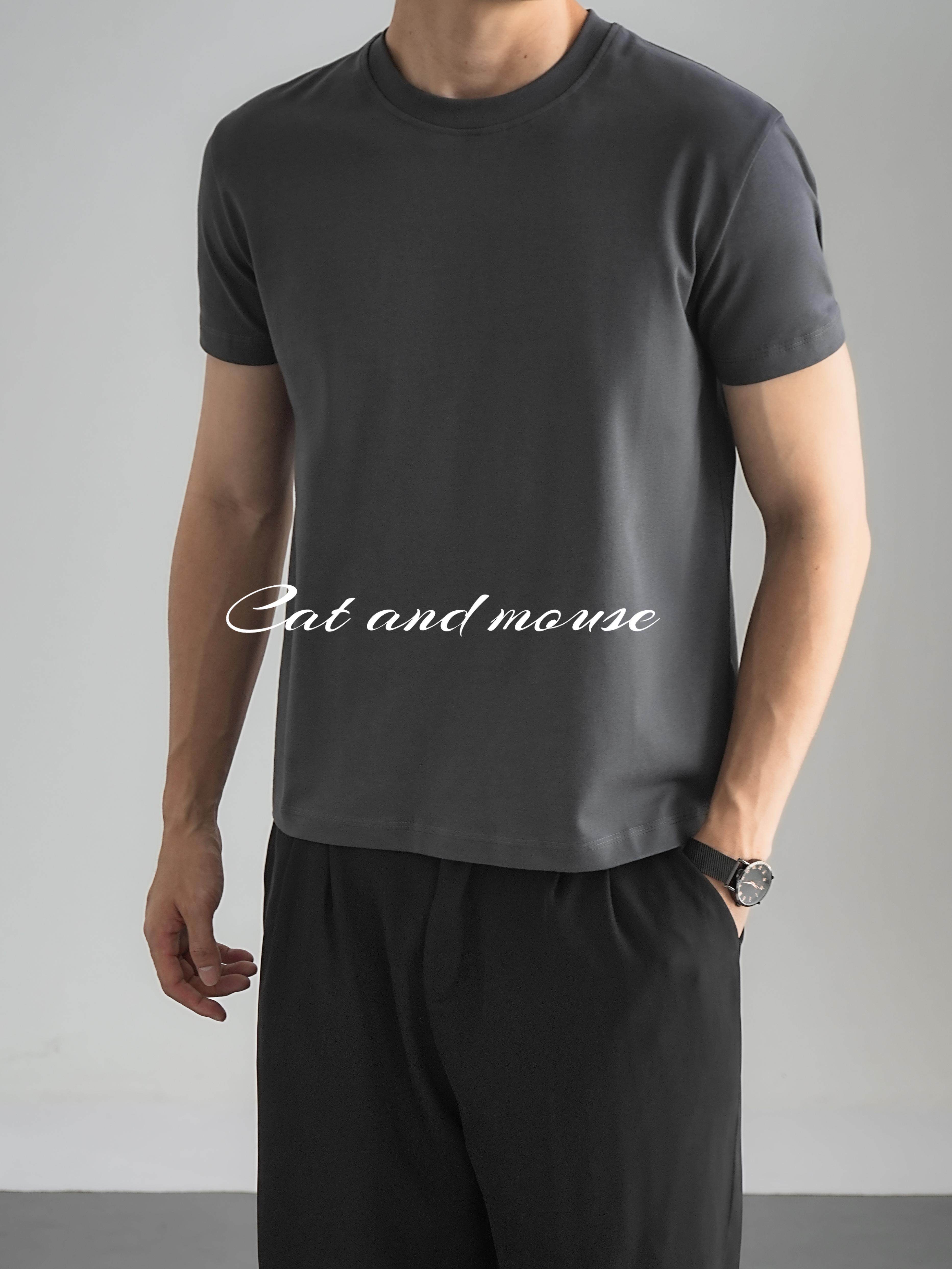 Cat and Mouse 25Ss Sorona Shoulder-Fit Fitness T-Shirt Breathable and Cool Short-Sleeved T-Shirt for Men and Women in Summer