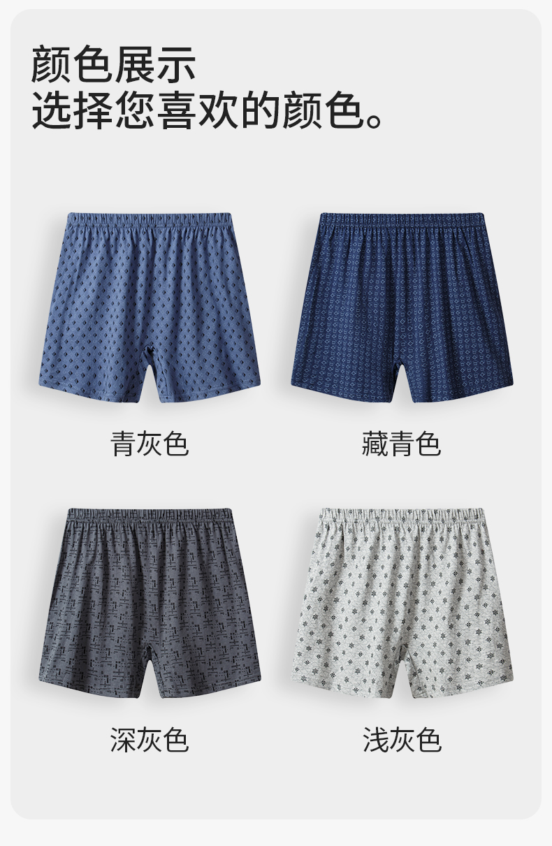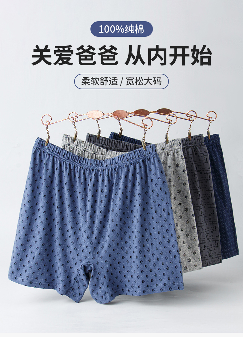Middle-Aged and Elderly Men's Underwear, Men's Pure Cotton Boxer Briefs, Dad's Loose Breathable Shorts, Plus Size Boxer Briefs